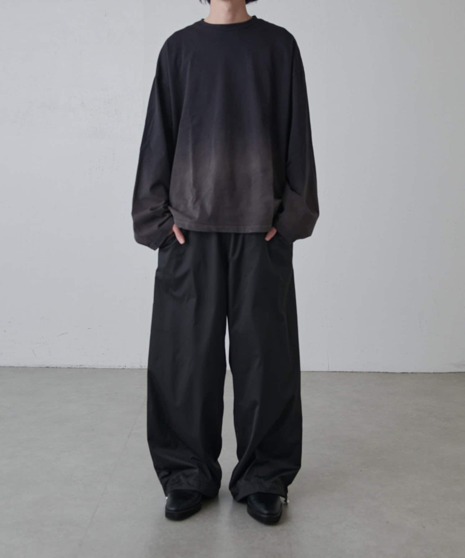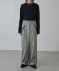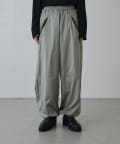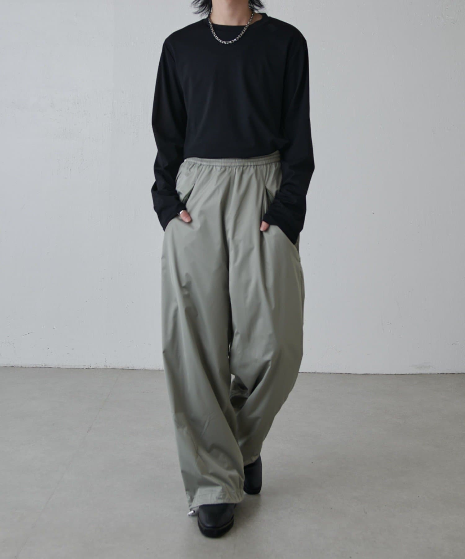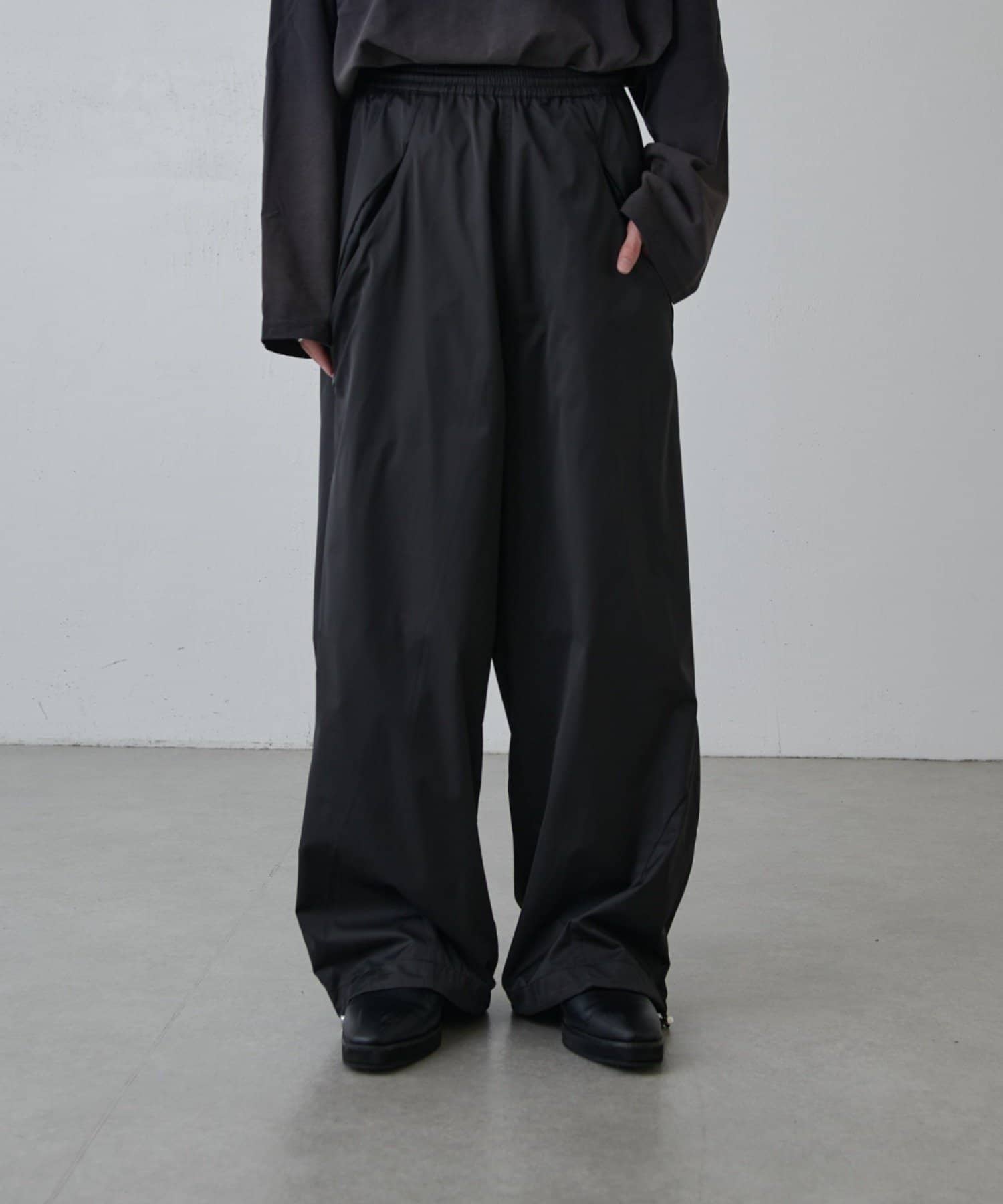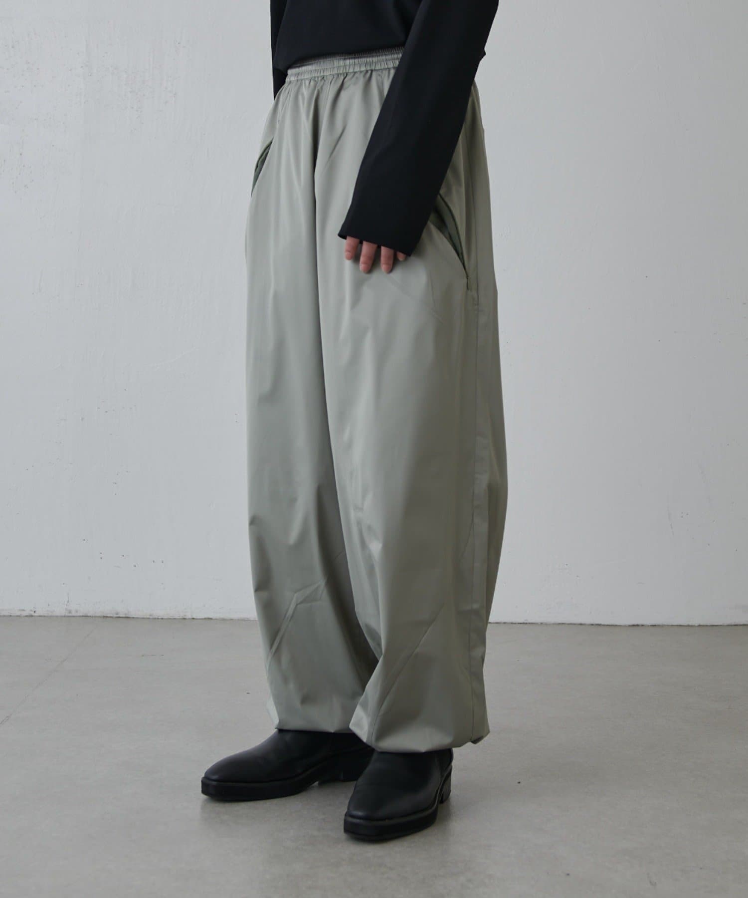 ルーズフィットなイージーパンツ。ポケットのデザインが特徴的で、ZIPポケットを開けると微配色の裏地が現れ、さりげないアクセントとなります。
