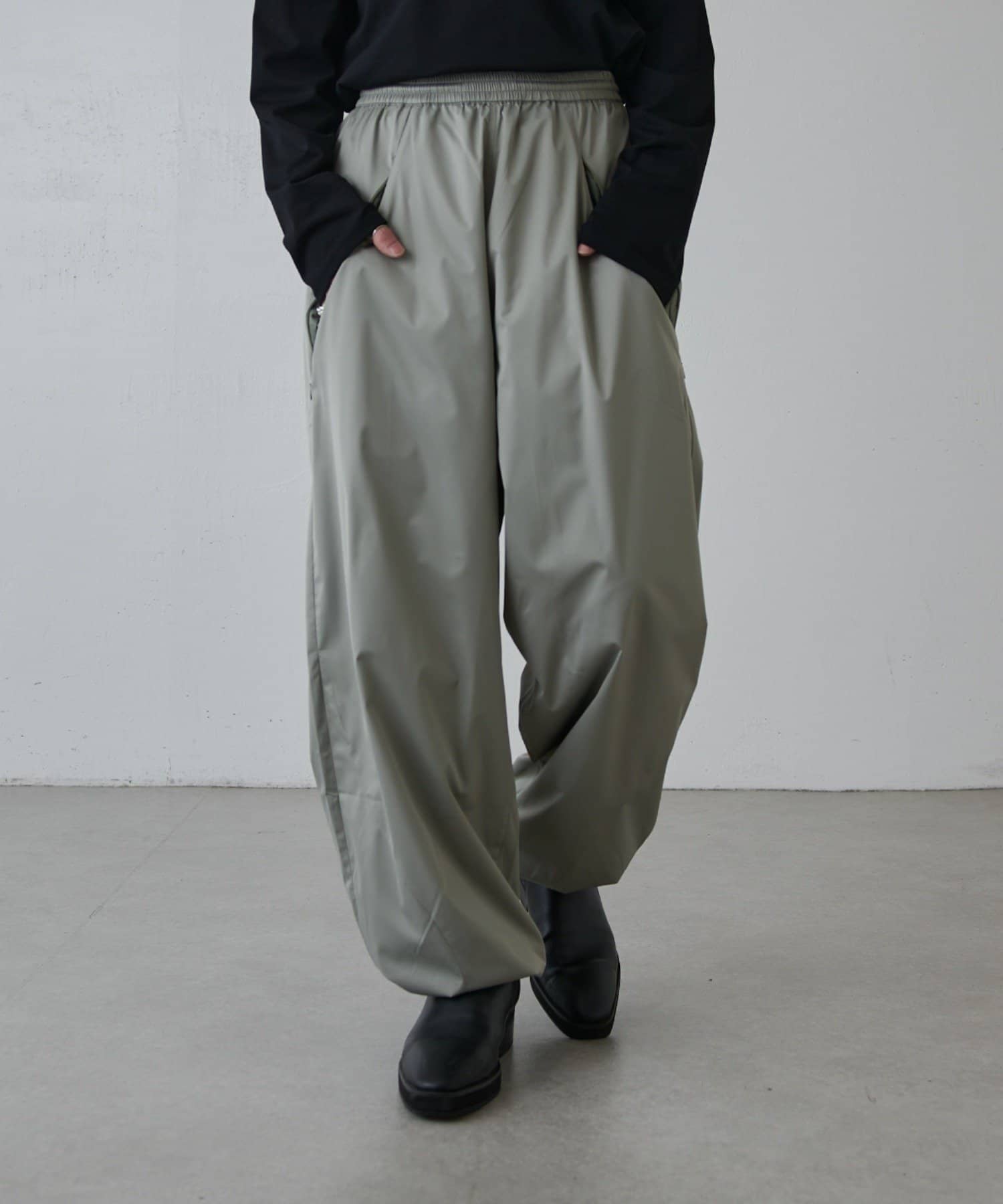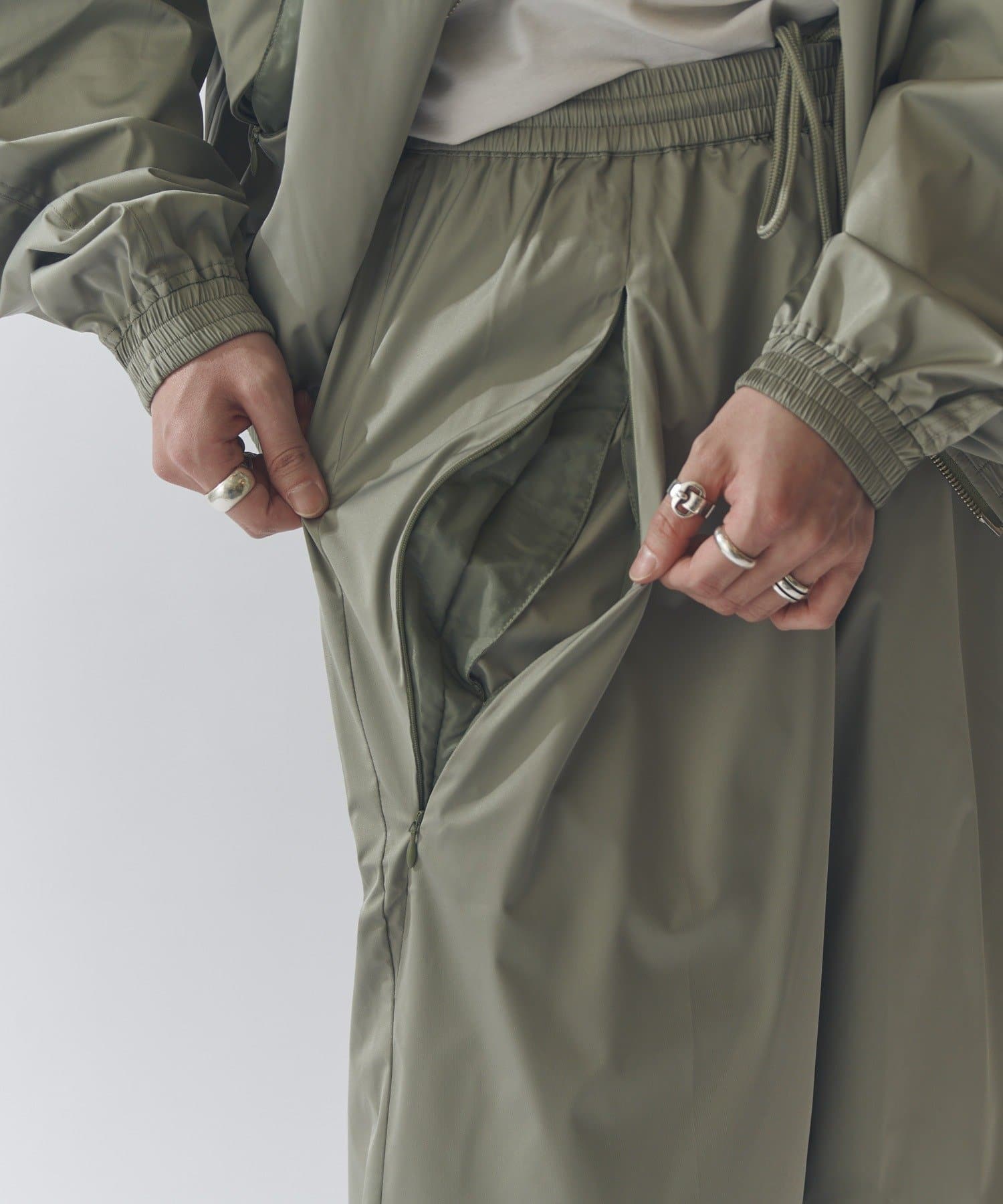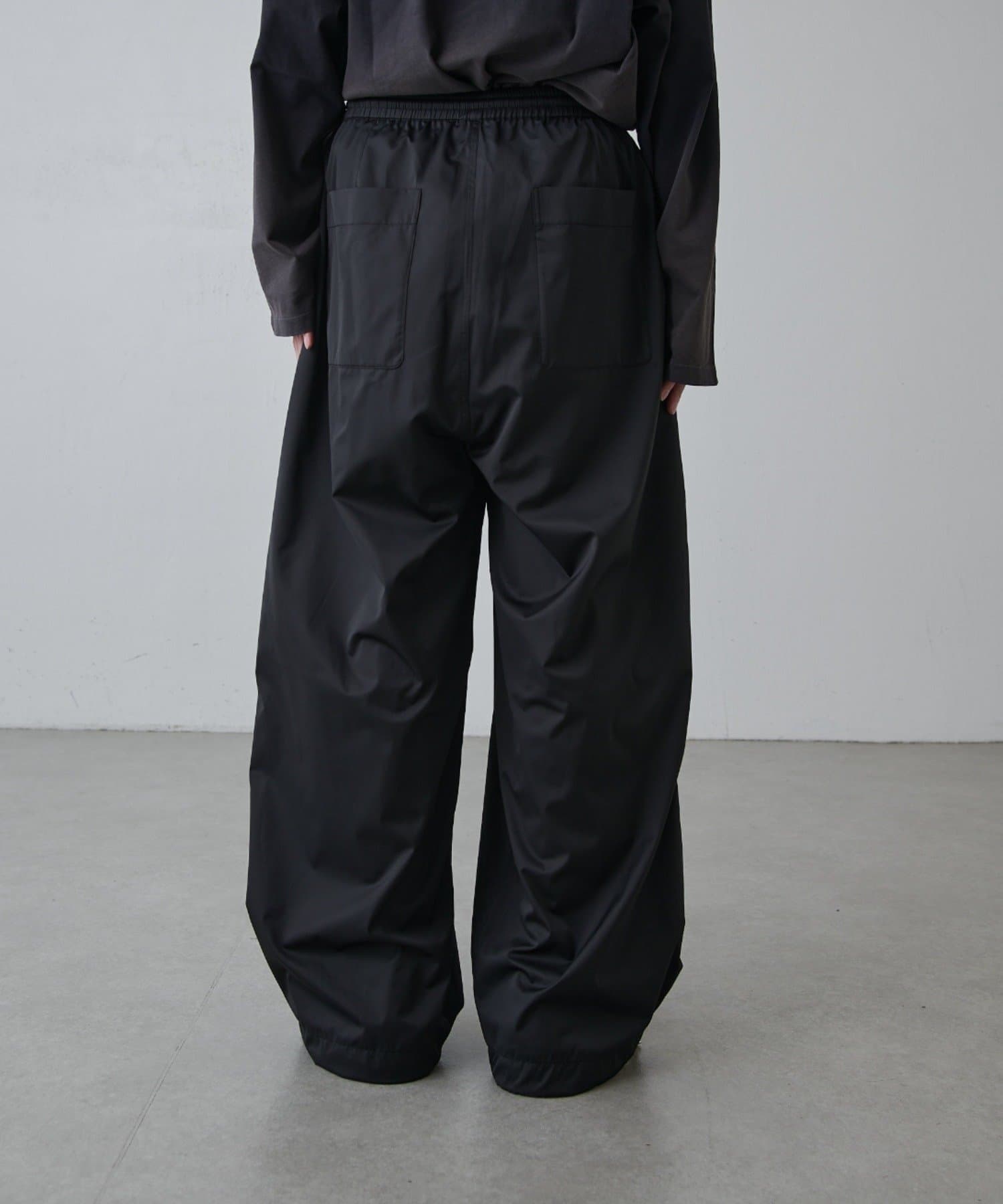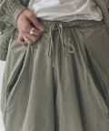 ウエストは紐で調節可能。裾にはドローコードがついており、好みで絞ってシルエット調節可能です。