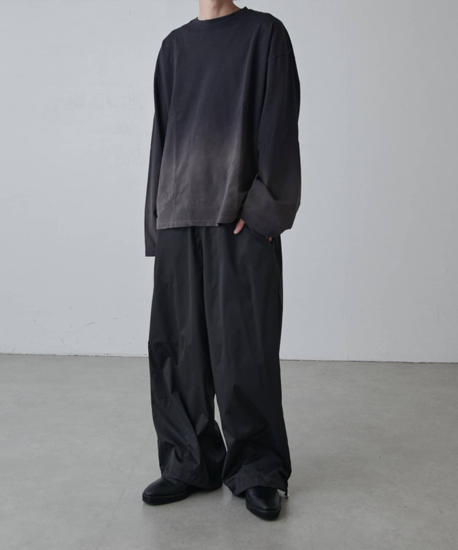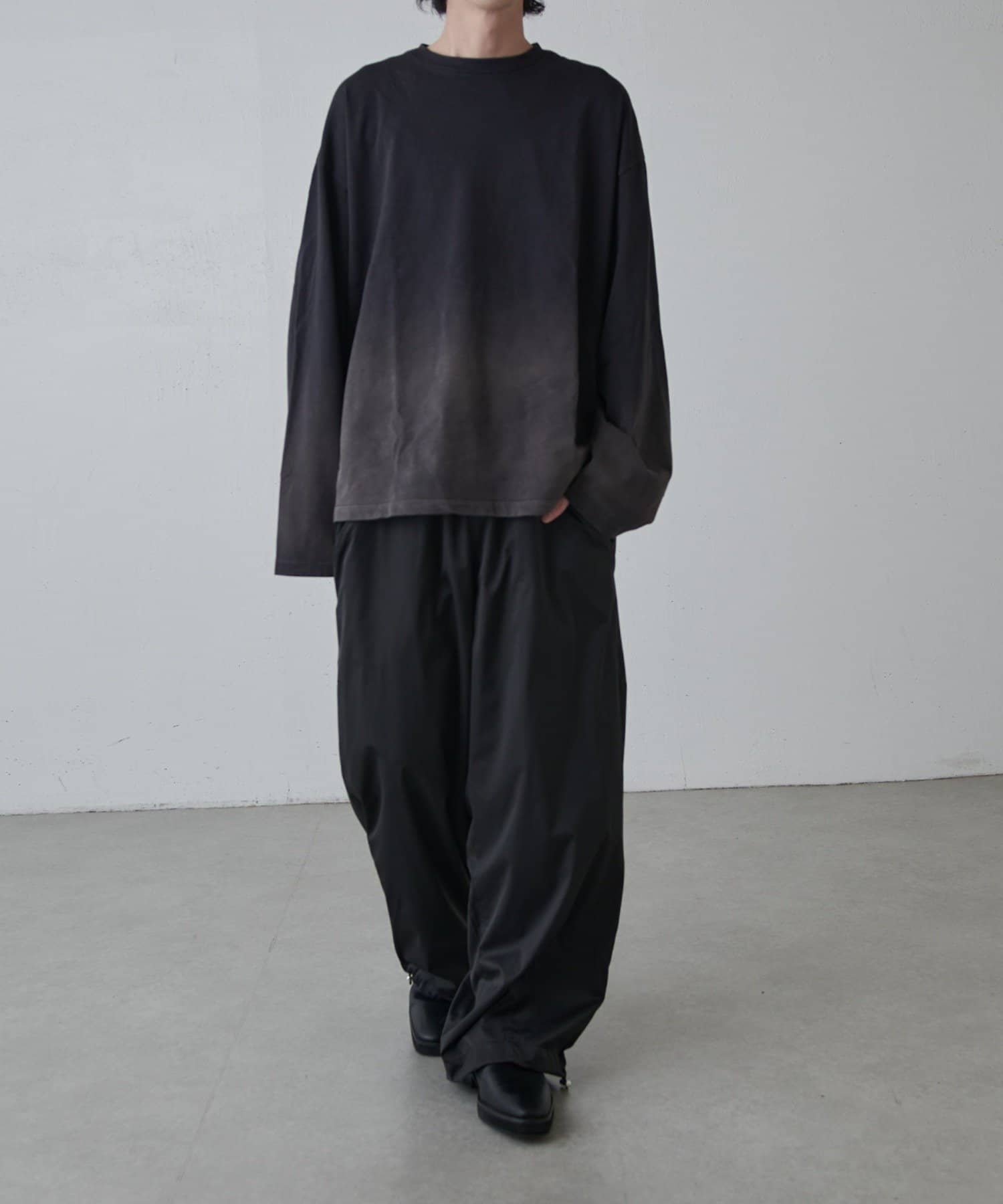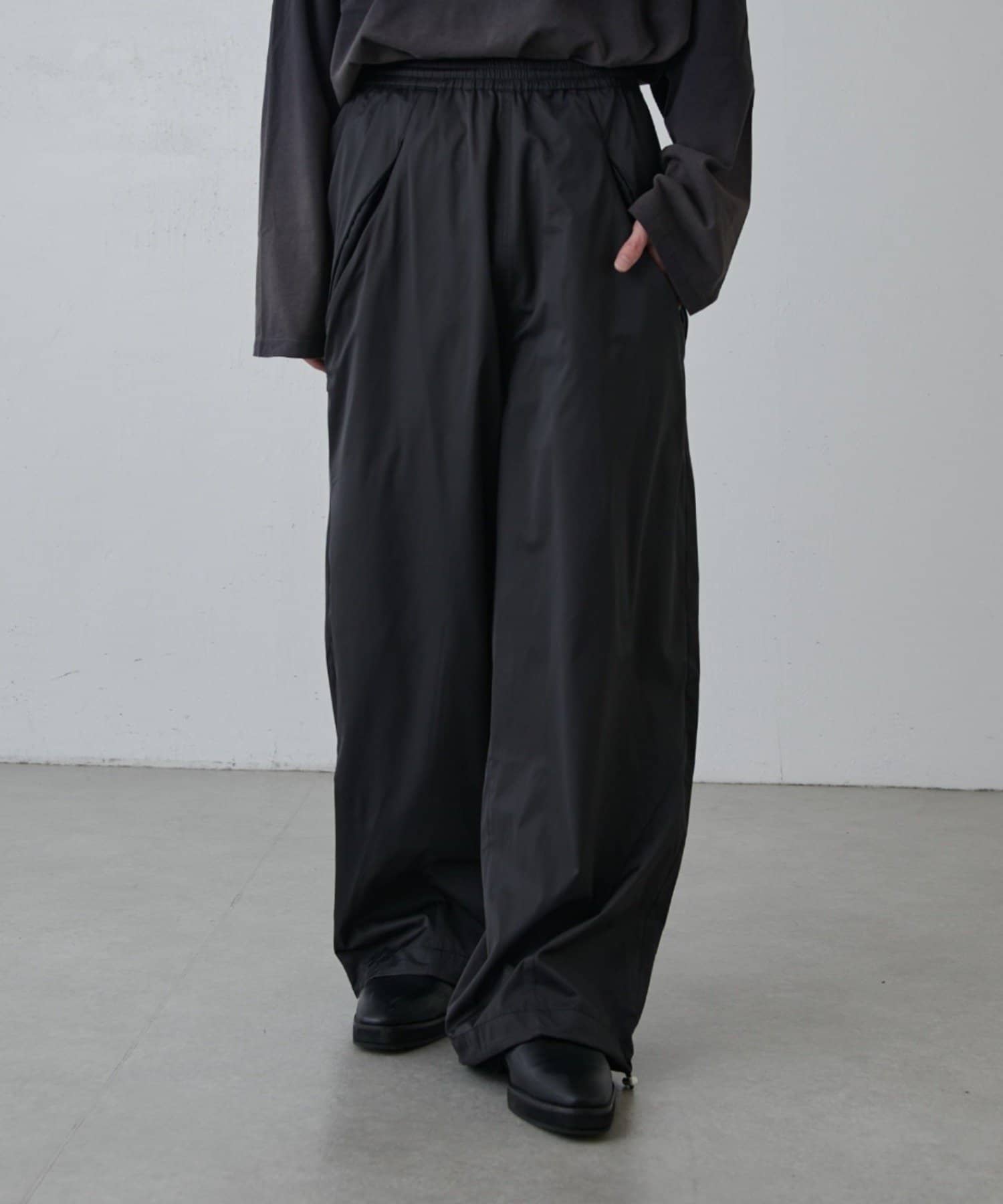 ウエストは紐で調節可能。裾にはドローコードがついており、好みで絞ってシルエット調節可能です。