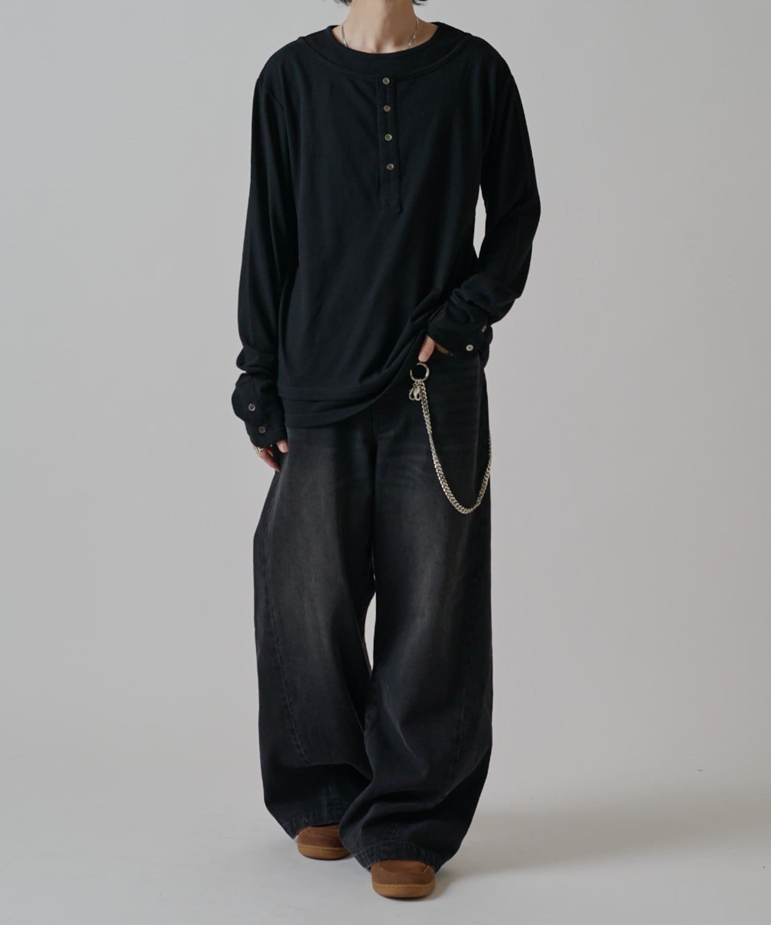 「 レイヤードヘンリーネックロングスリーブTシャツ 」
