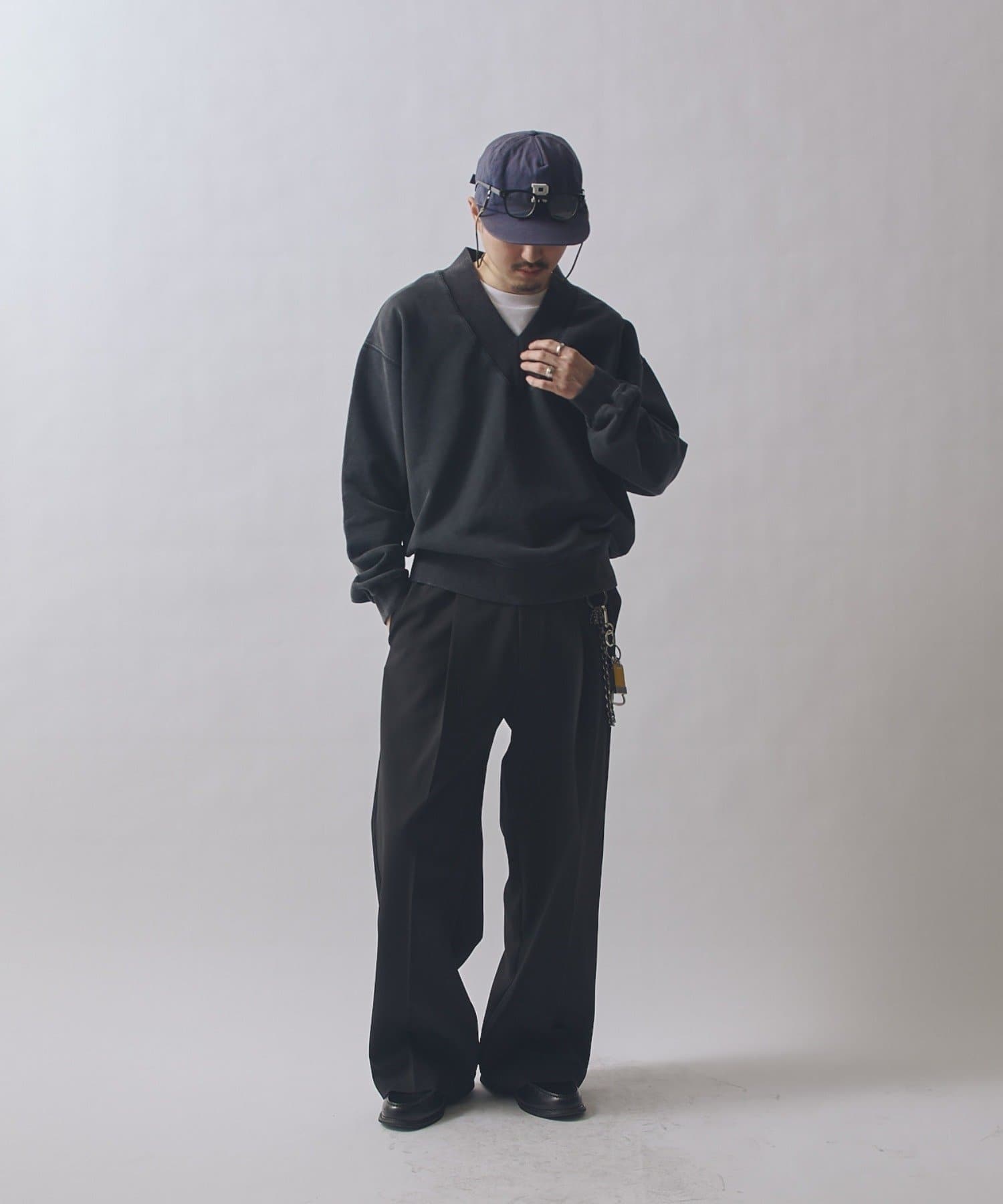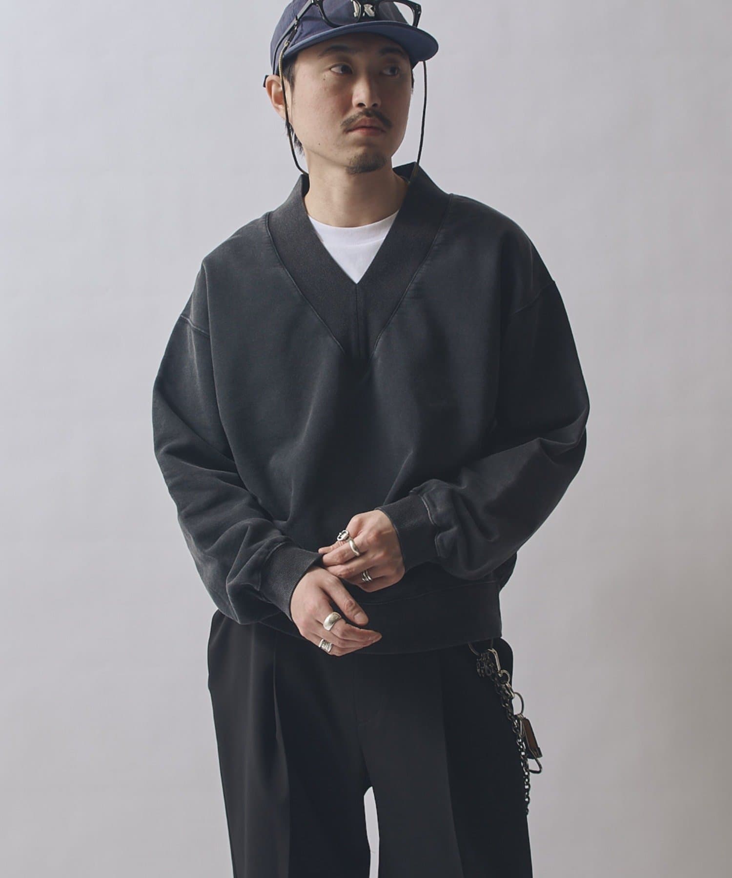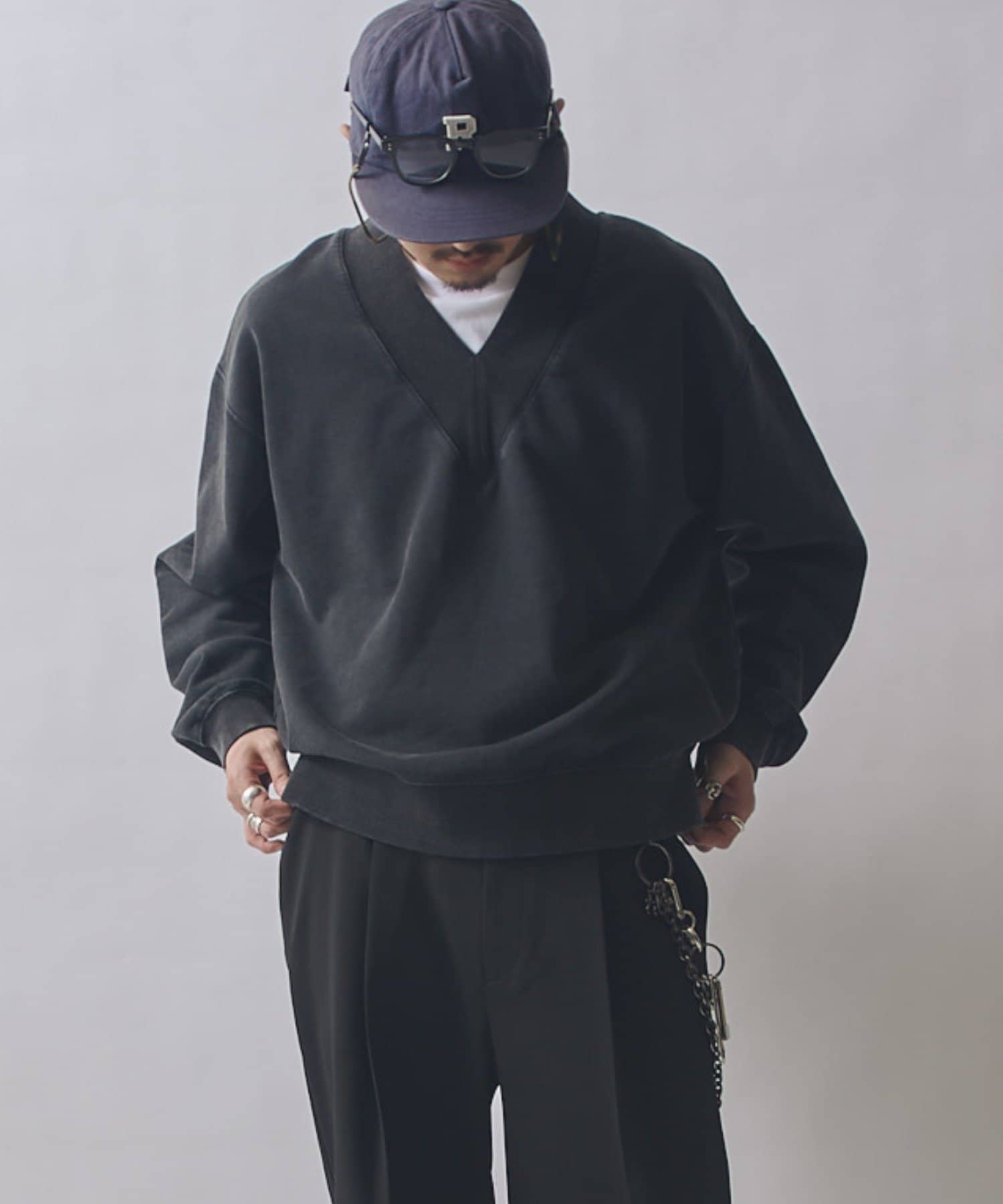 奥行きのある表情が特徴的なこちらのV/Nスウェット。着丈に対して身幅をやや広く取ったBOXシルエット。