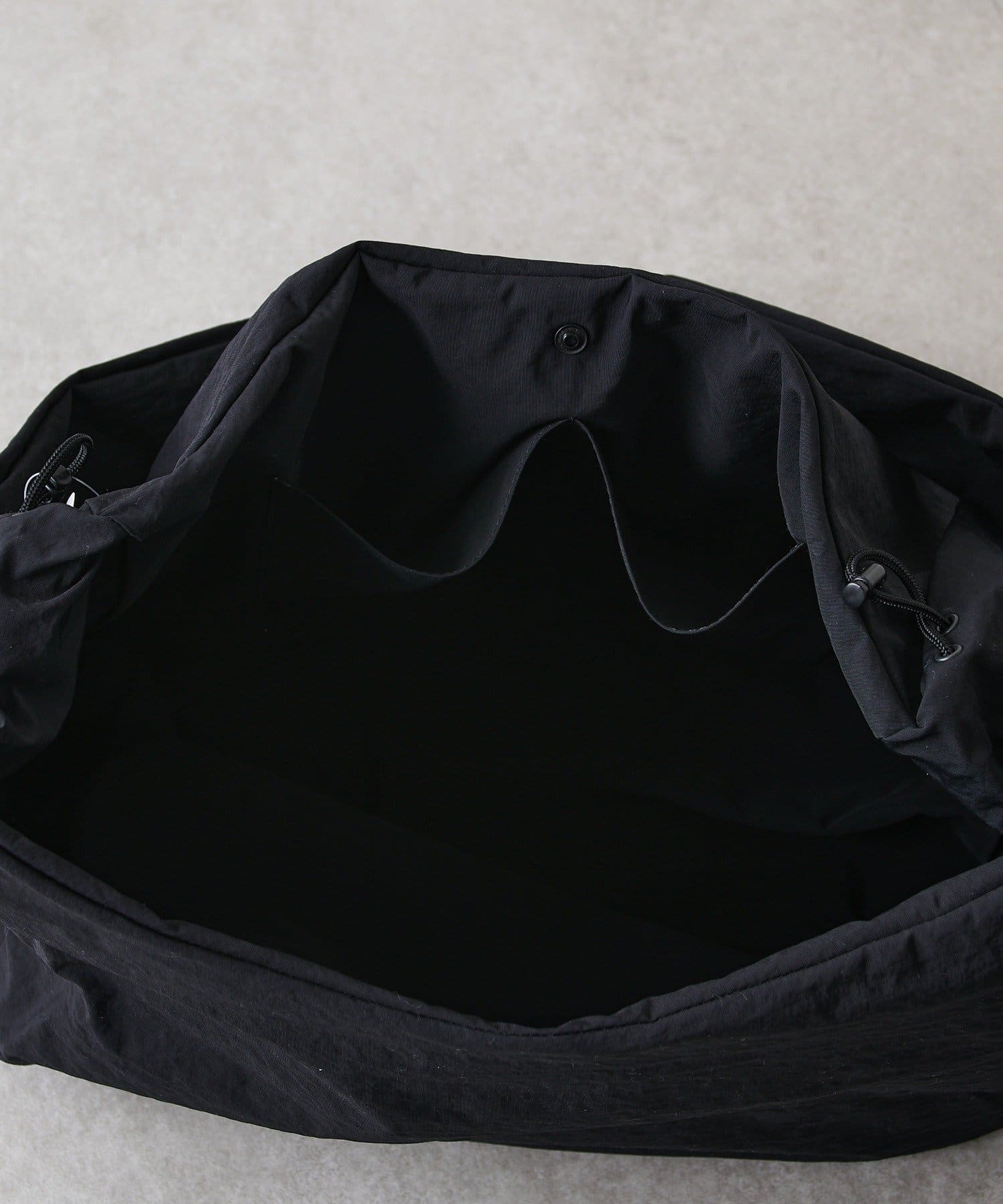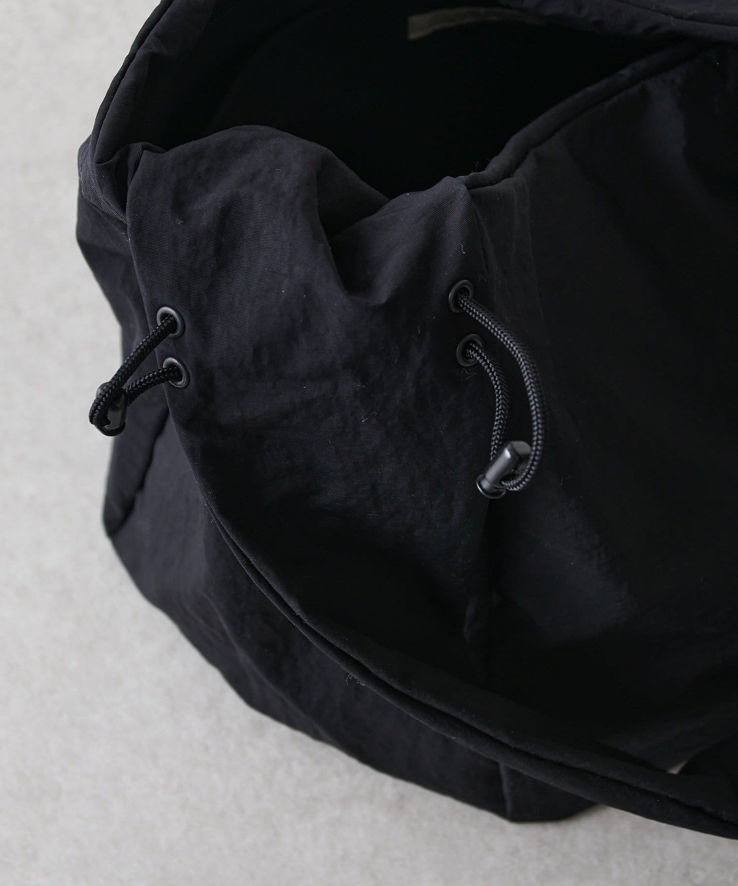 ショルダー部分のドローコードで長さを調節可能。また見た目の変化も楽しんでいただけます。