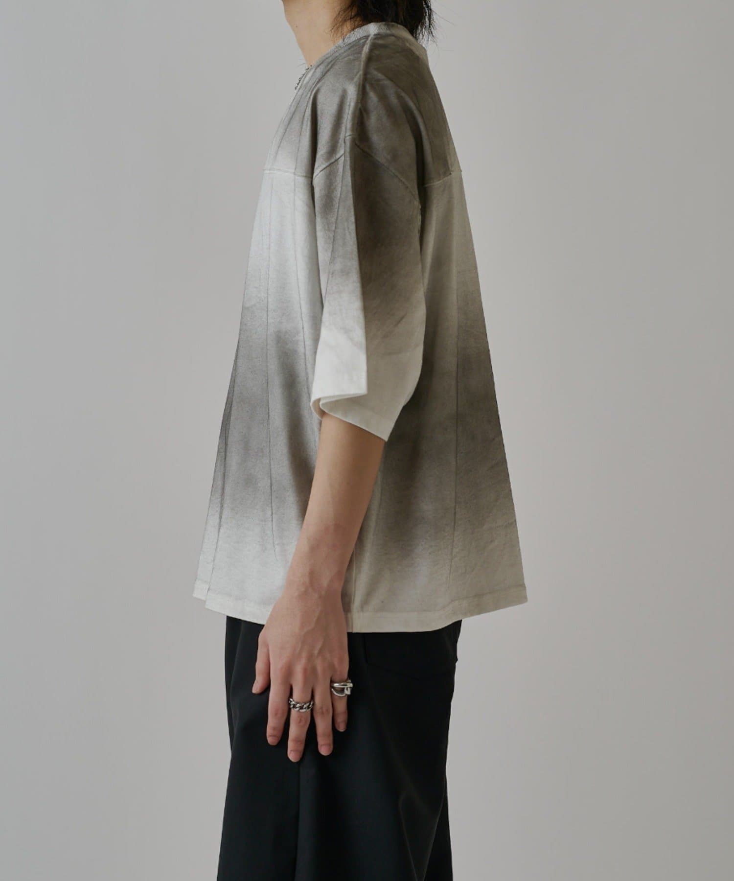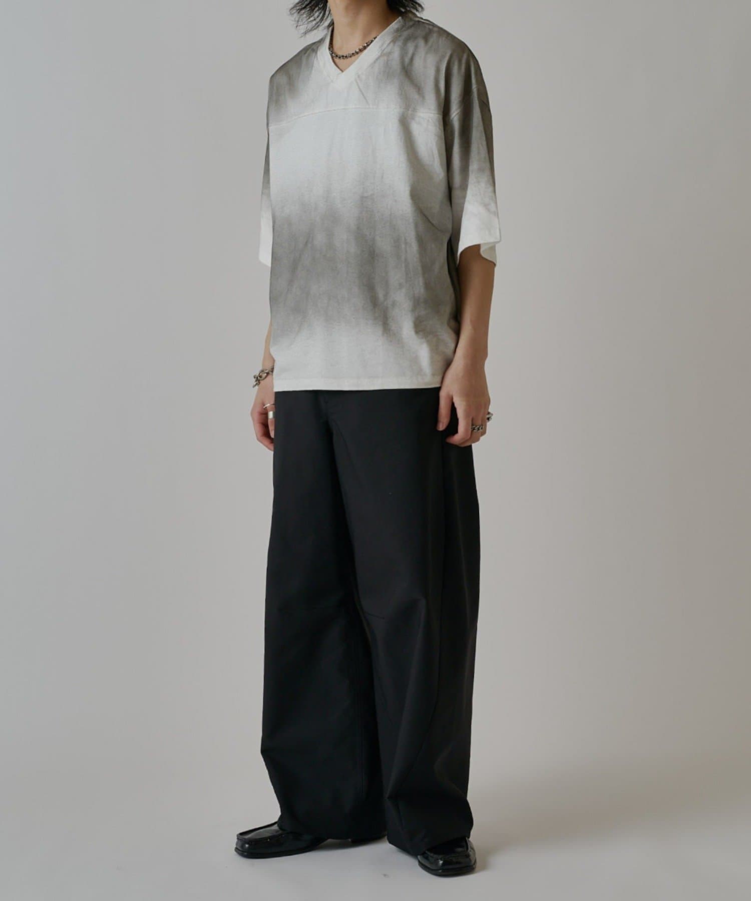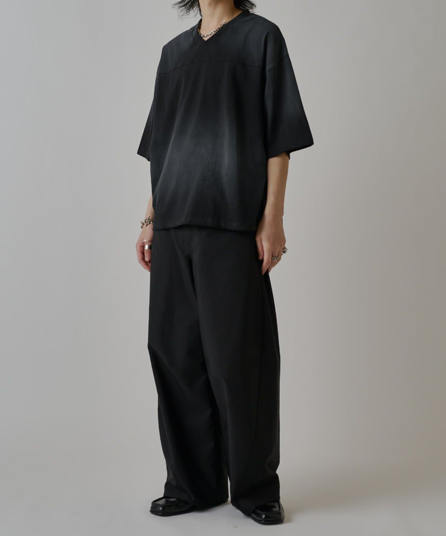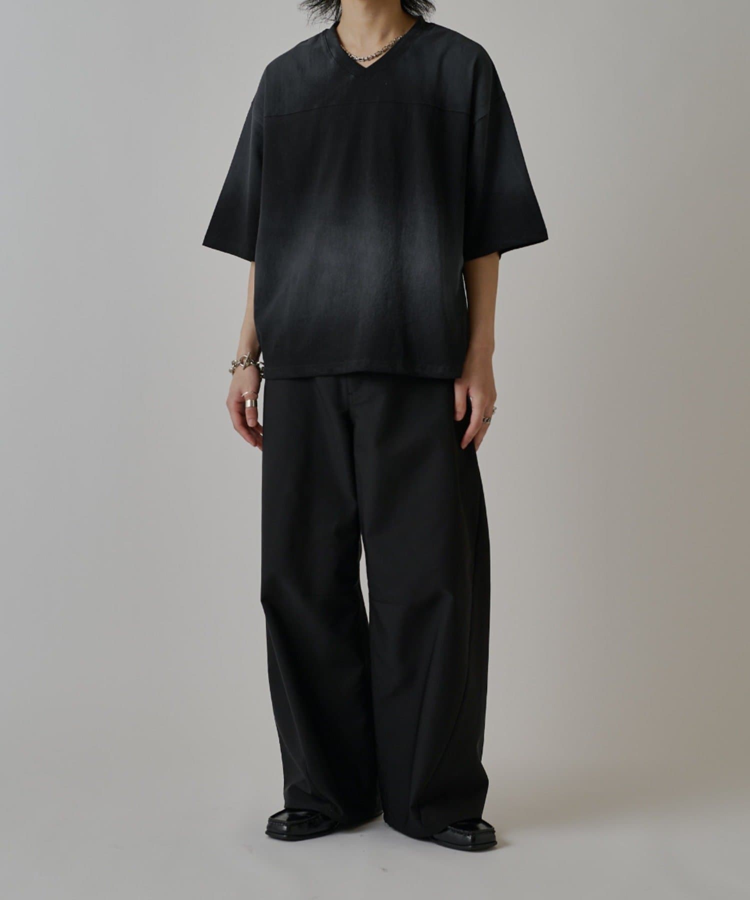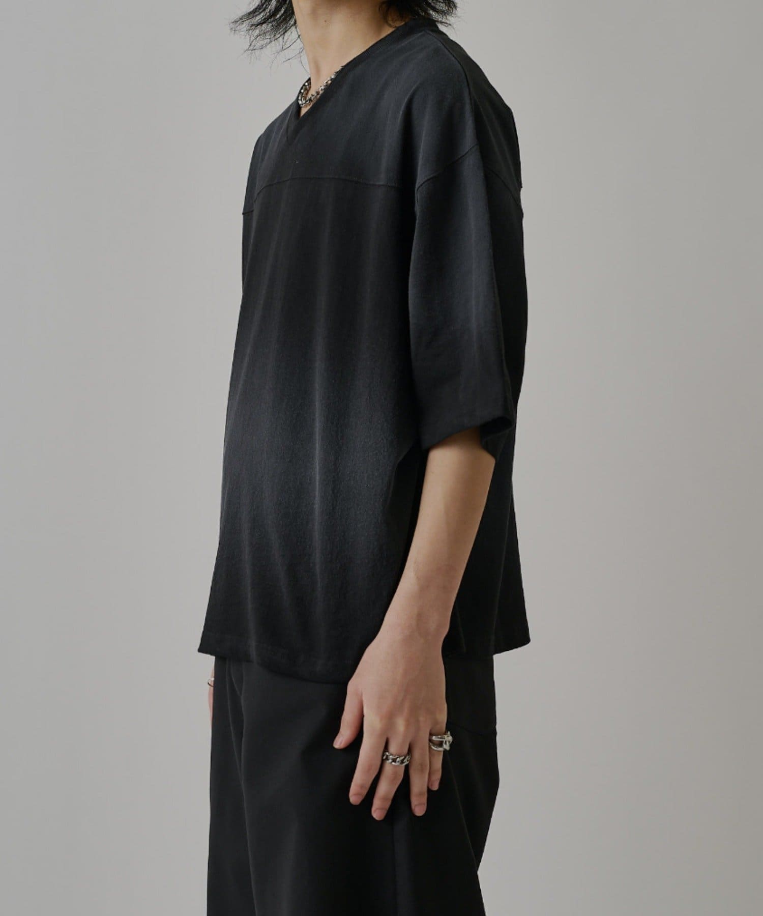 ・グランジテイストのブリーチ加工を施したフットボールTシャツ。