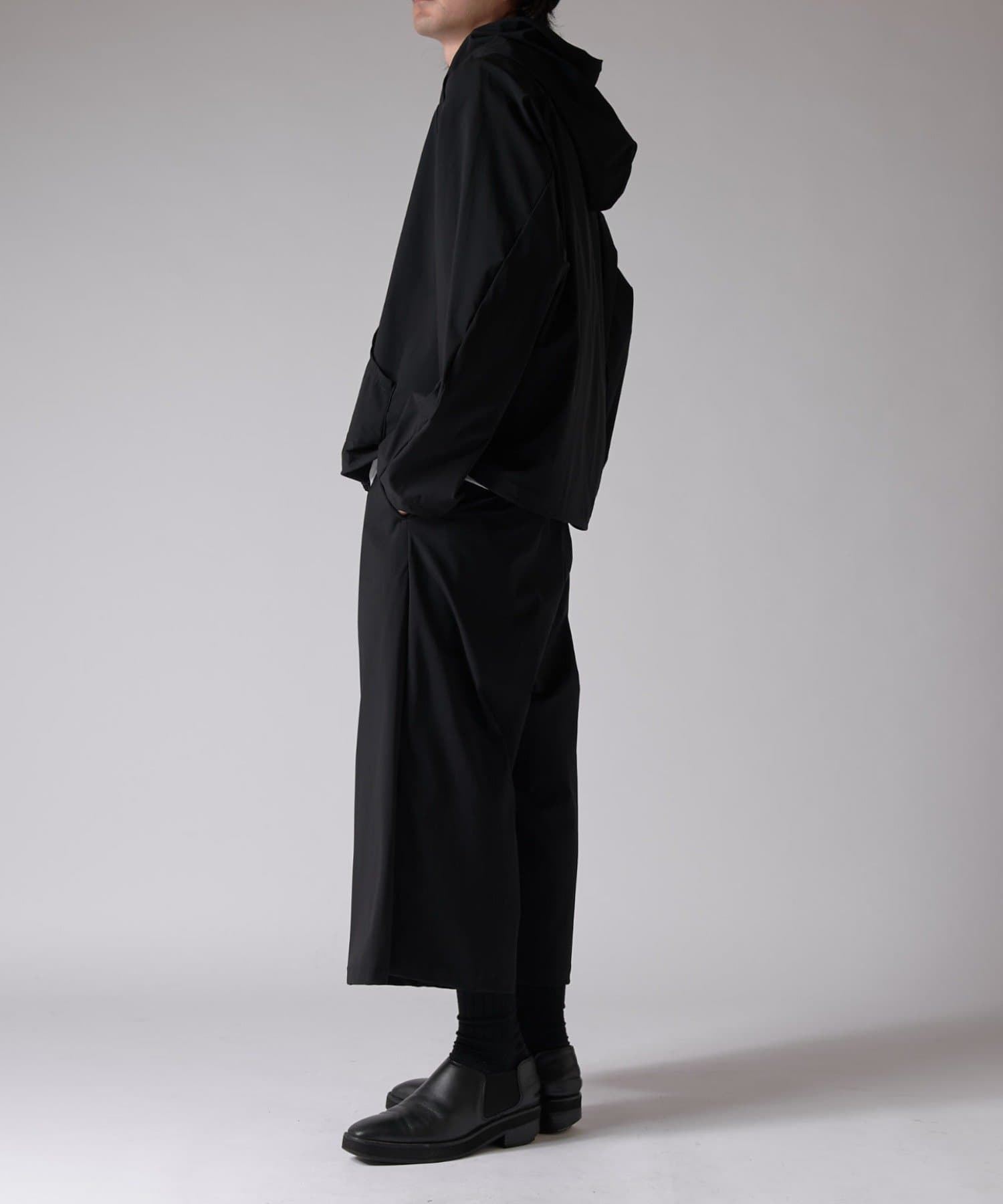 オーバーサイズフーディと8、9部丈でサイドポケットもついたクロップドパンツの2型で単品で着用も良いですが、セットアップで着用することで、どことなくモードな空気感がプラスされています。