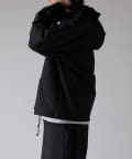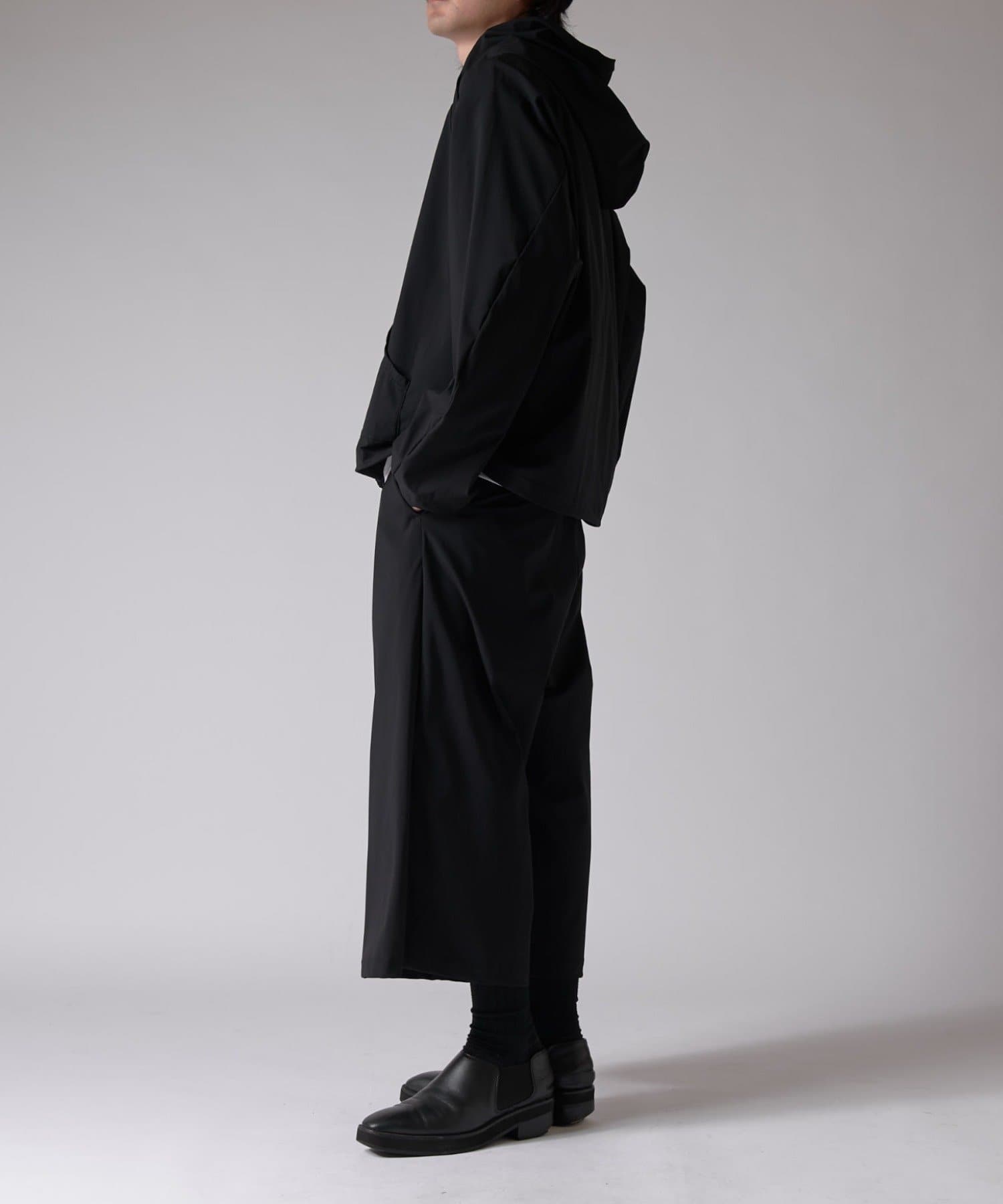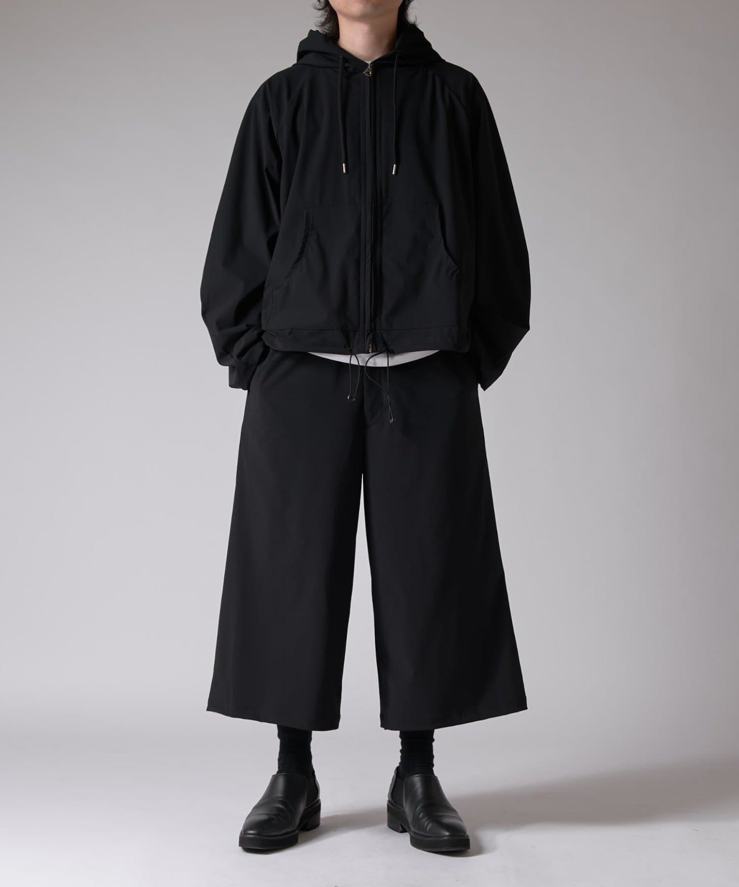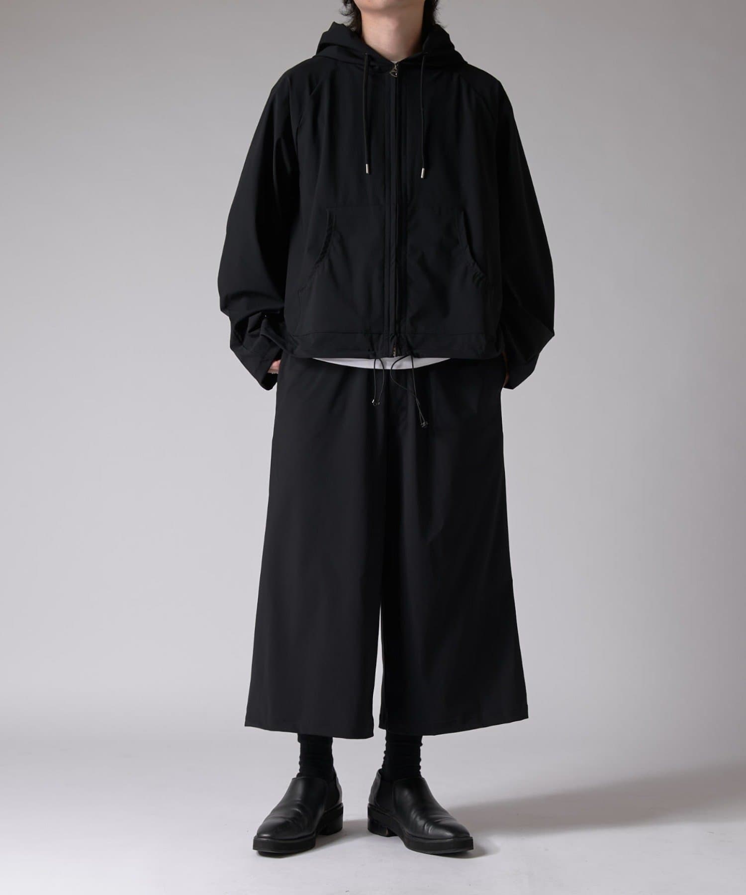オーバーサイズフーディと8、9部丈でサイドポケットもついたクロップドパンツの2型で単品で着用も良いですが、セットアップで着用することで、どことなくモードな空気感がプラスされています。