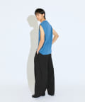 オーバーサイズなシルエットを活かしてワイドパンツに一枚で着る夏スタイルがおすすめ。