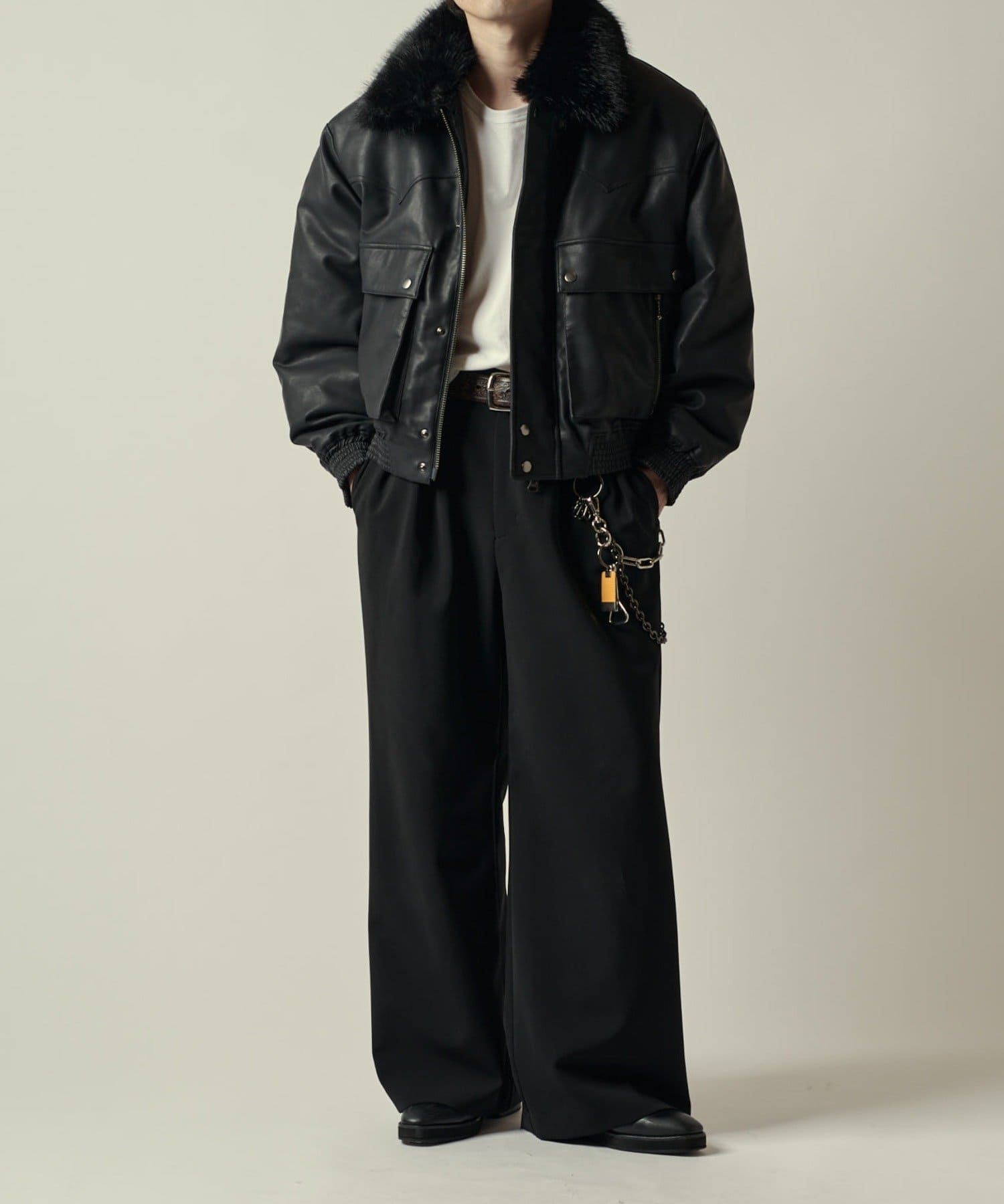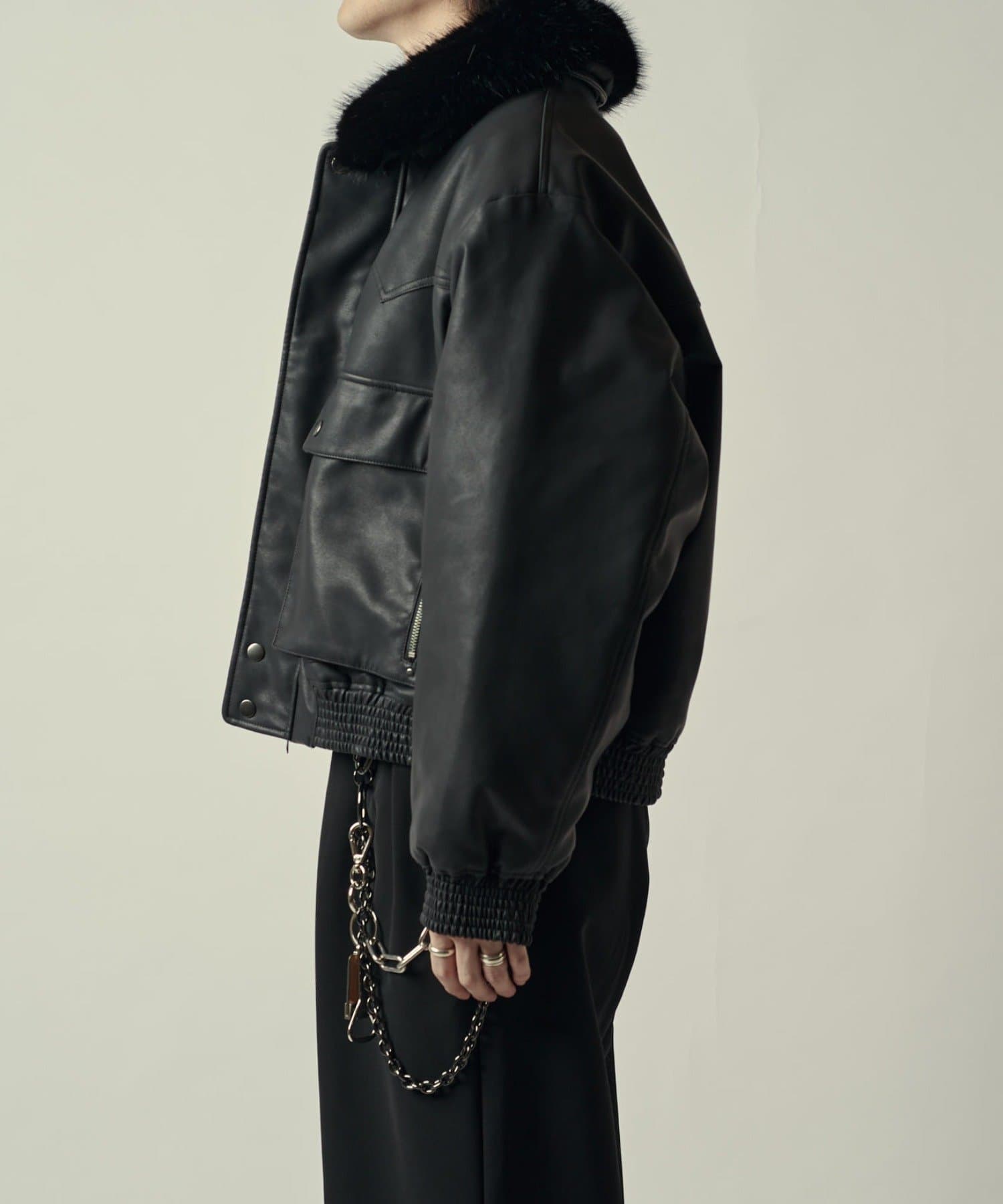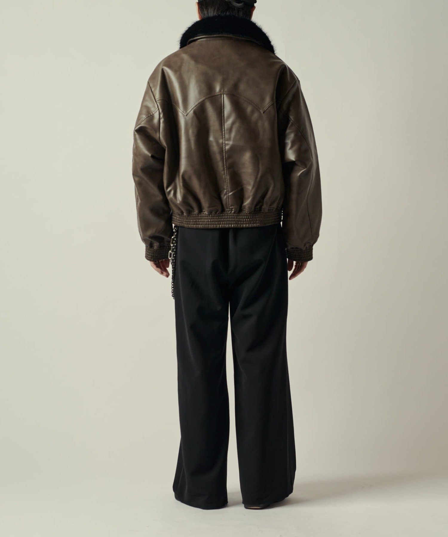 身幅に対して着丈がすっきりとしたシルエットのフライトジャケットをモチーフにしたアイテム。