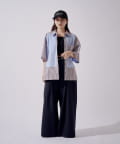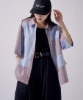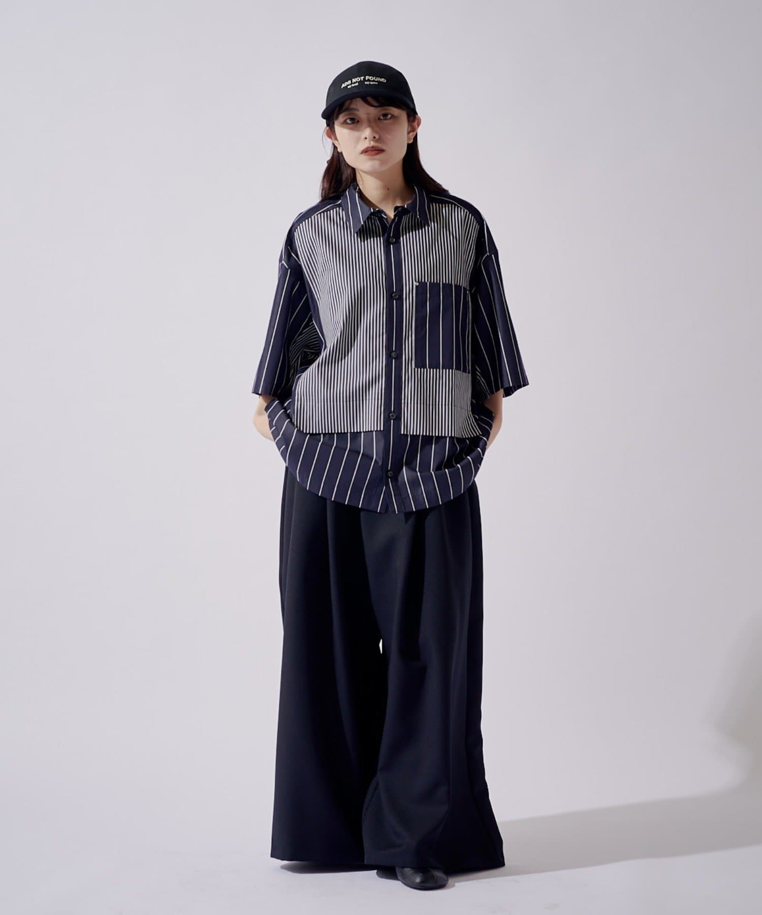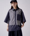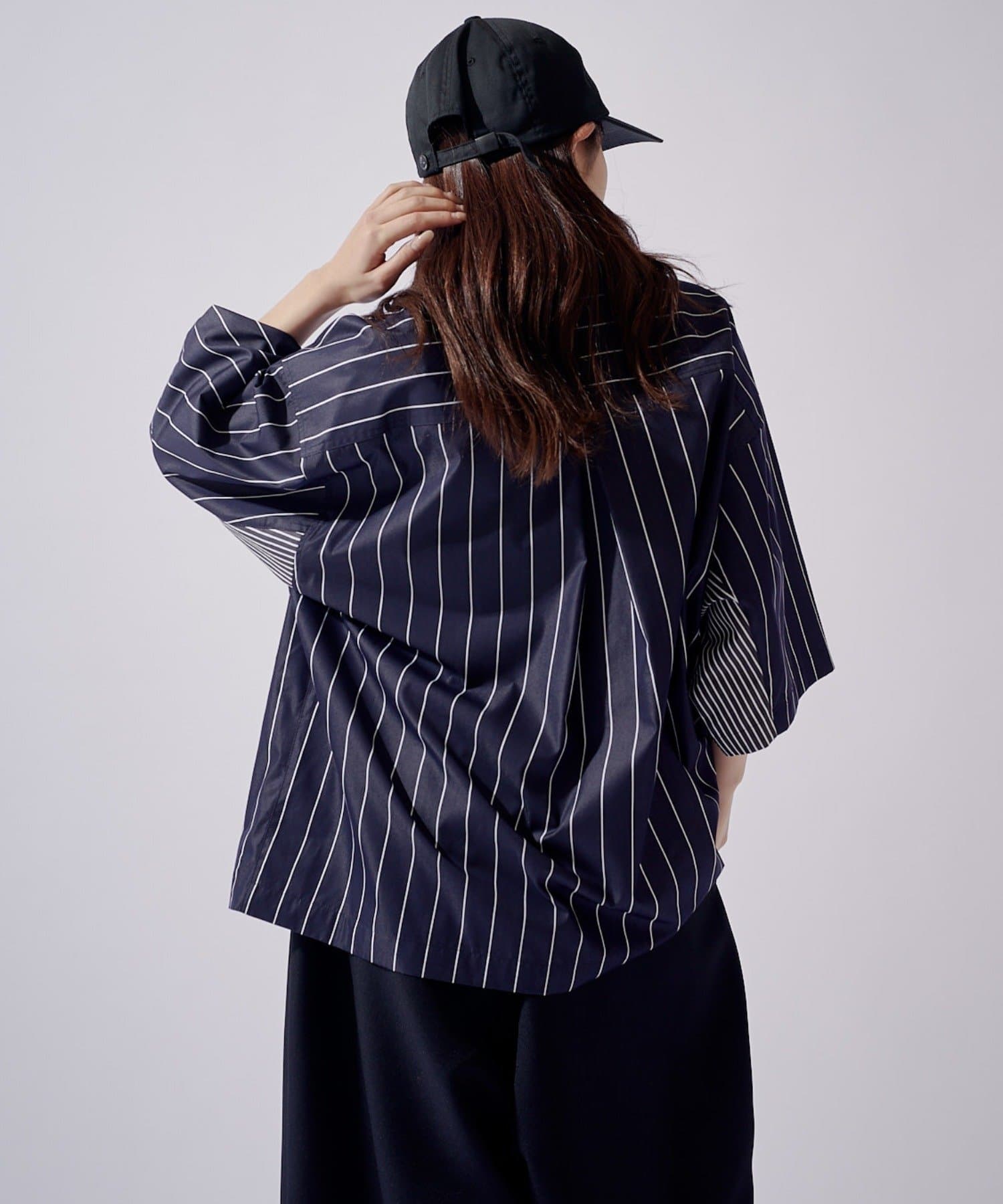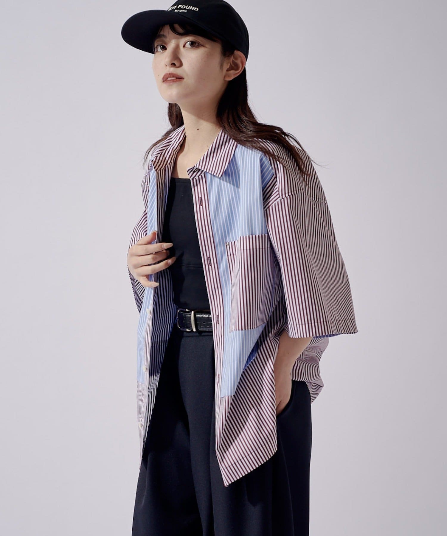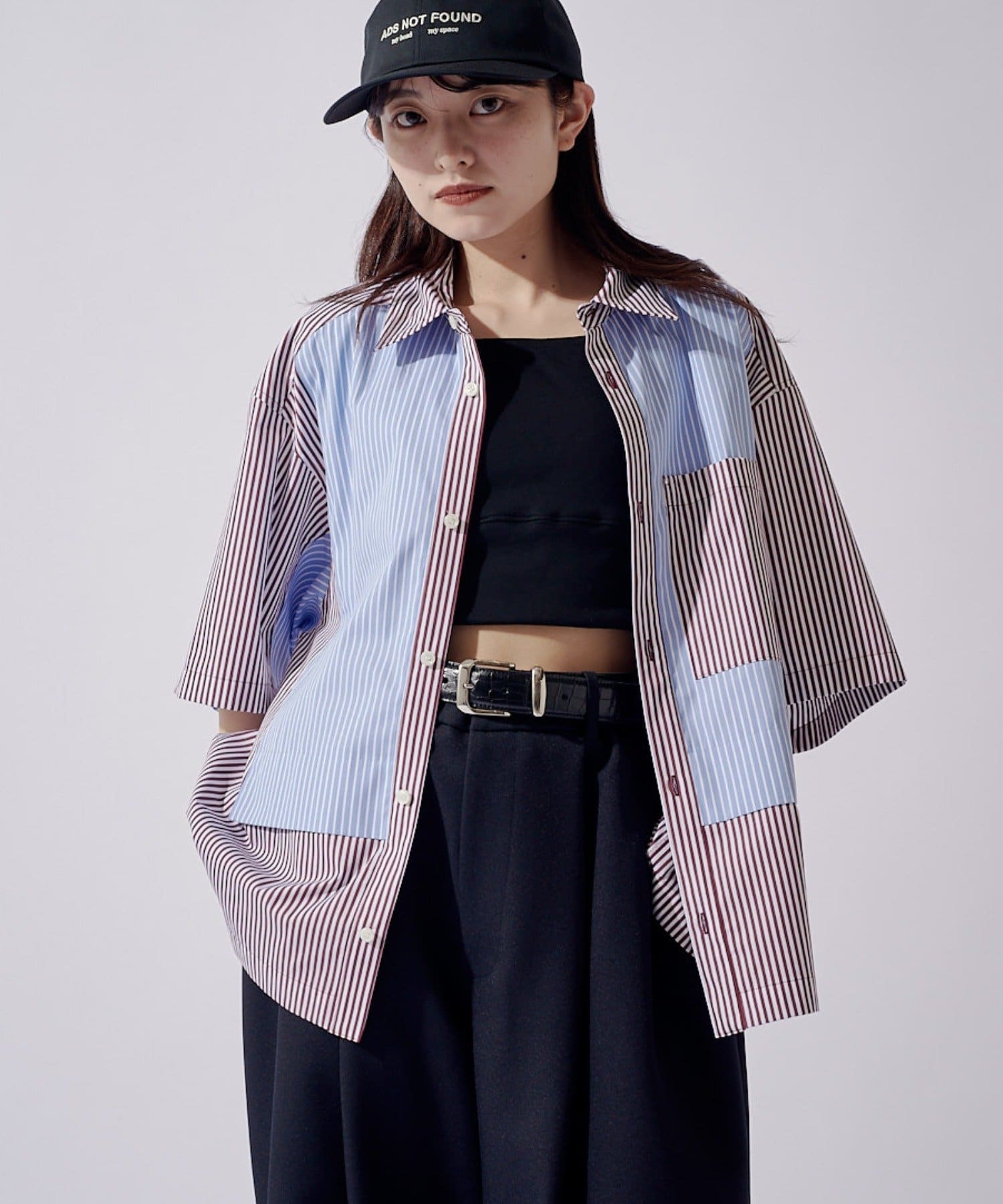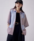 2種類のストライプが切替デザインになっているデザインシャツです。