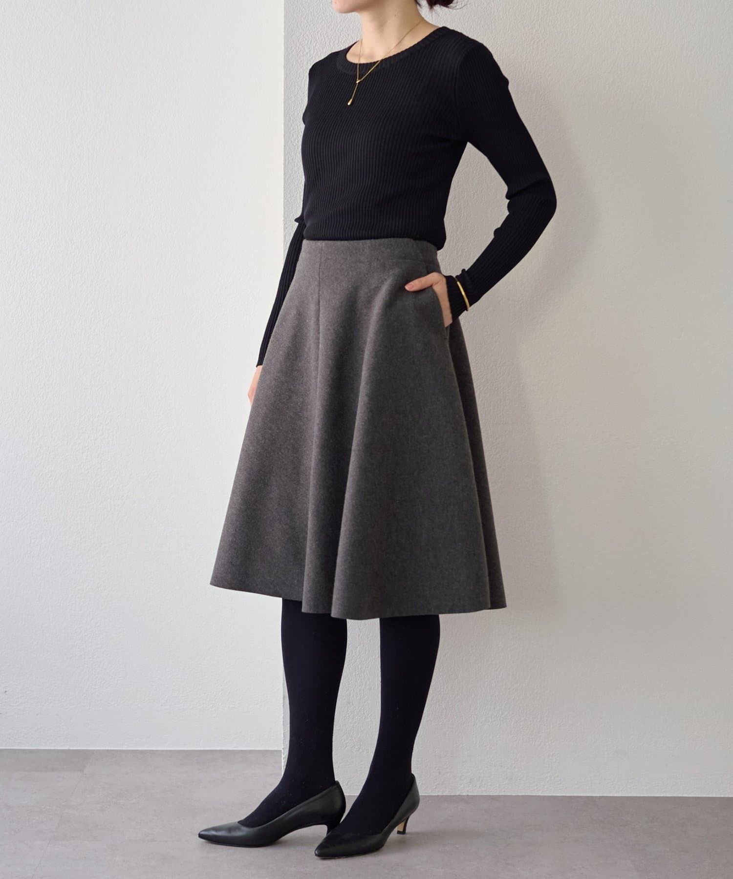 メルトンジャージーフレアミディスカート