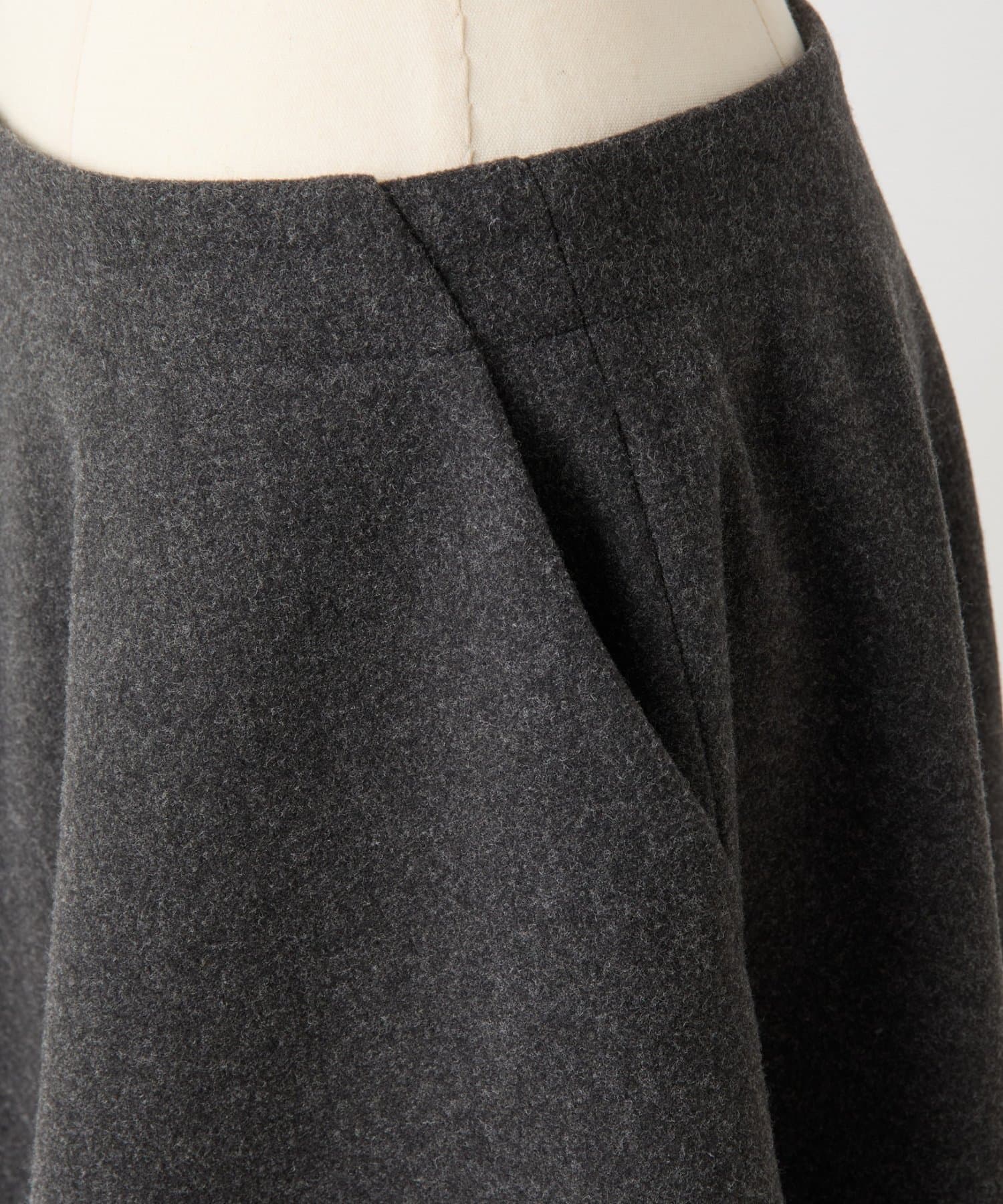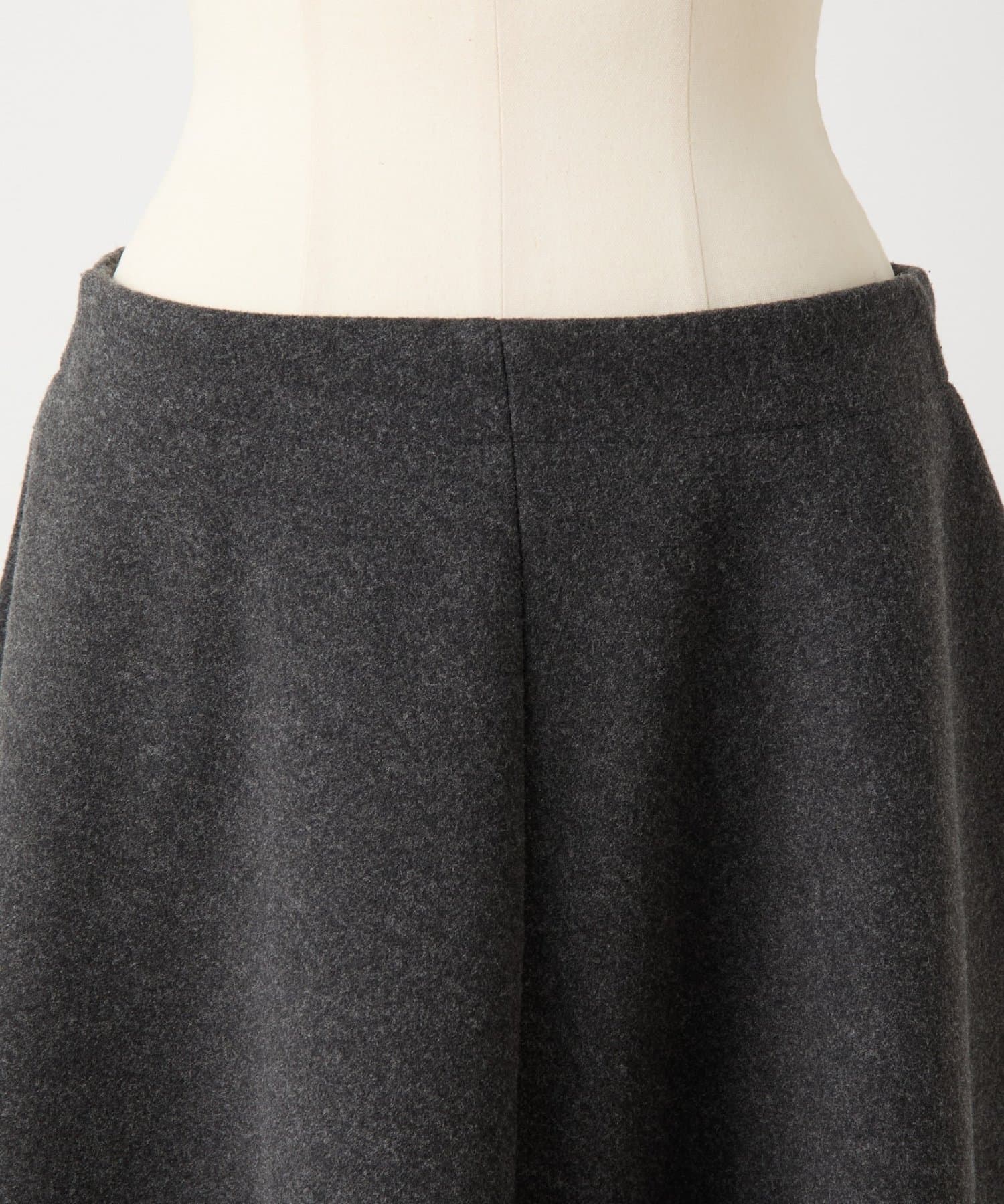フェルトのように柔らかく、滑らかな肌ざわりが特徴のメルトンジャージー生地を使用したミドル丈のスカート。