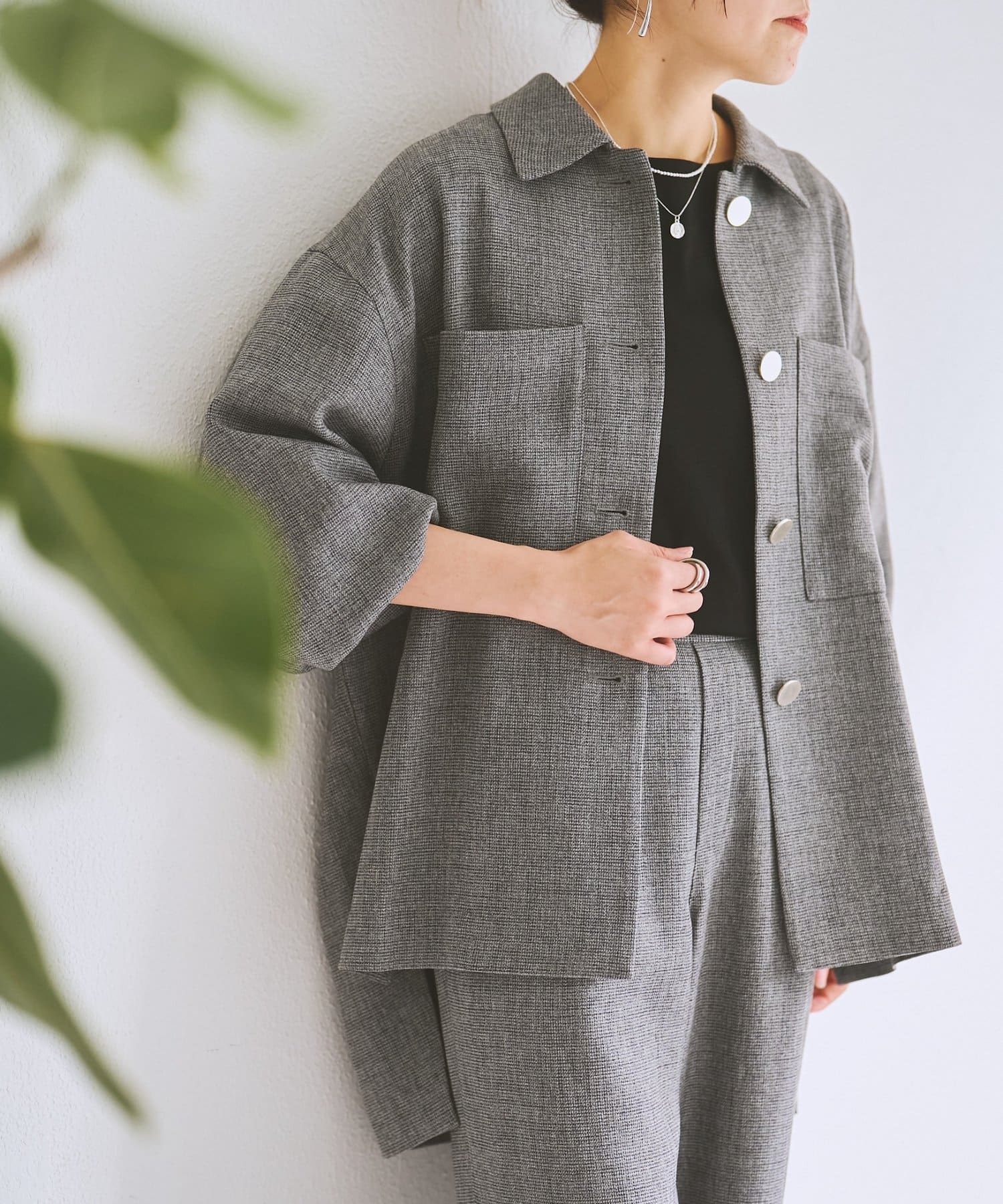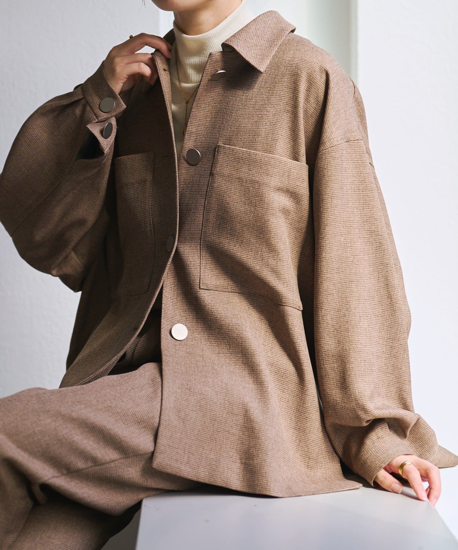 ワーク感のあるデザインなので、デニムなどのデイリースタイルにも取り入れやすく、同素材のパンツと合わせてセットアップで洗練されたスタイルを楽しめます。