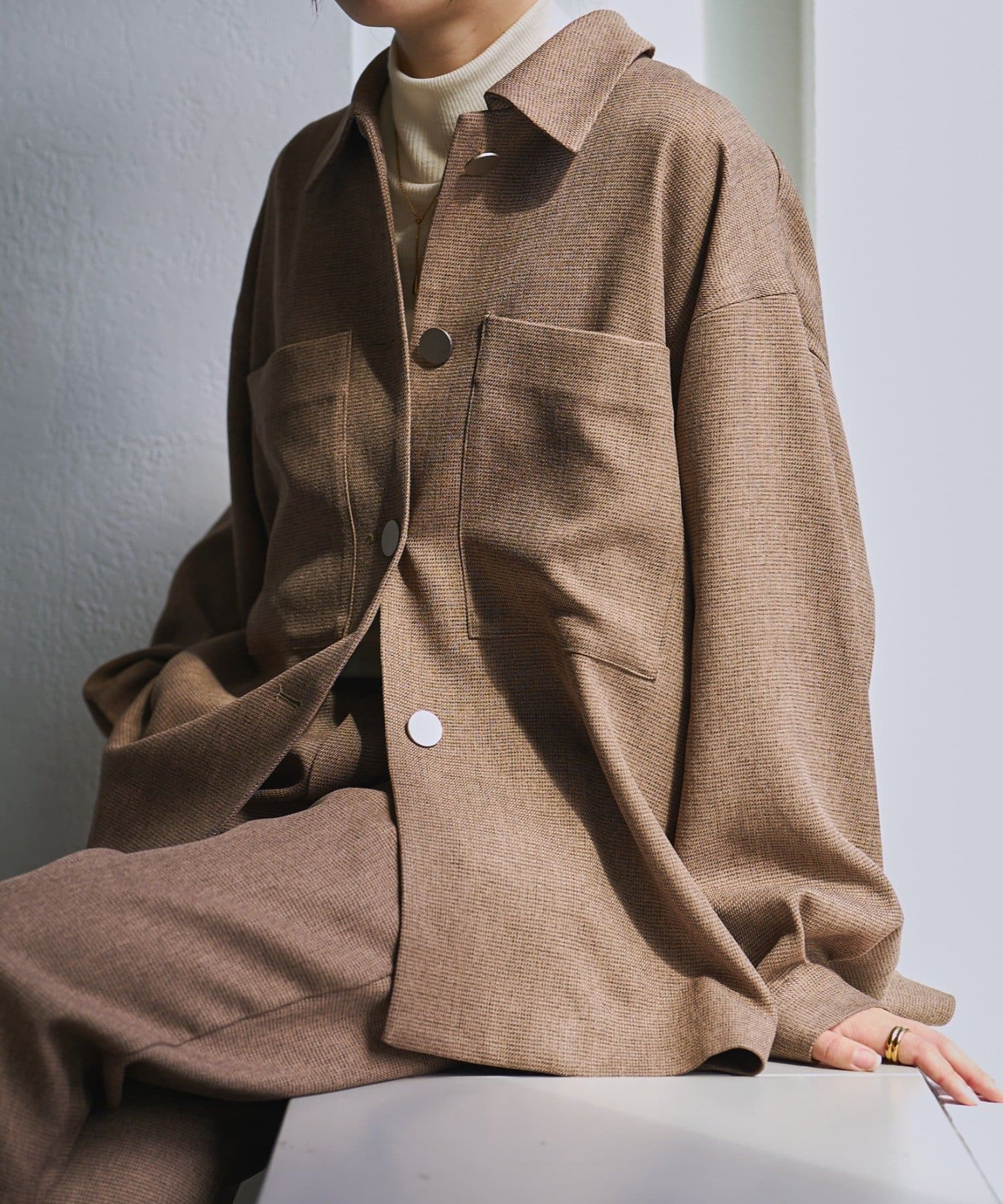 メランジピンヘッドシャツジャケット