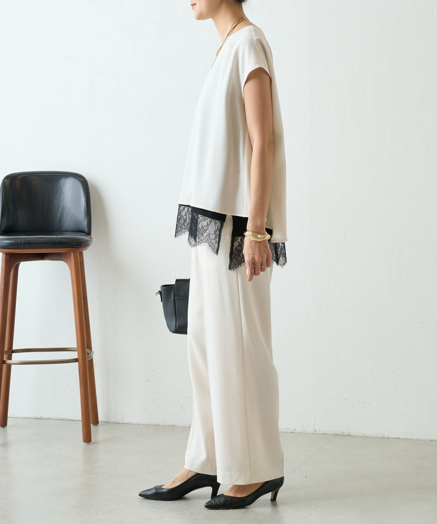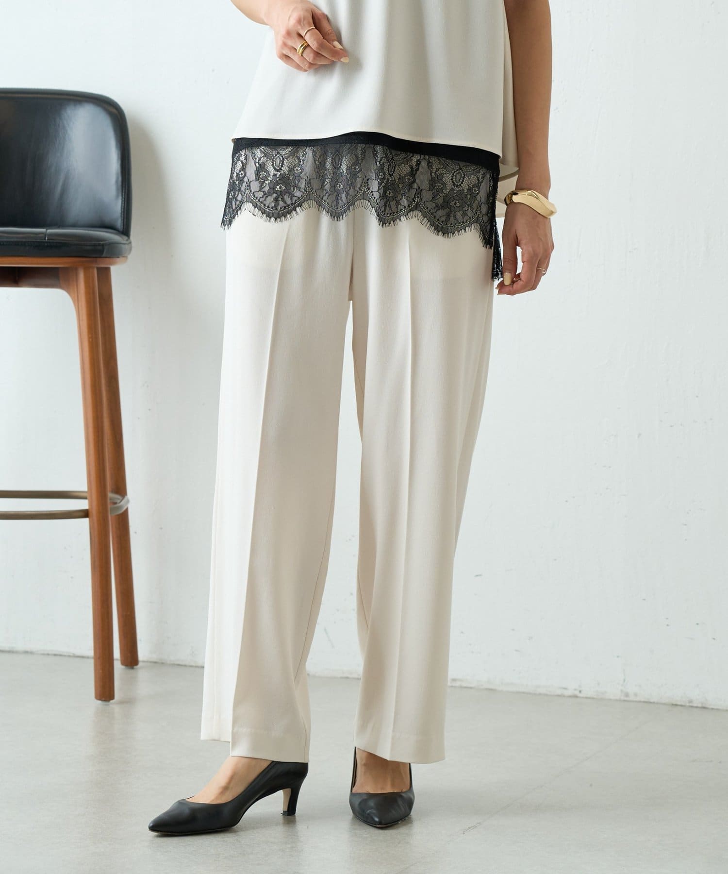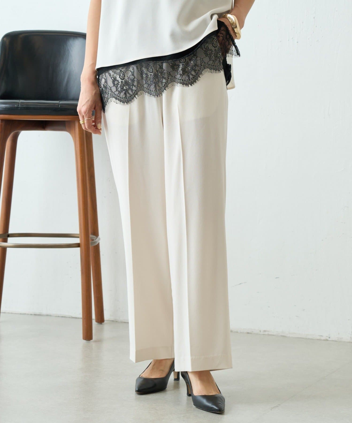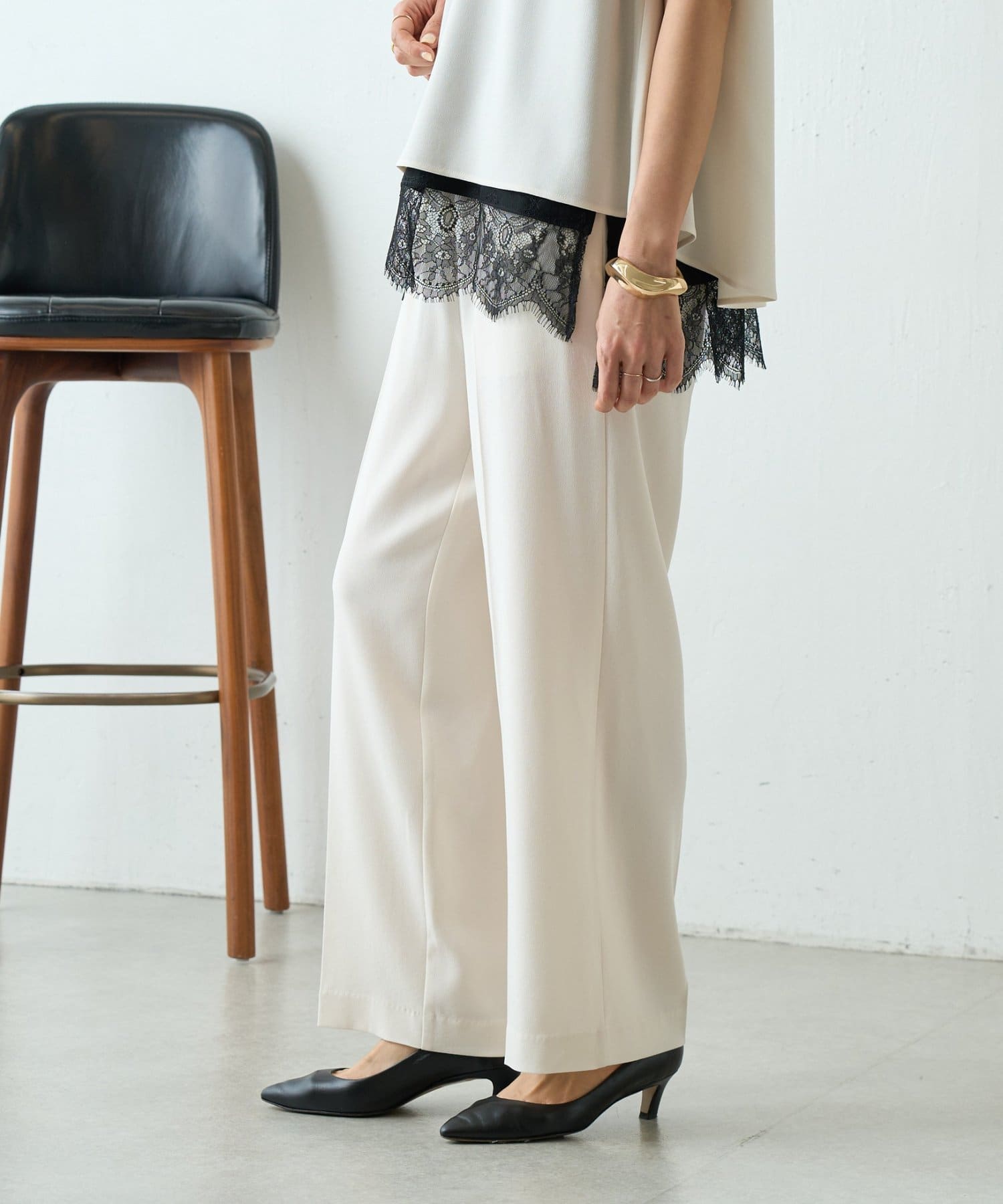 • 166㎝・アイボリー・1サイズ着用・同素材のブラウスとセットアップで着用