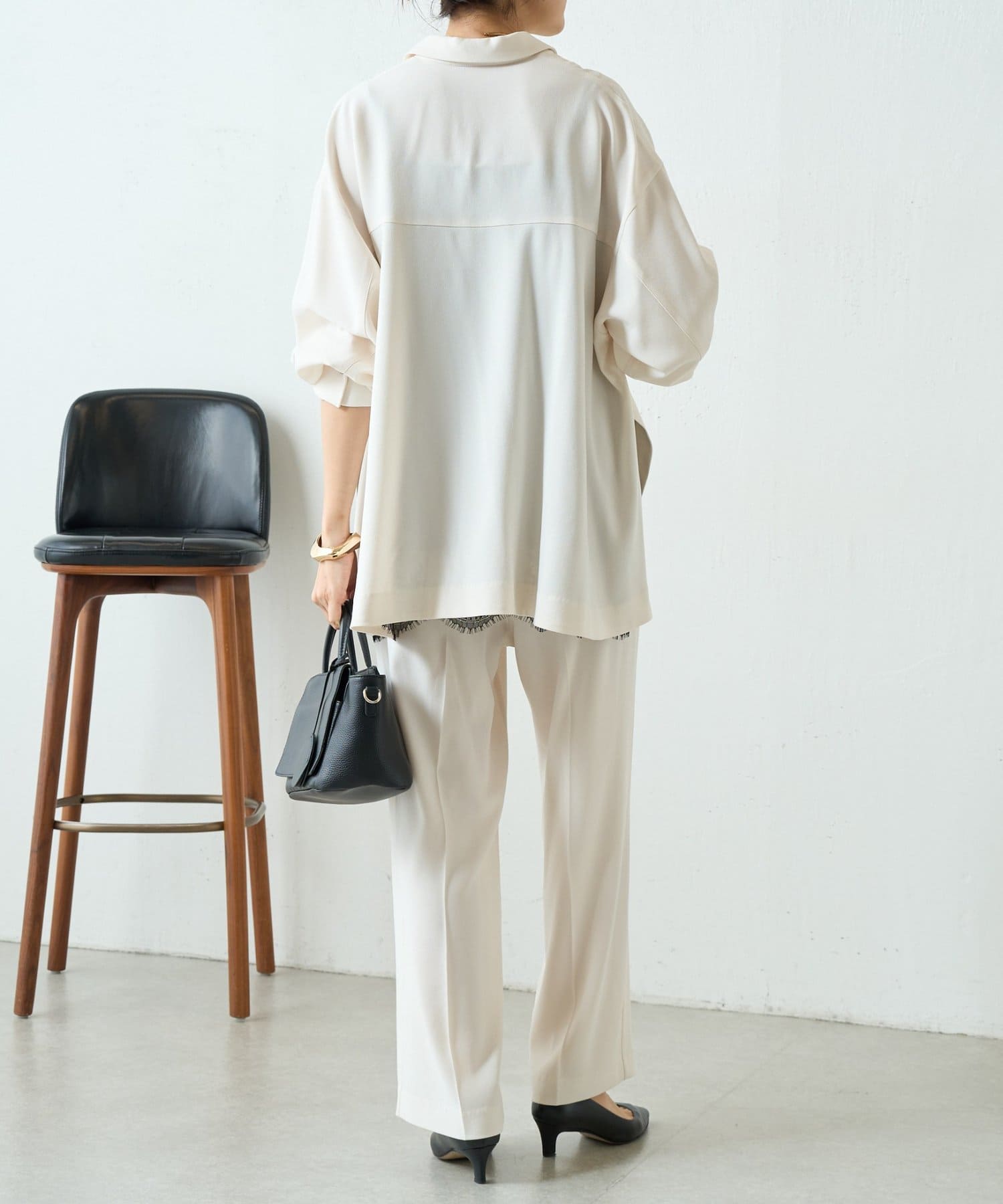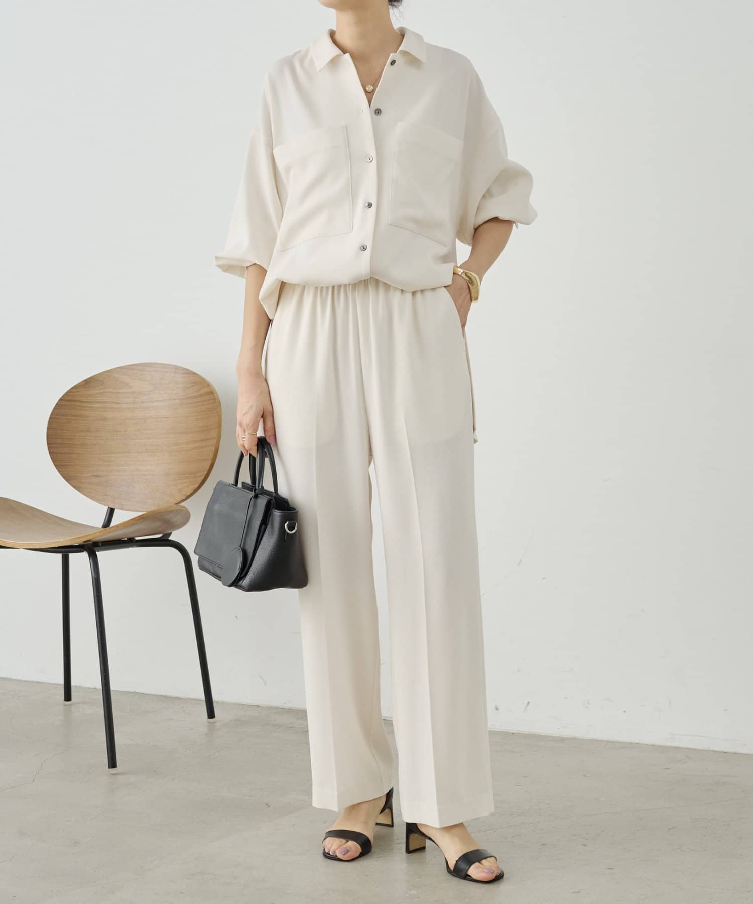 同素材でブラウスとパンツも展開しているので、お好みのアイテムでセットアップとして着られます。