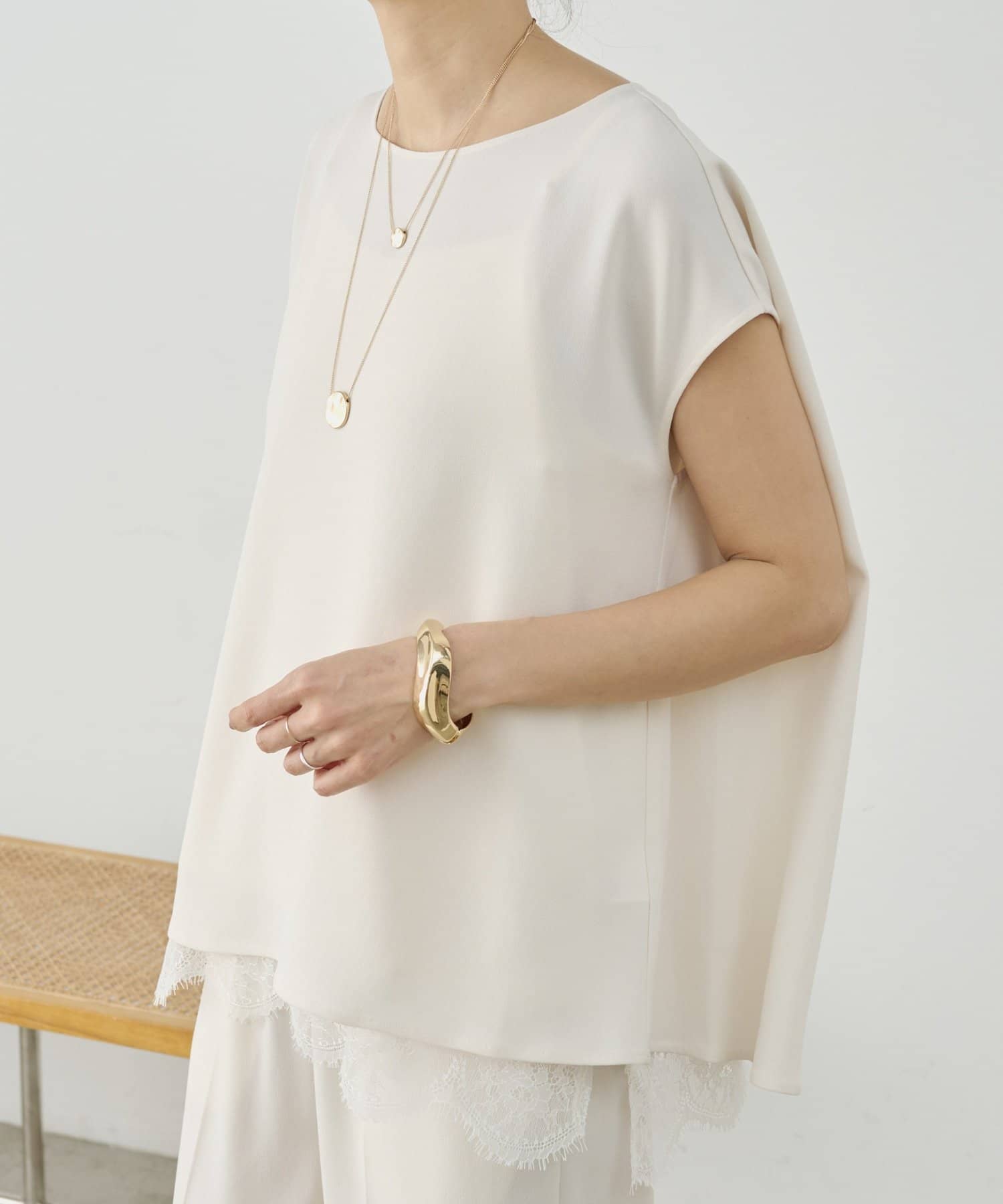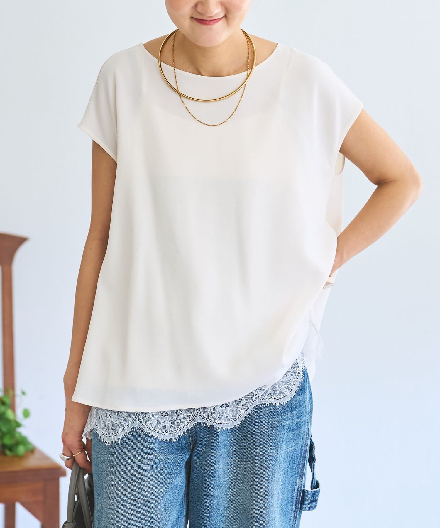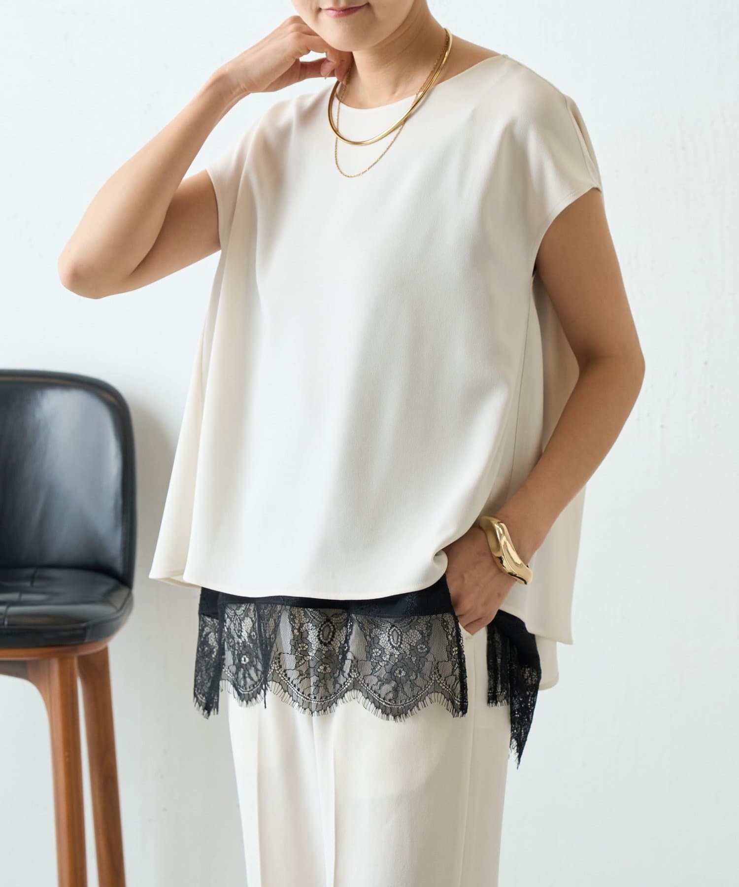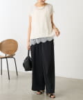 インナーのレースを裾から覗かせた綺麗めなスタイリングもおすすめ。