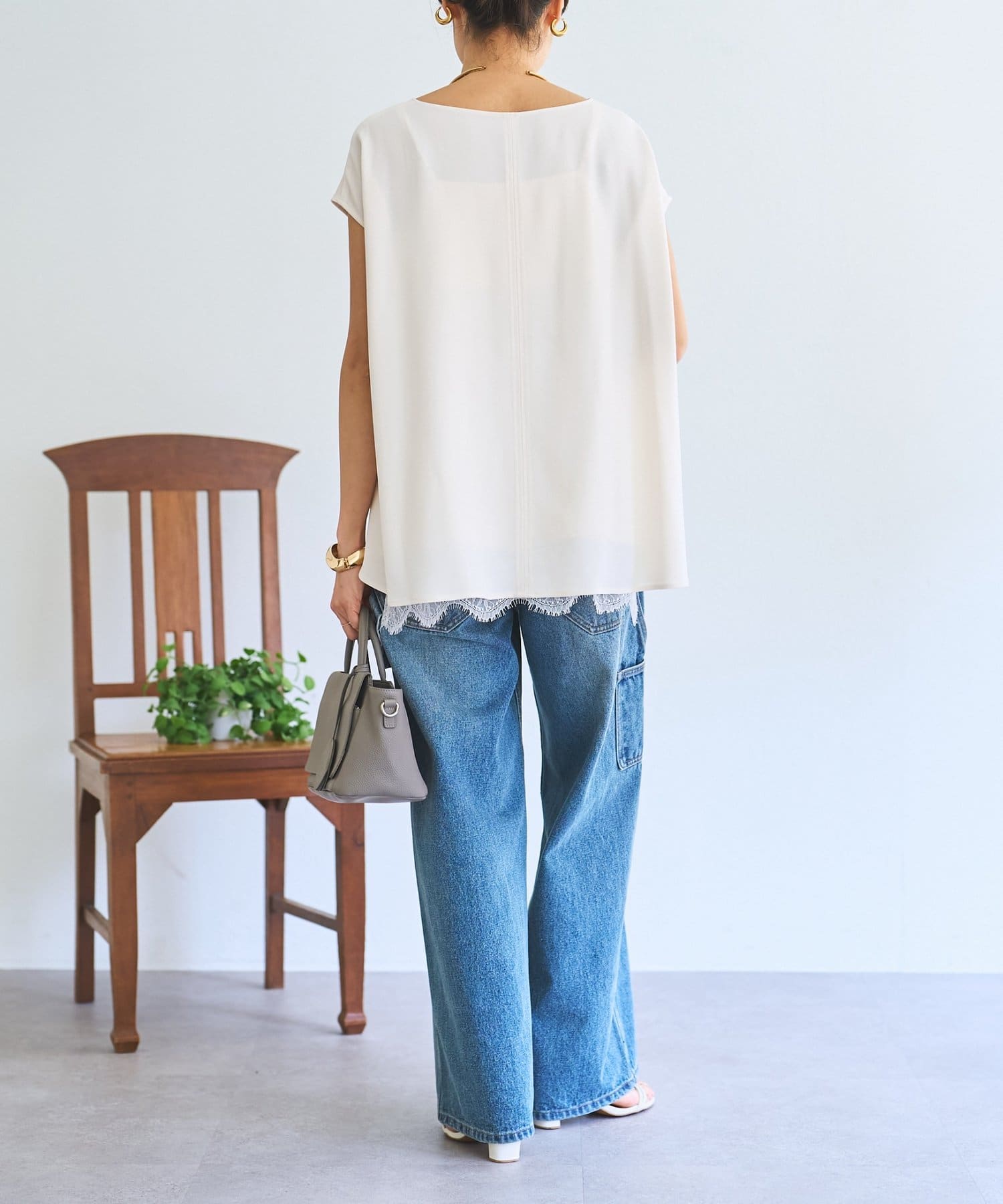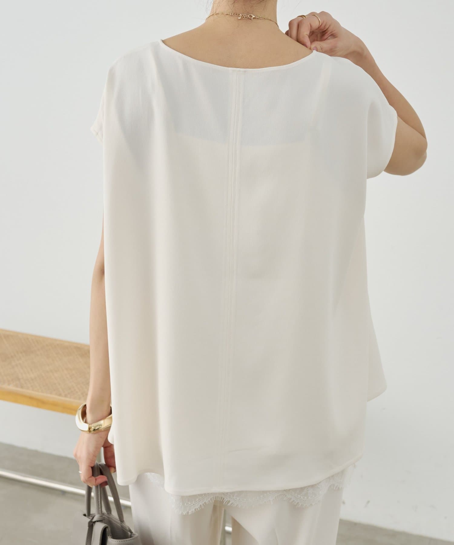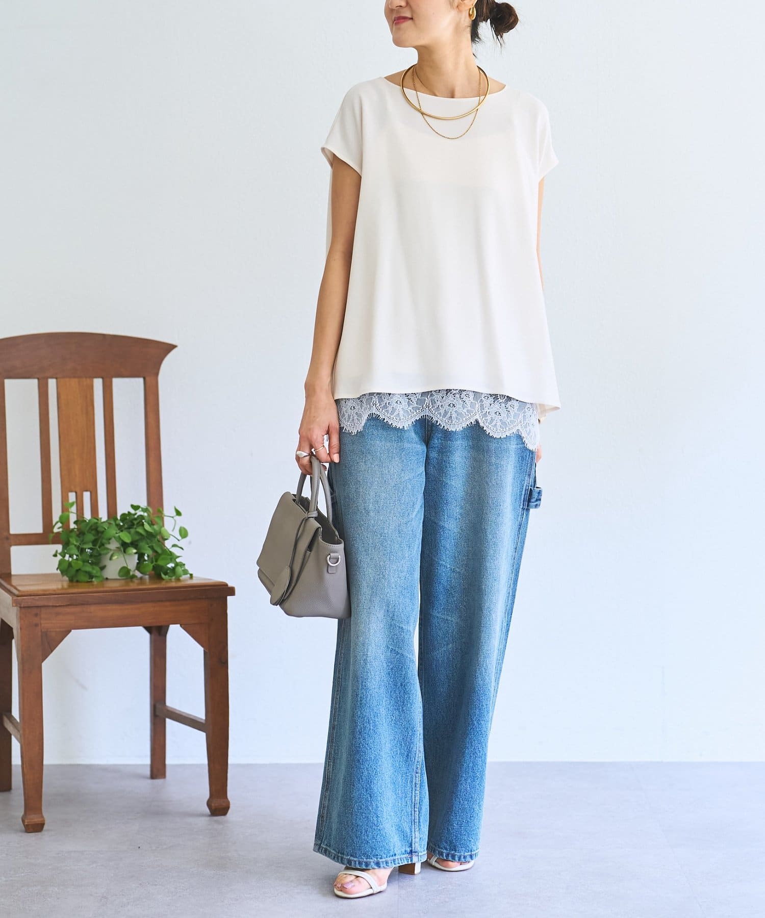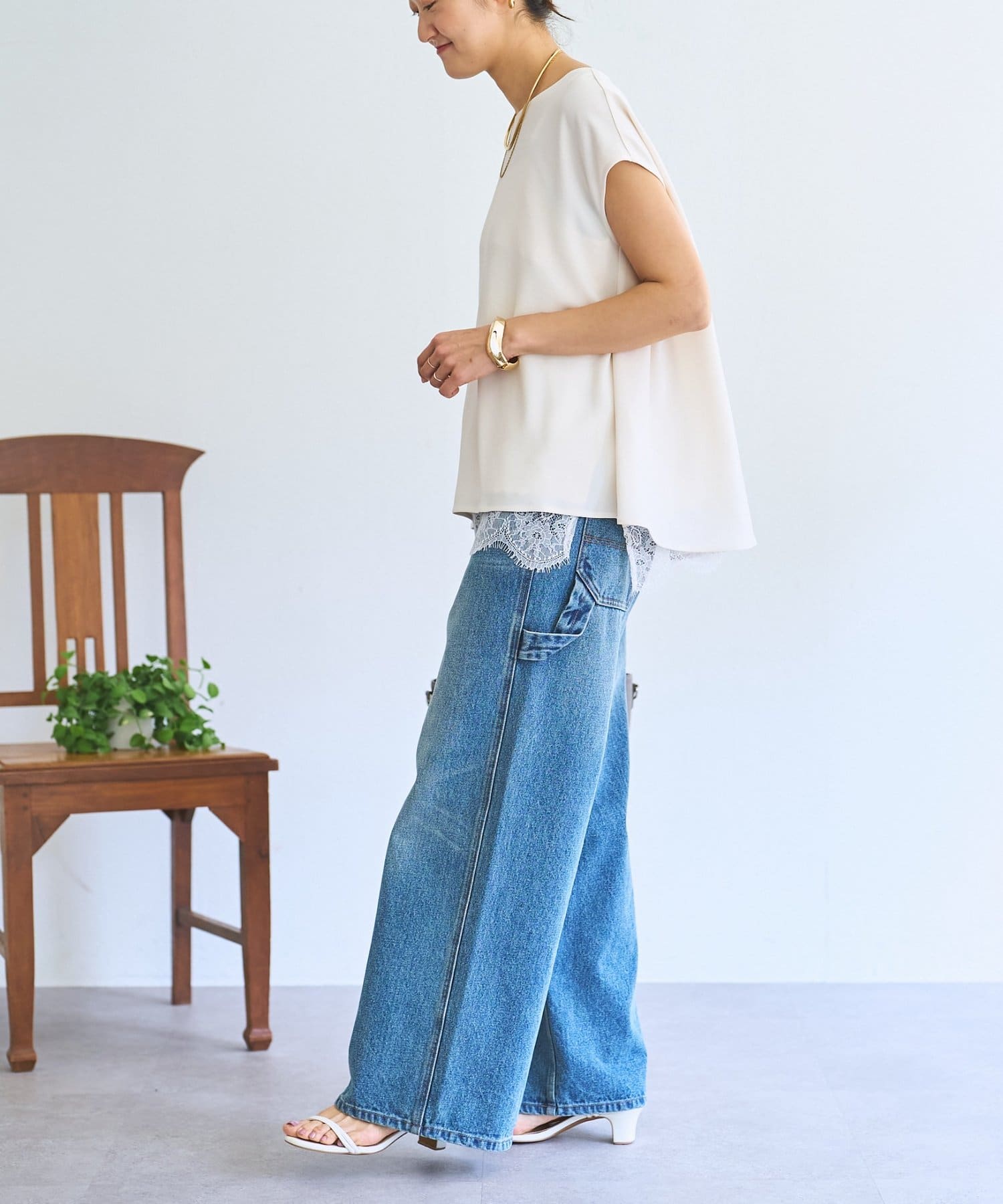 インナーのレースを裾から覗かせた綺麗めなスタイリングもおすすめ。