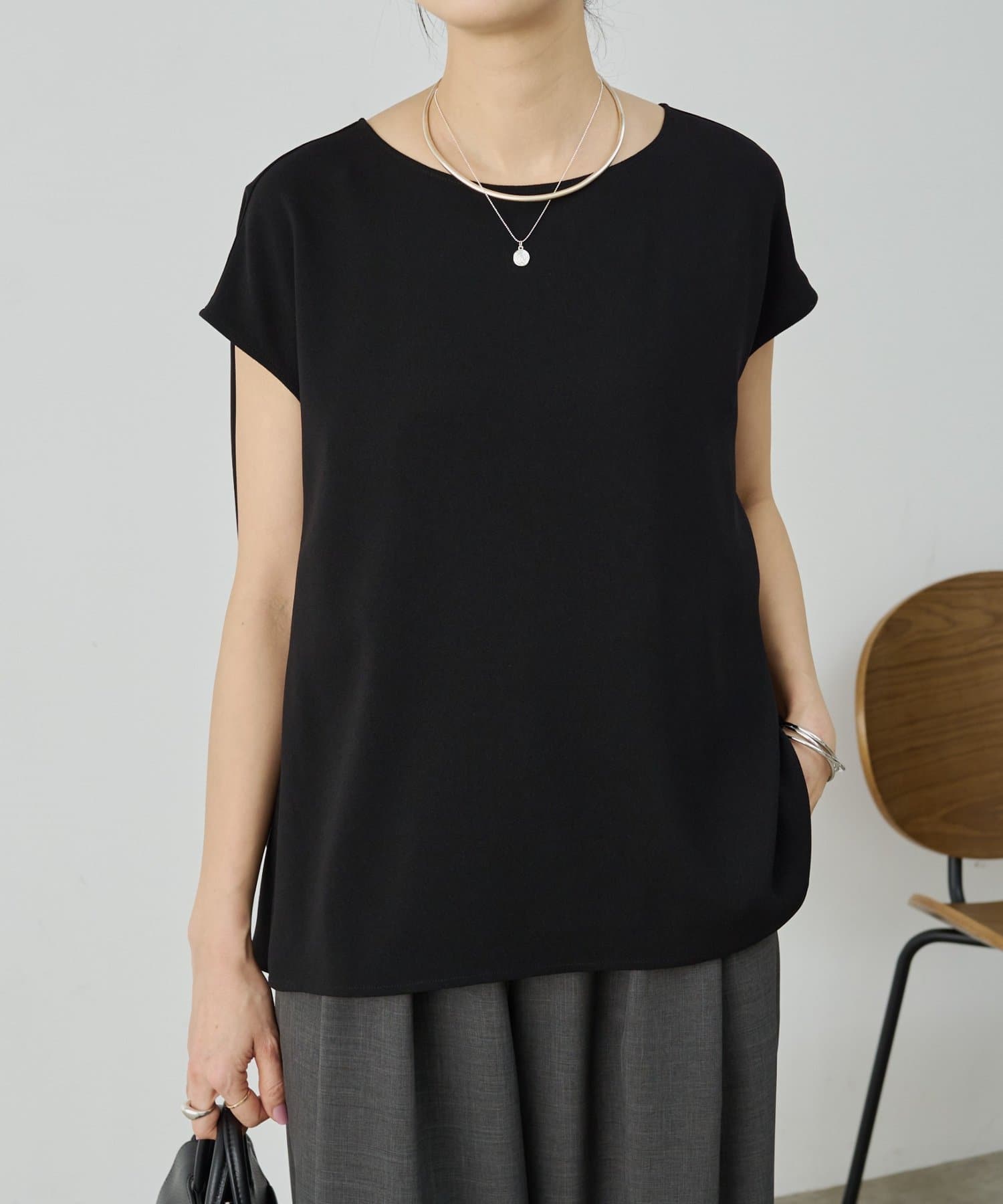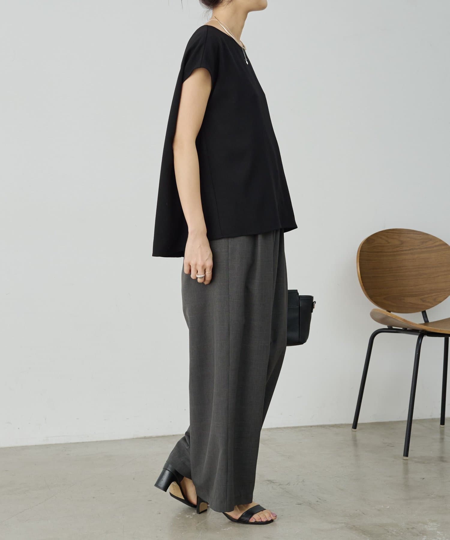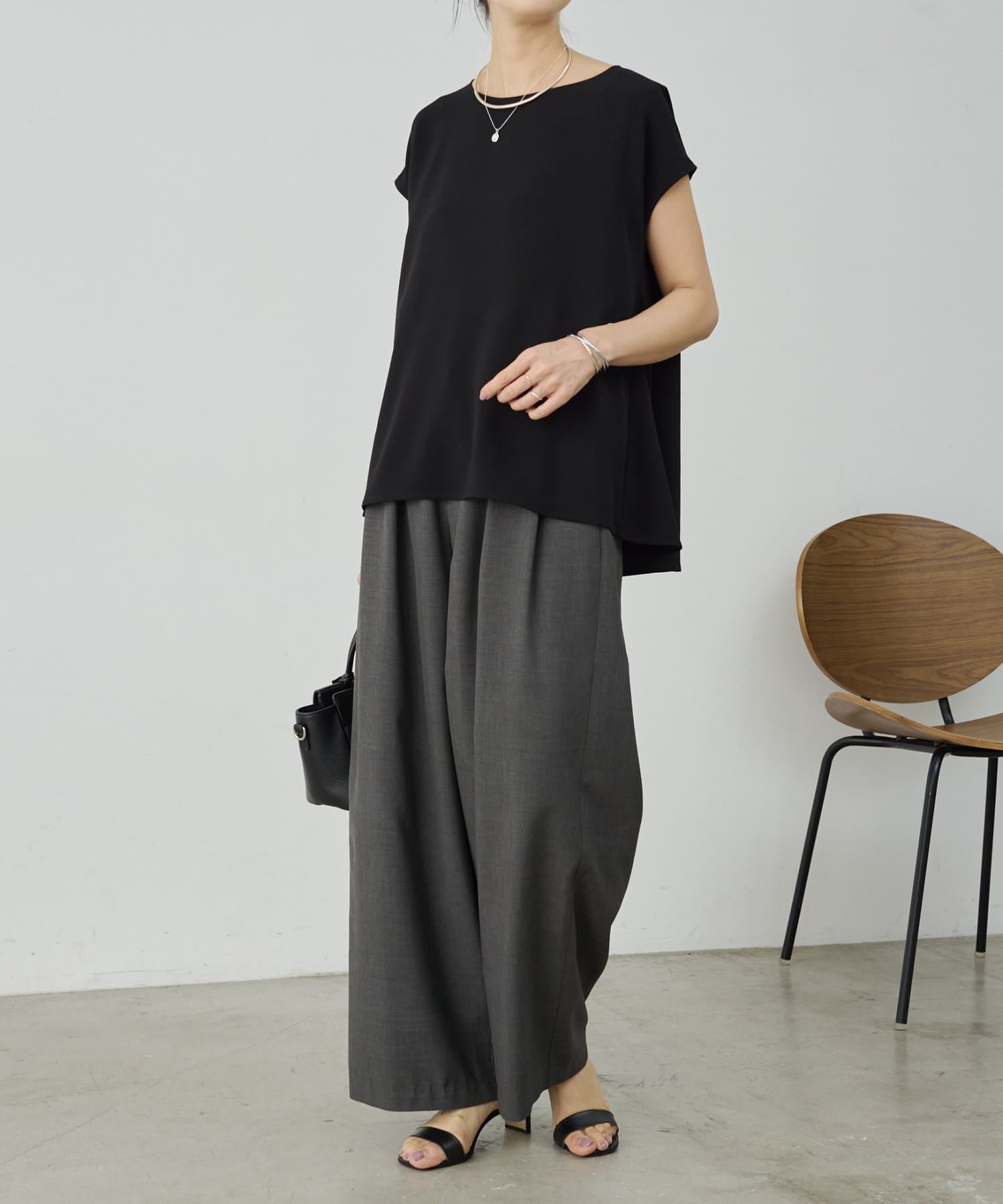 程よい厚みがありストレッチ性に優れているので体のラインを拾わず、シワになりにくいのもポイント。