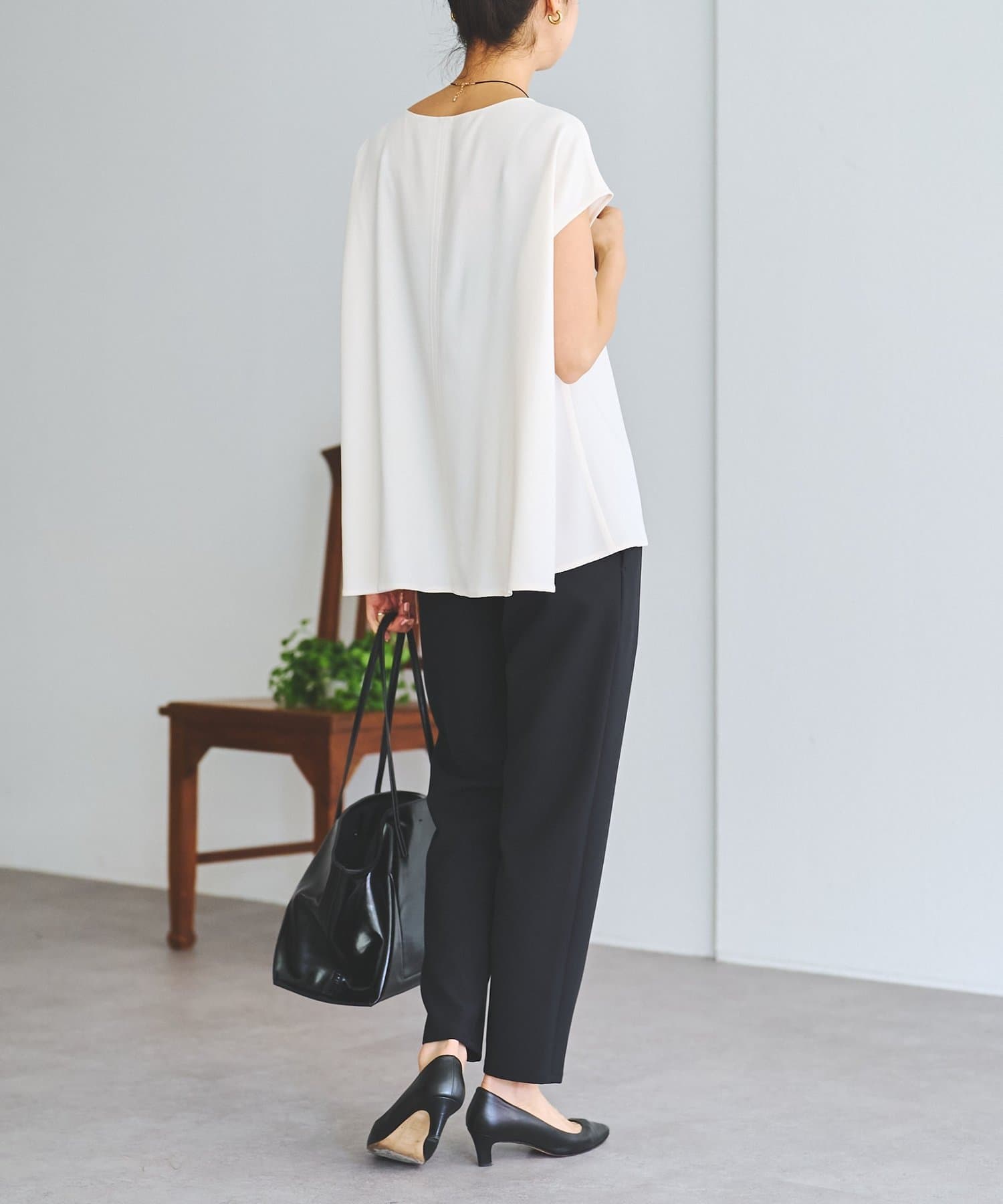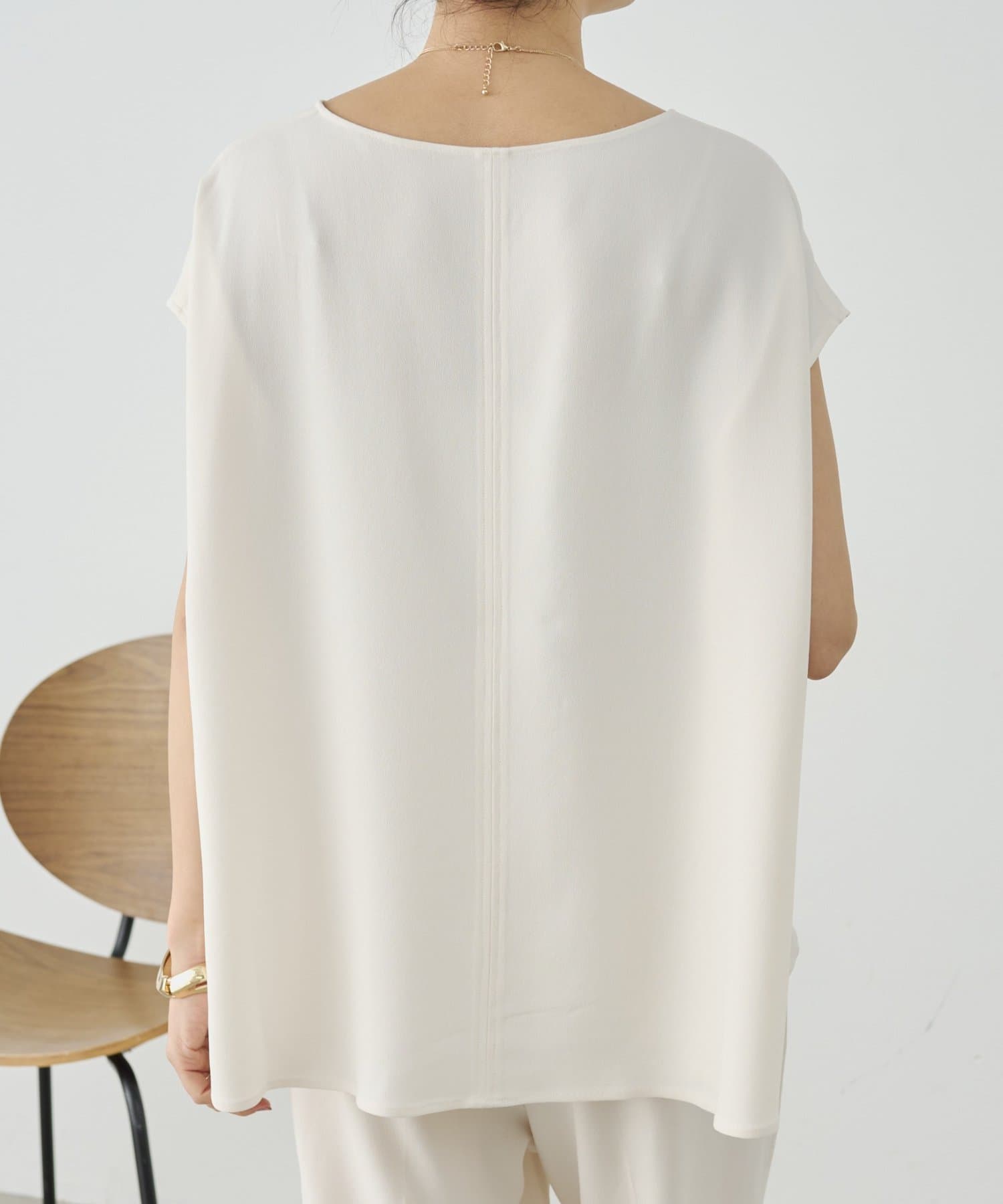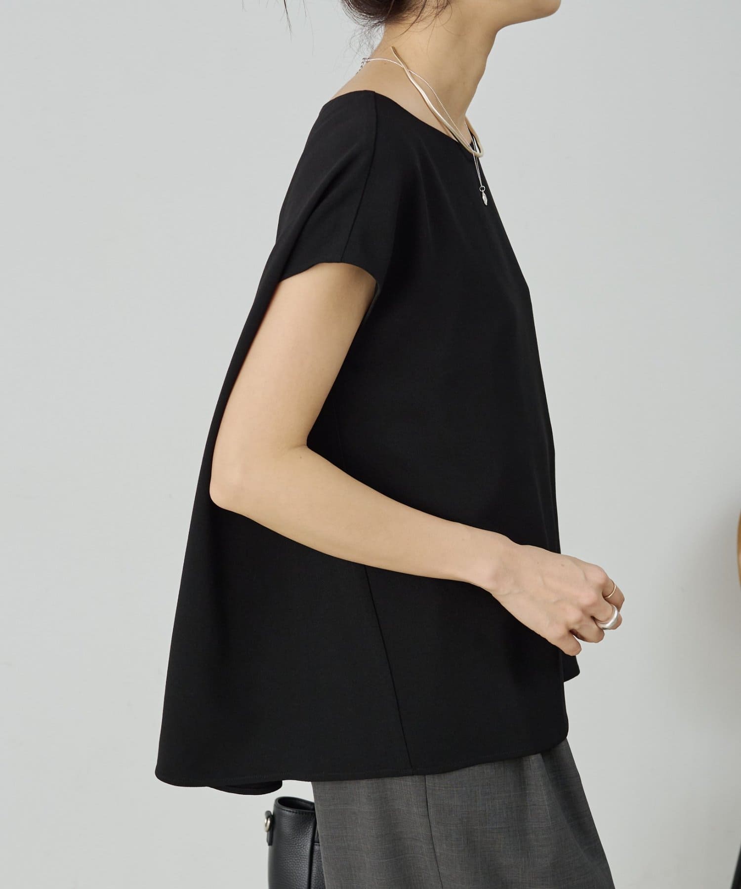 後ろのフレアが上品でシンプルなデザインながら1枚でサマになるアイテムです。