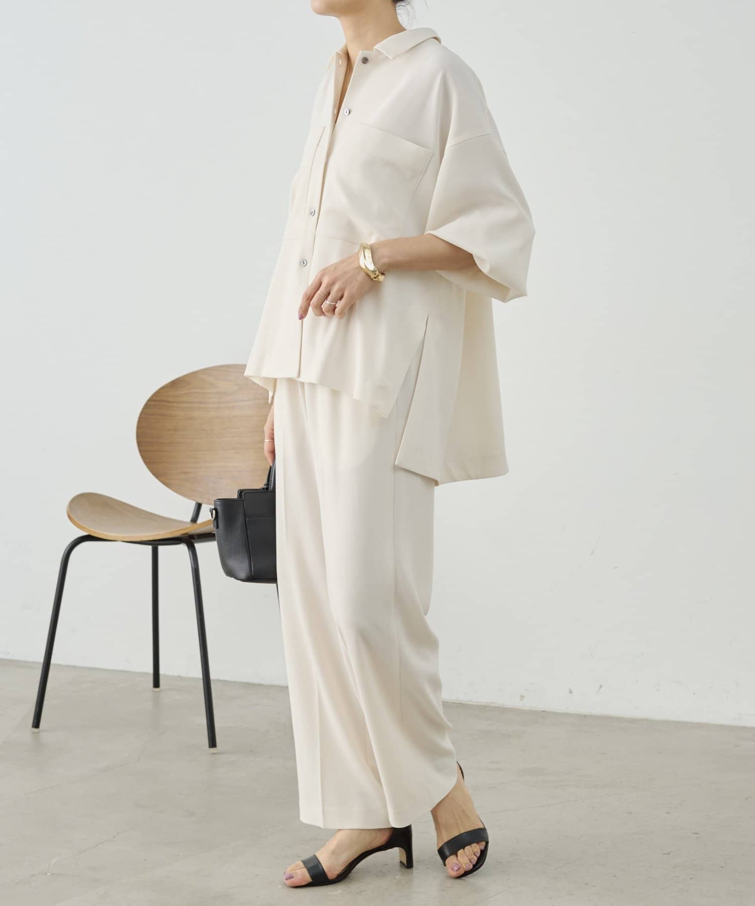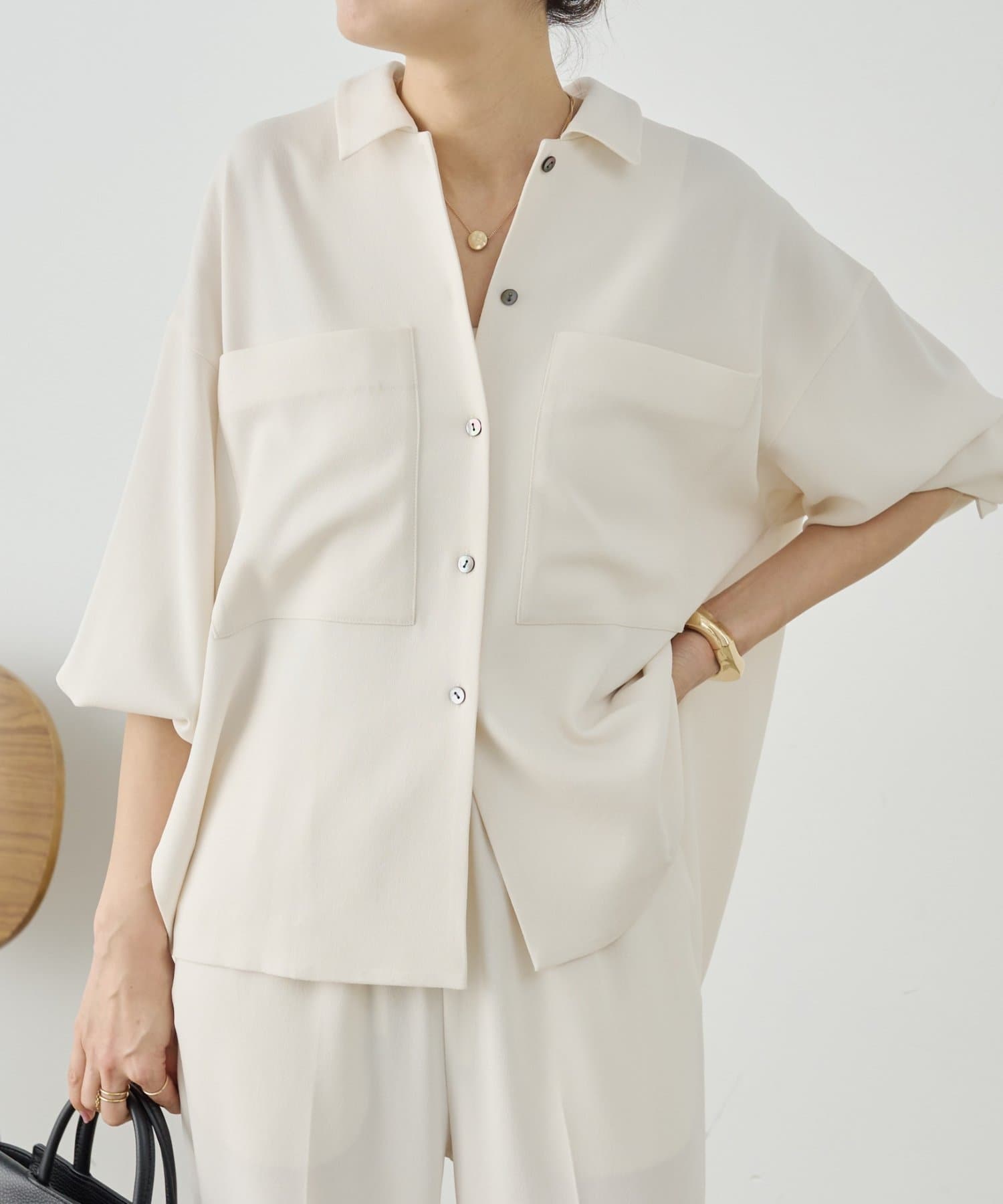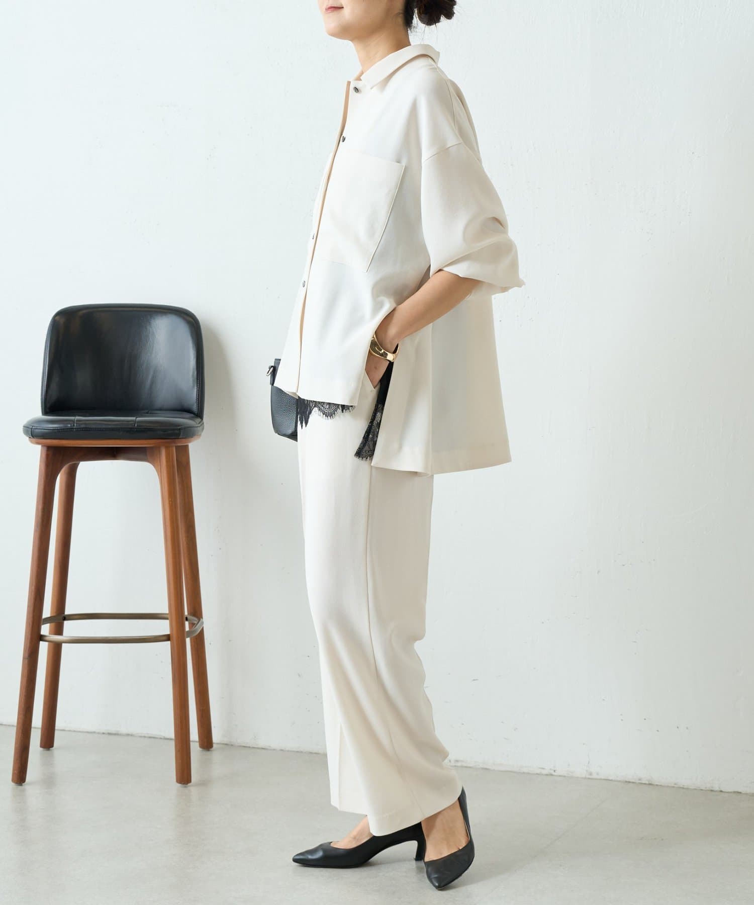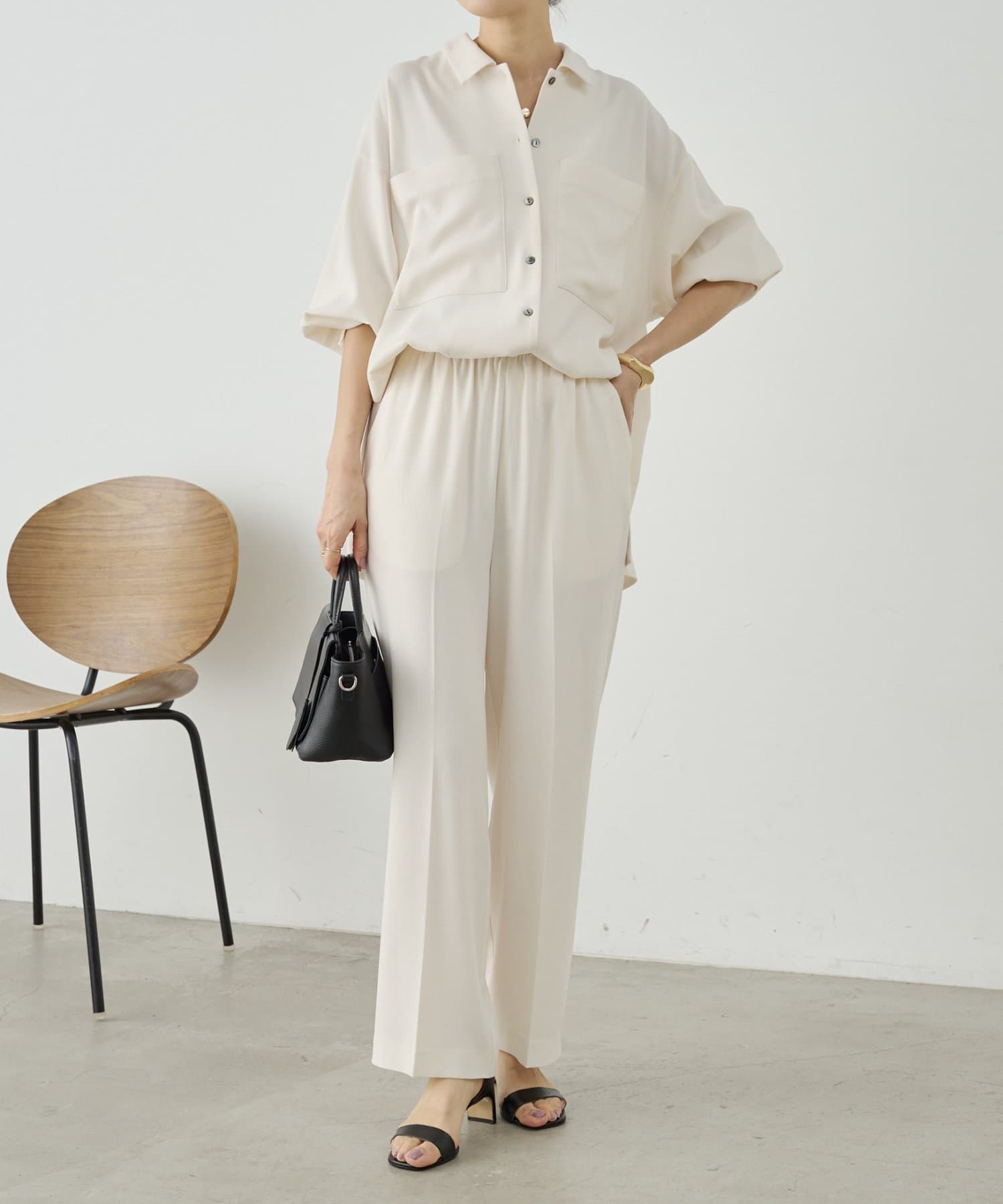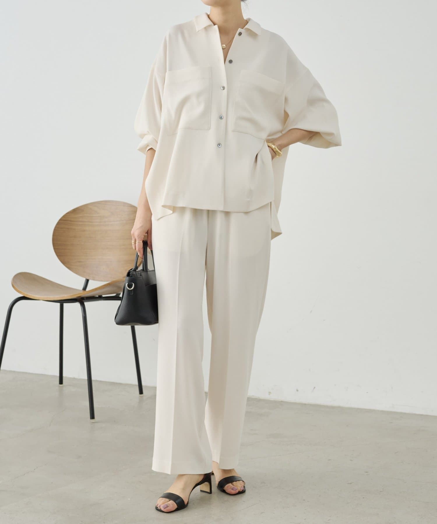 同素材でブラウスとパンツも展開しているので、お好みのアイテムでセットアップとして着られます。