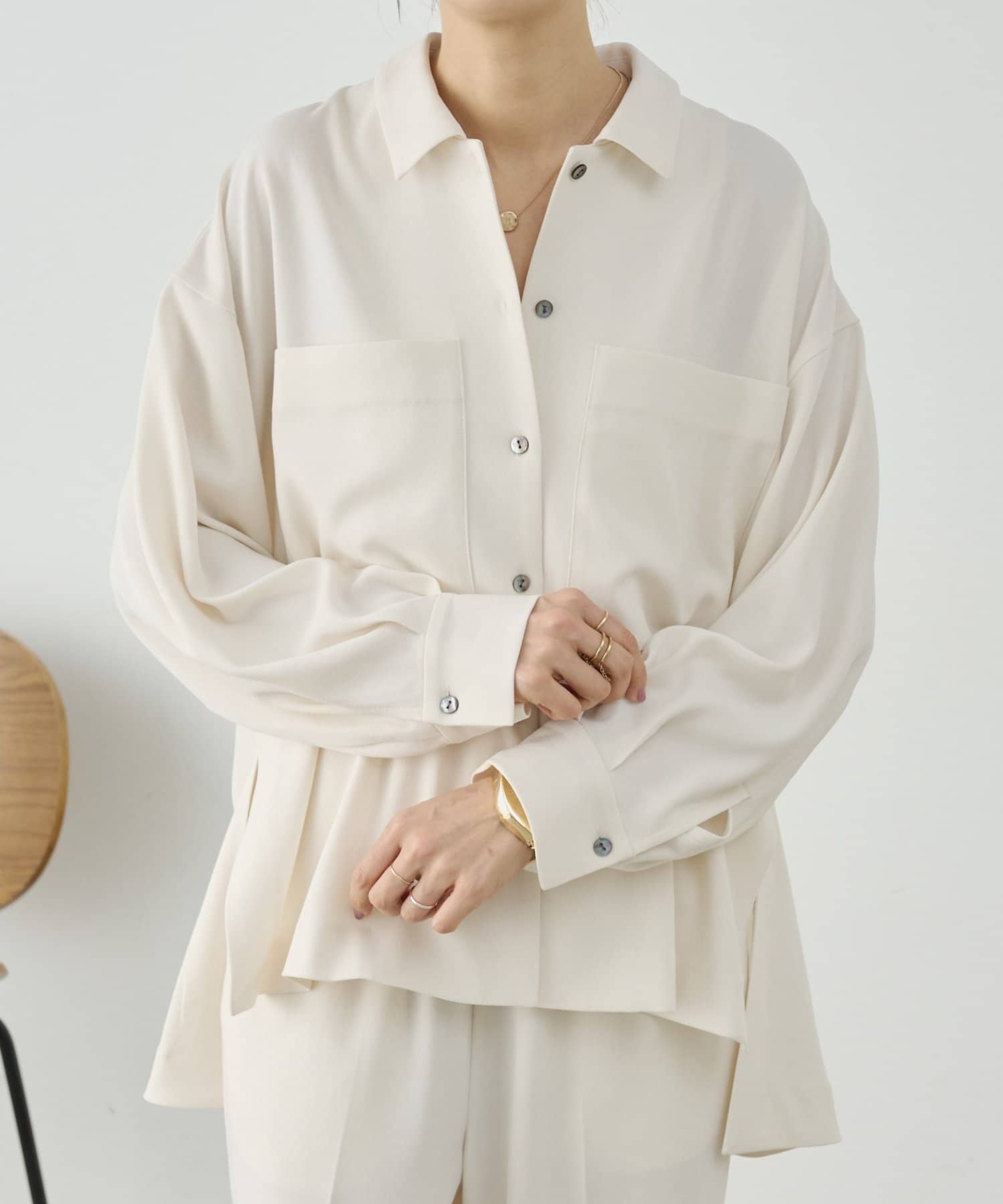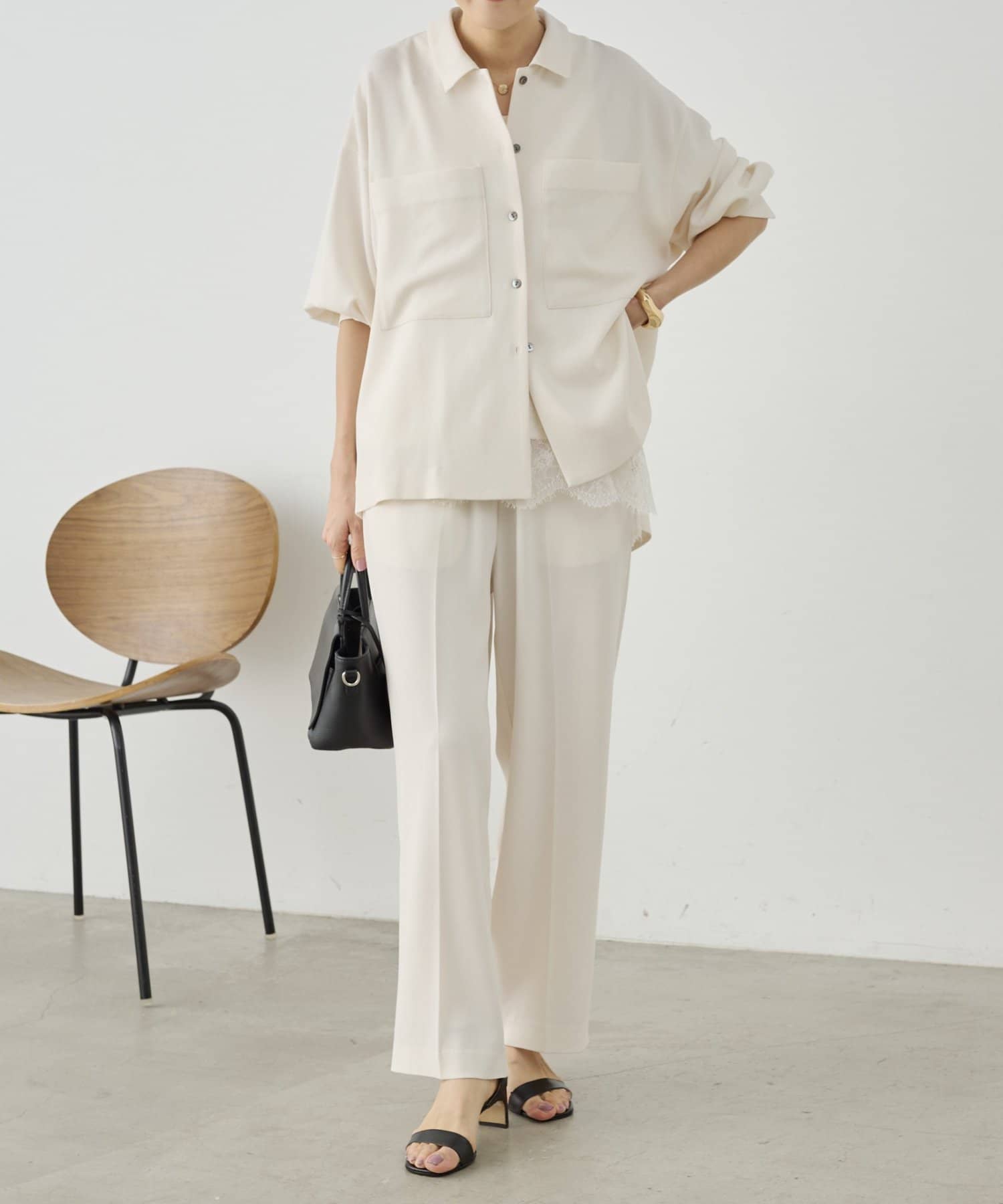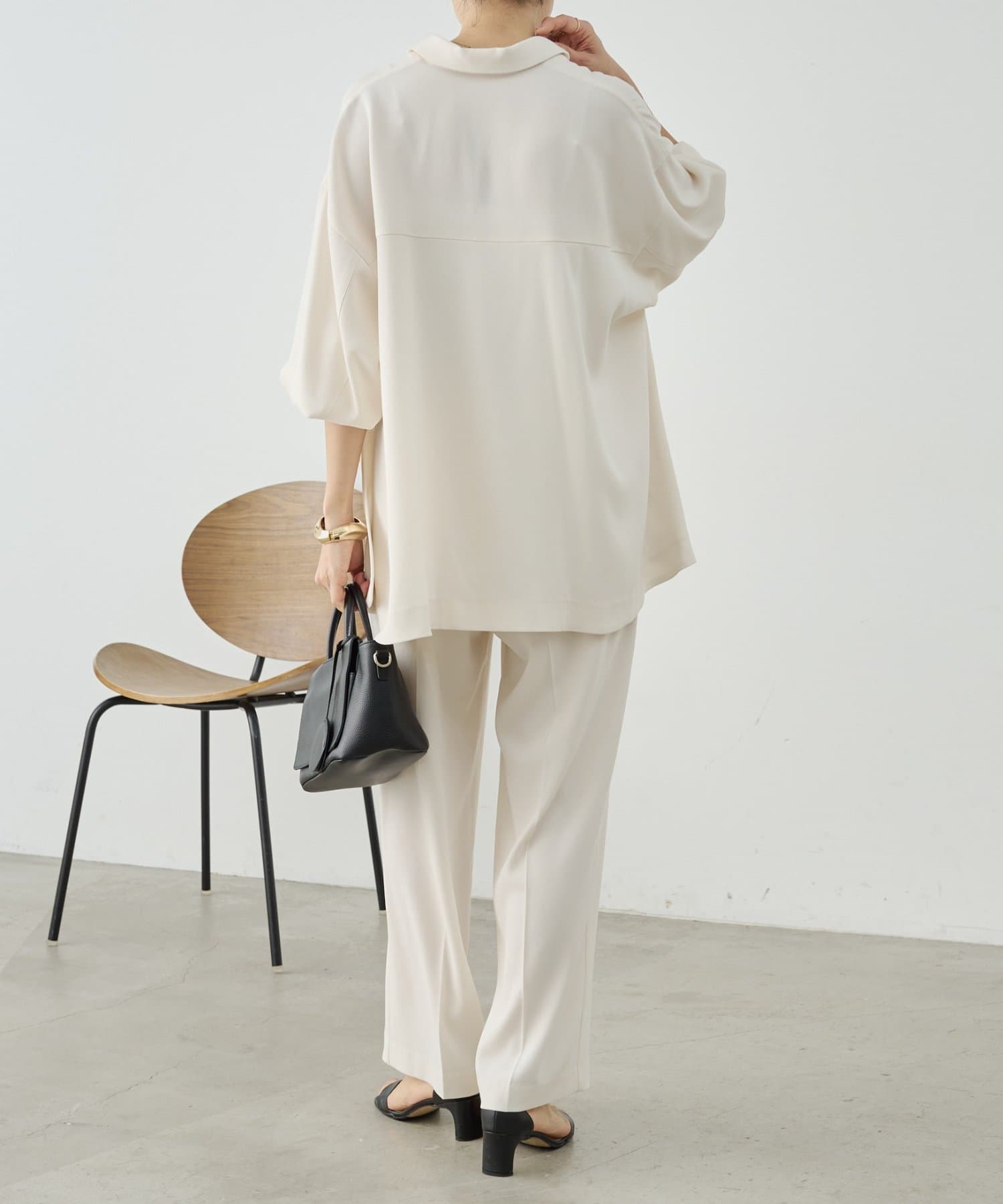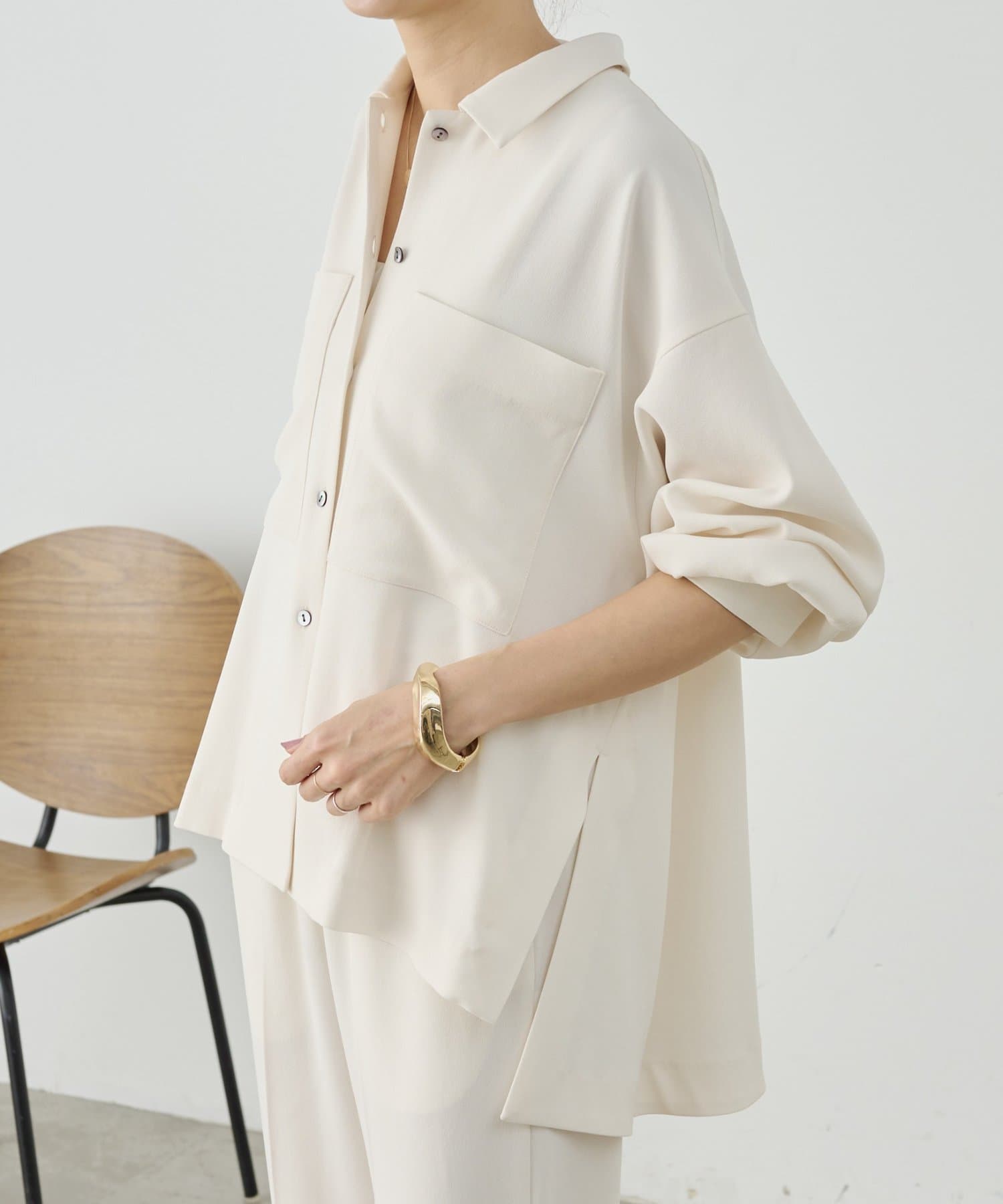 同素材でブラウスとパンツも展開しているので、お好みのアイテムでセットアップとして着られます。