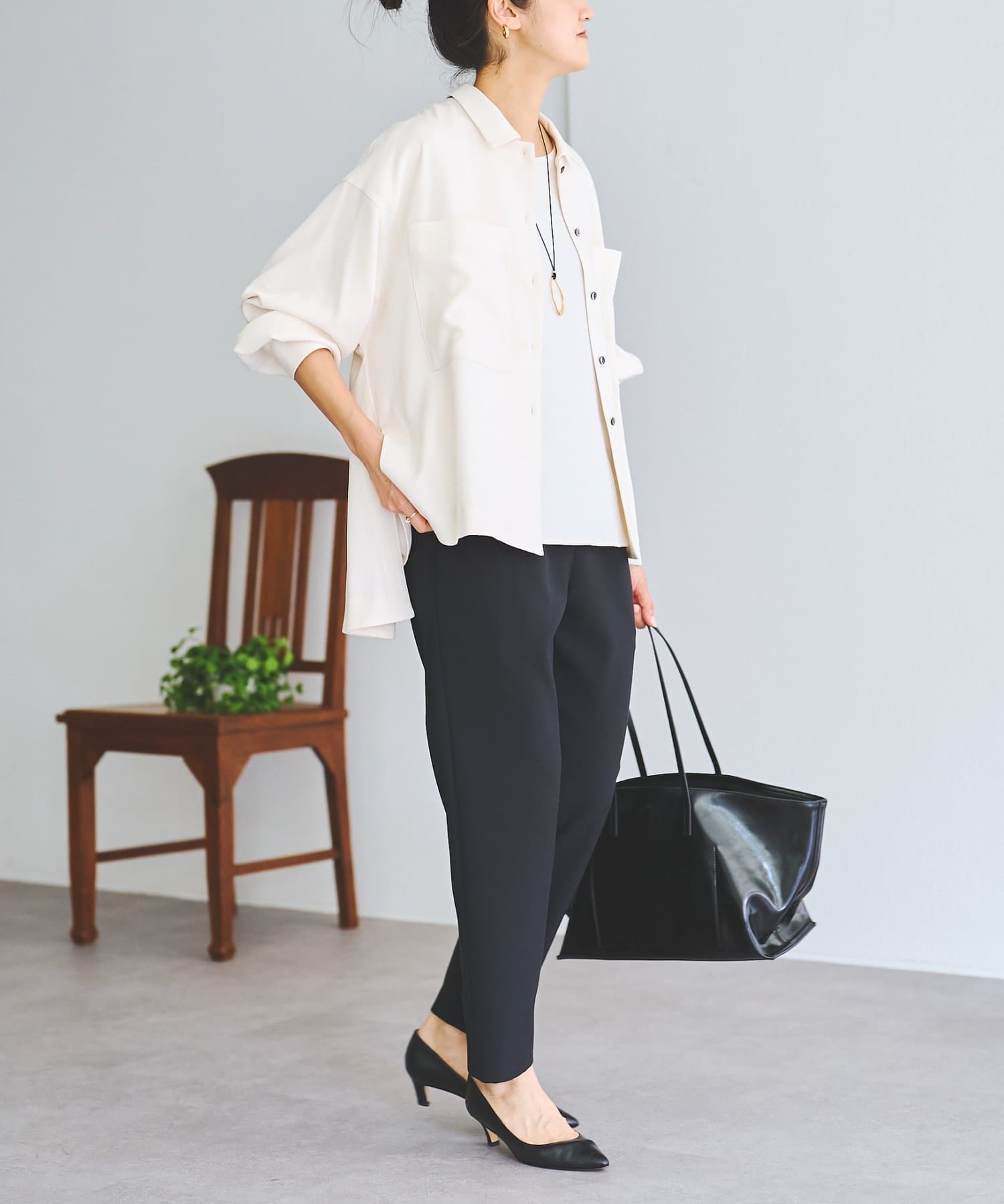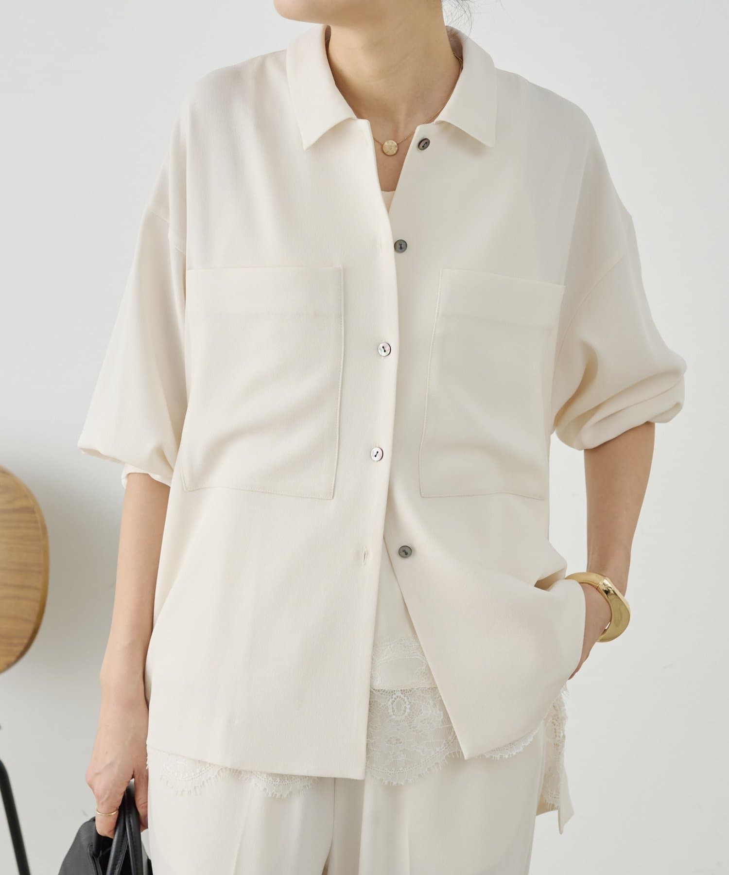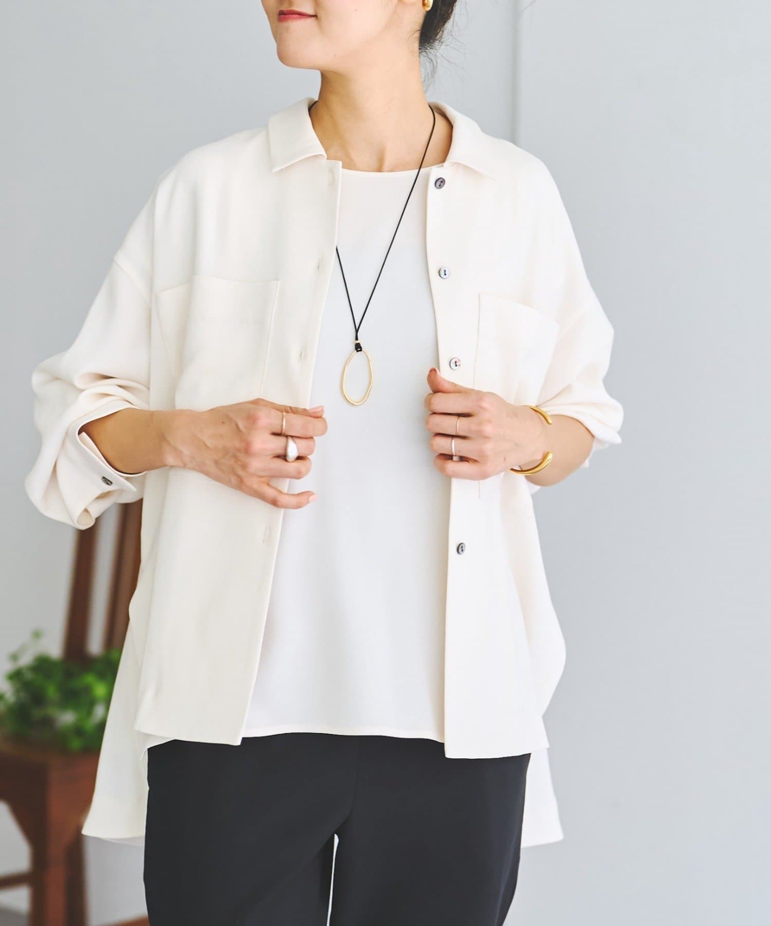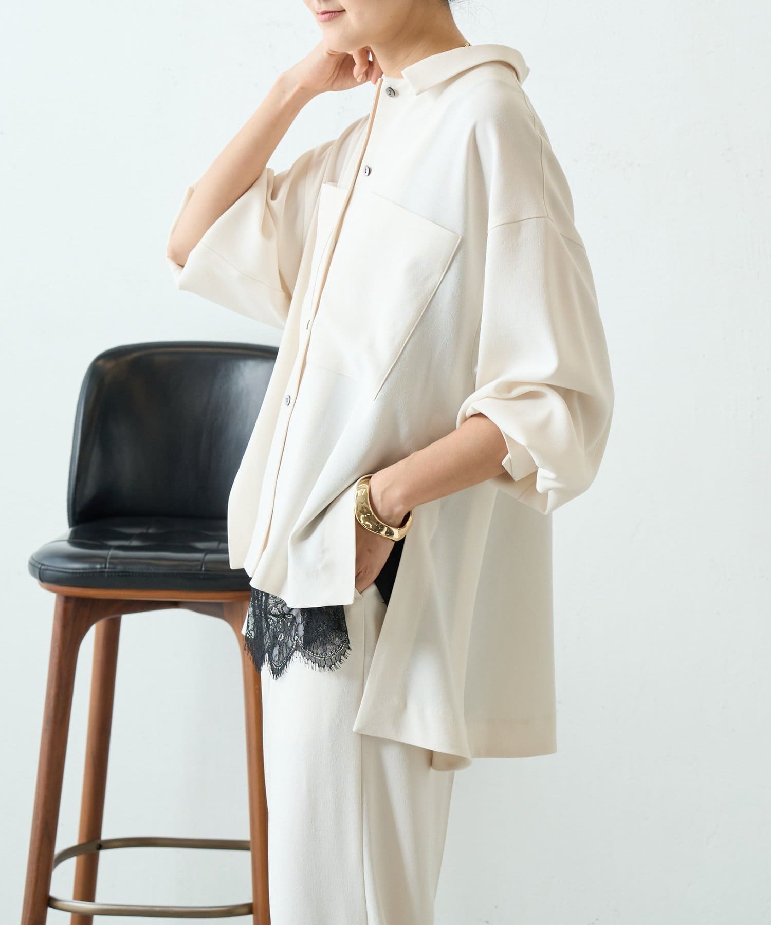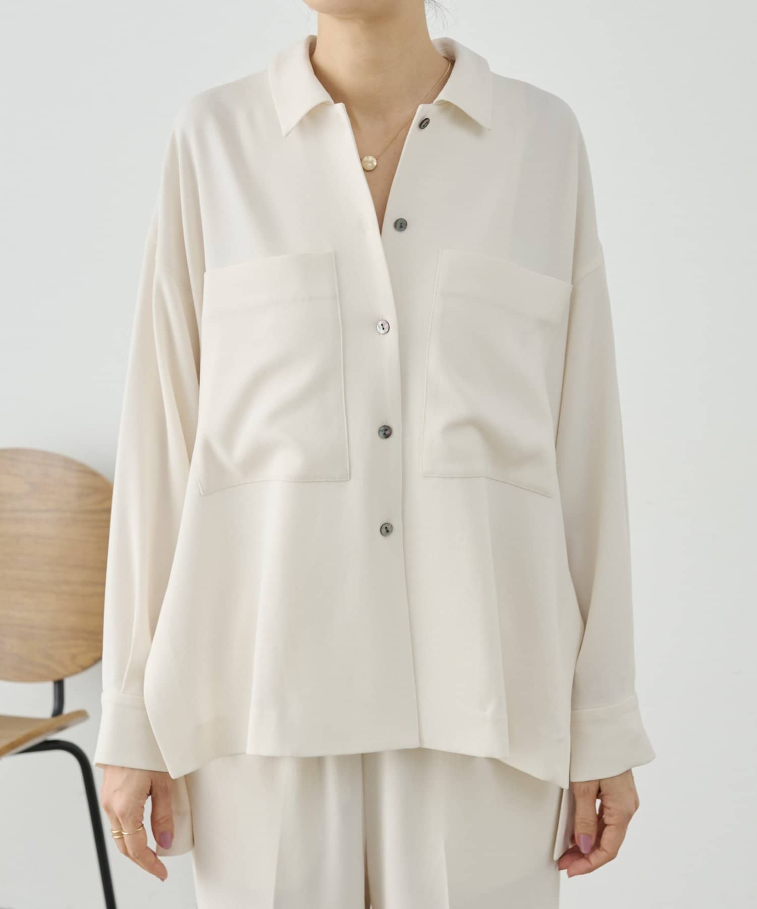 同素材でブラウスとパンツも展開しているので、お好みのアイテムでセットアップとして着られます。