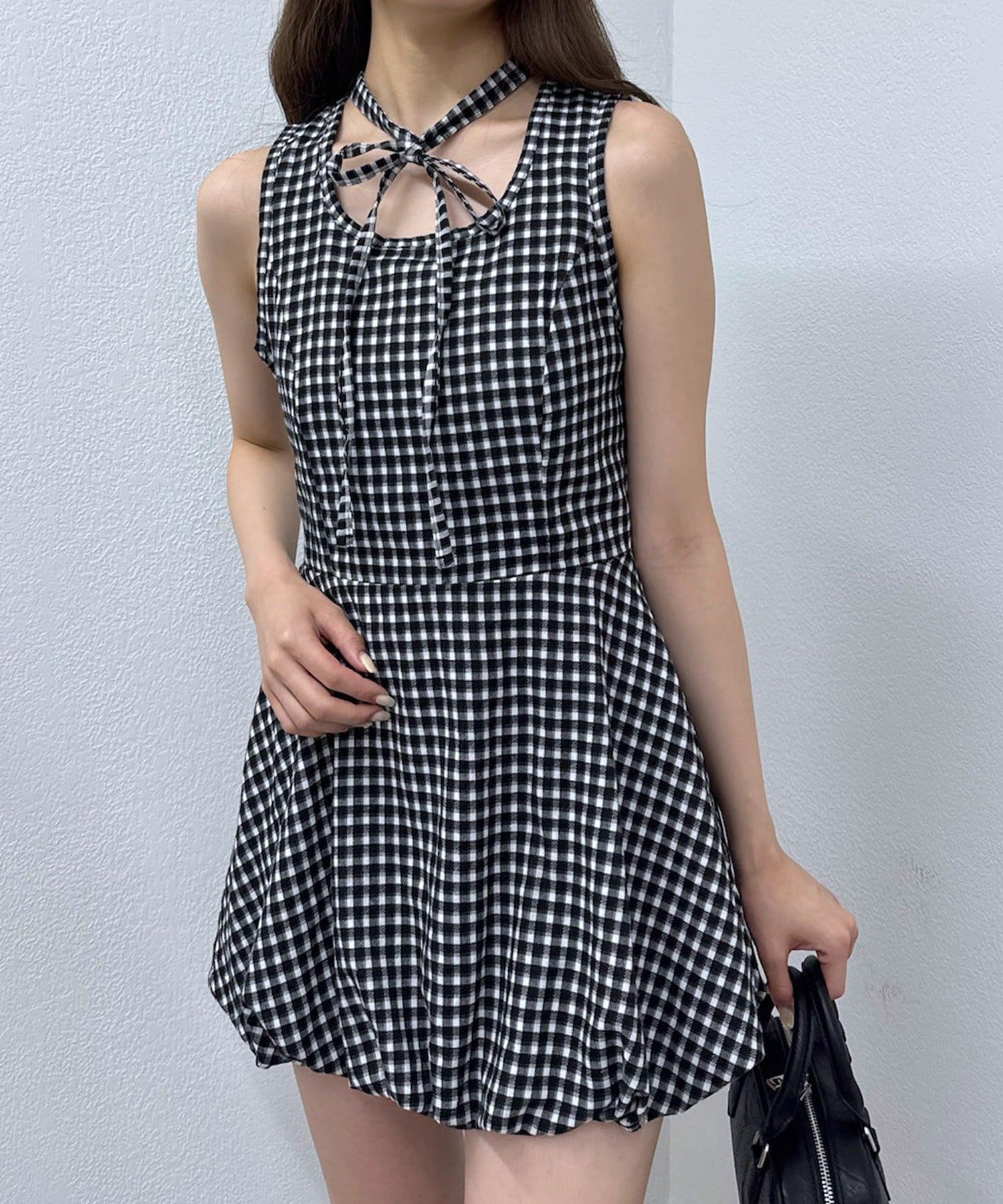 夏らしさ◎キュートなチェックチョーカーミニワンピが登場♡