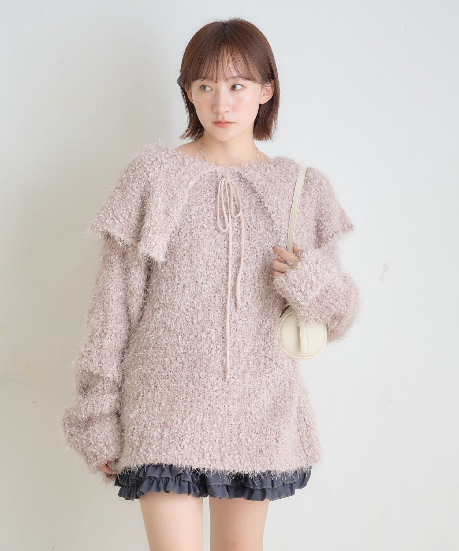 ふわふわ素材で女の子らしく♡シャギー素材のニットが登場。