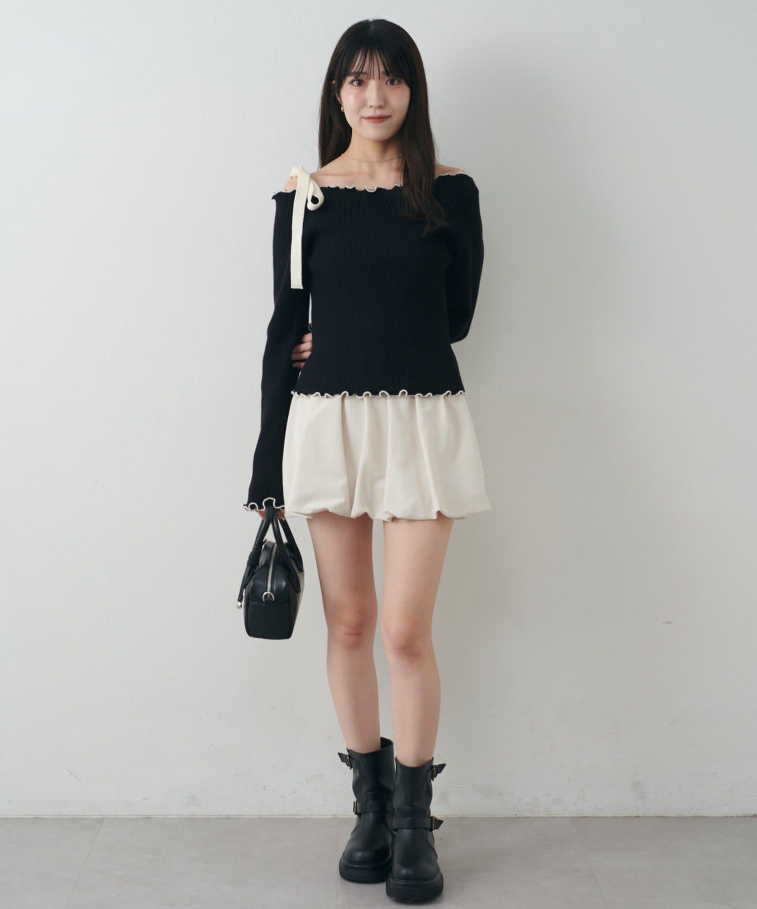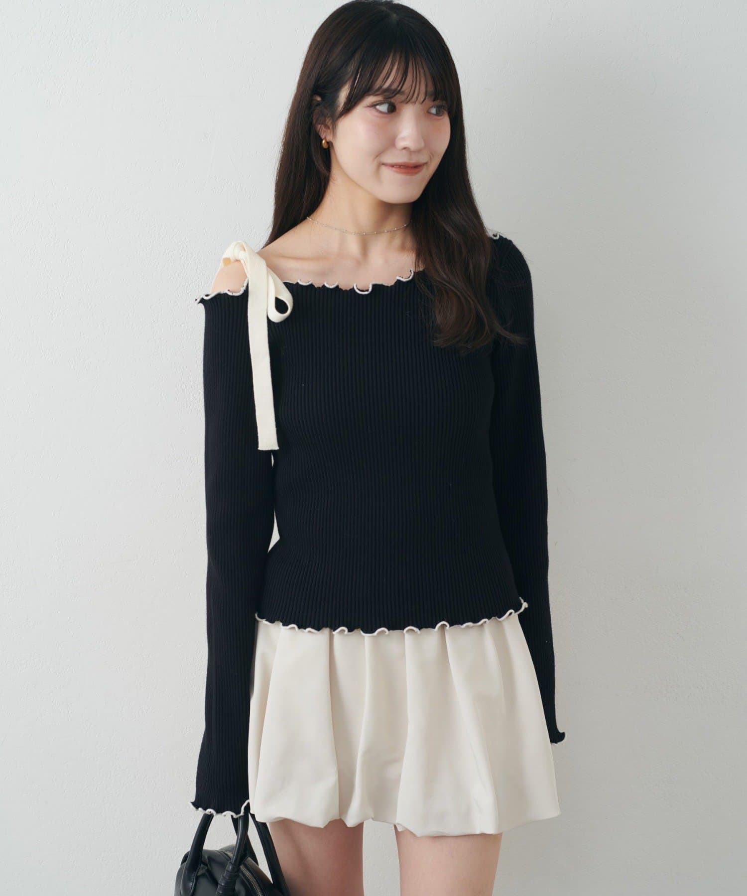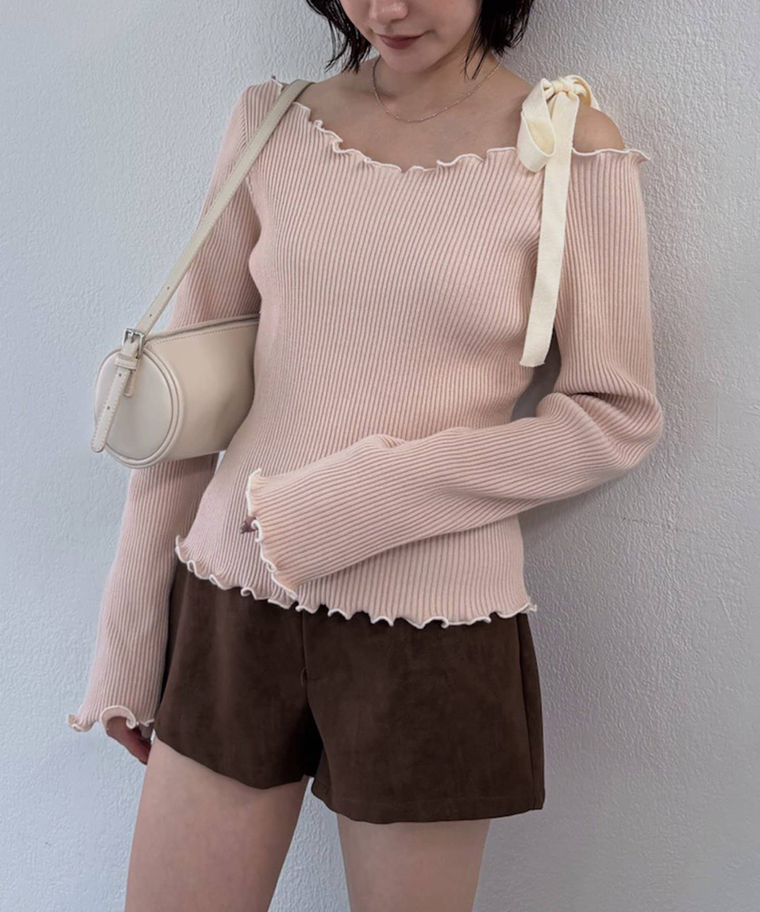 ・肩紐のリボンで上品な肌見せが叶うニット♡