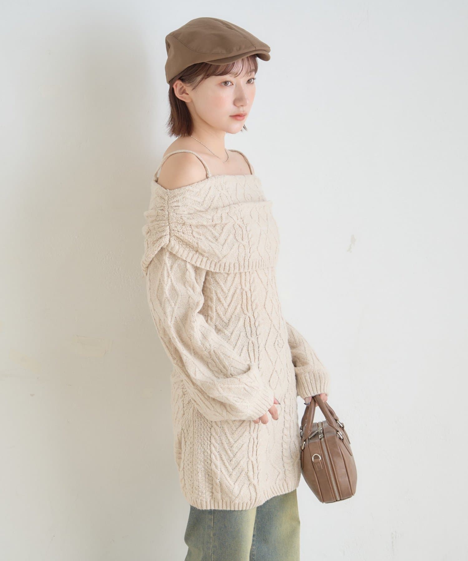 ケーブル編みがかわいい♡主役オフショルニットワンピが登場