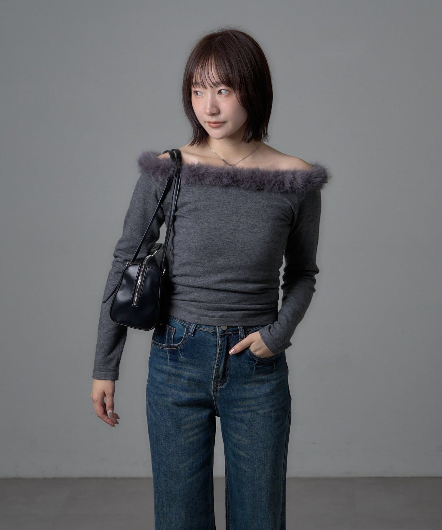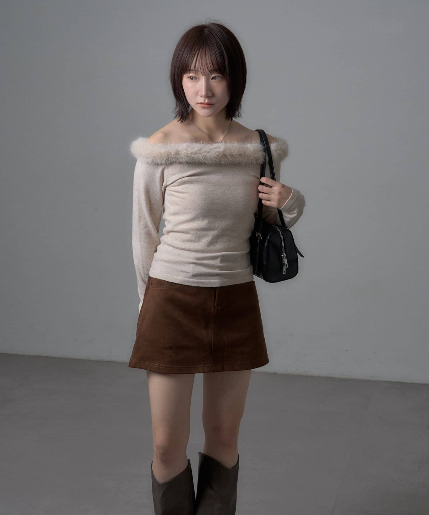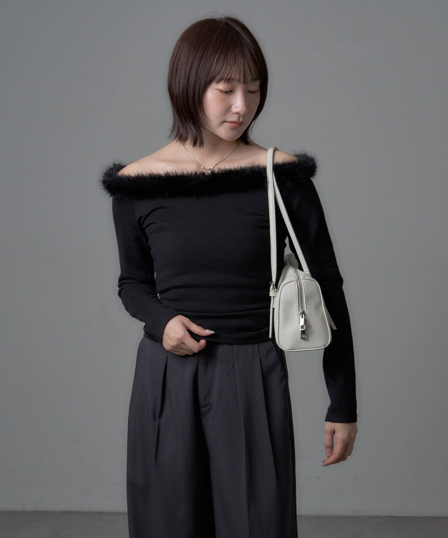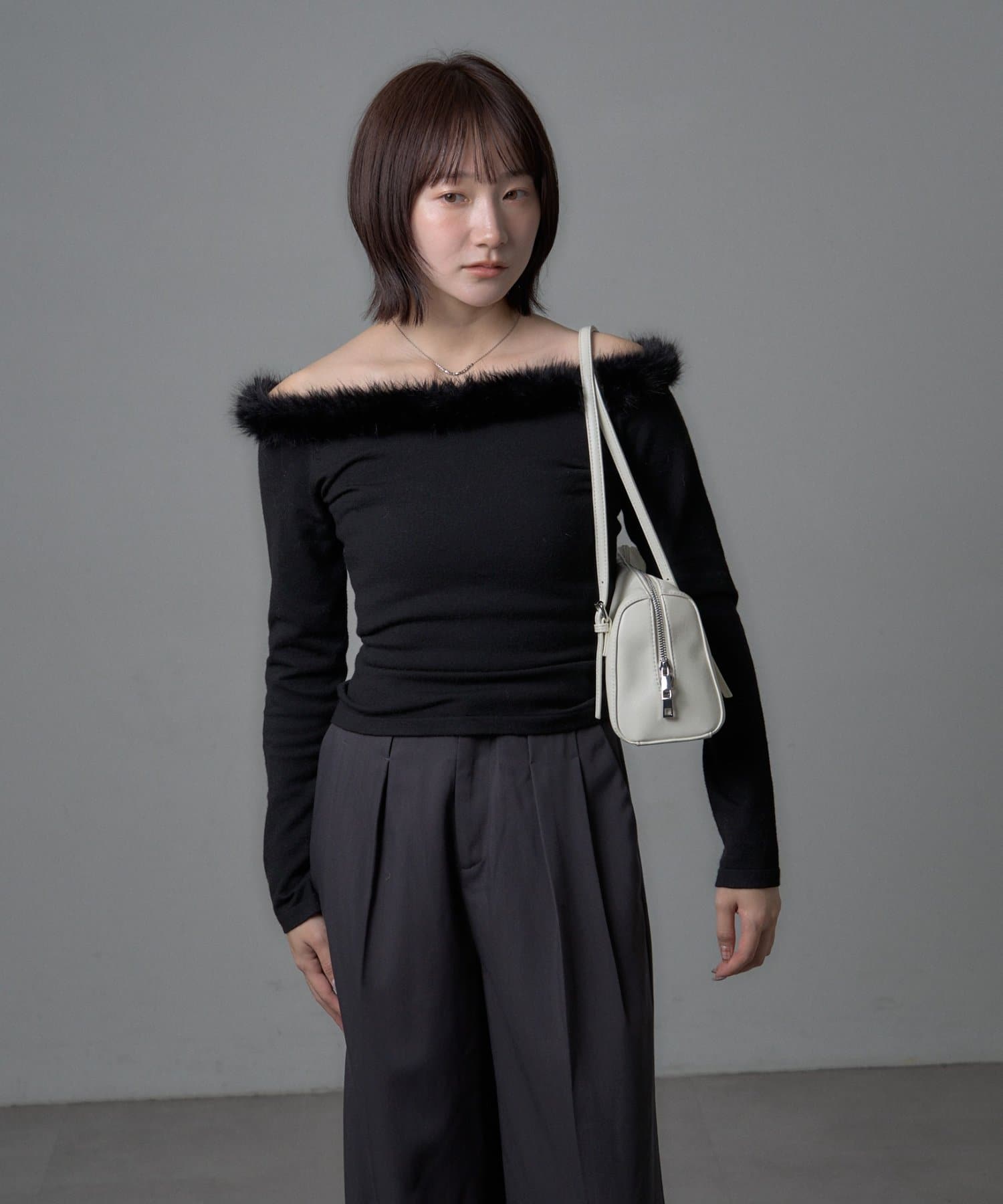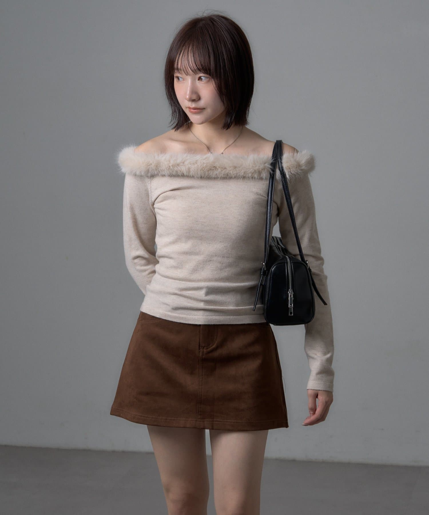 目を引くファーがかわいい♡オフショルニットが登場♡