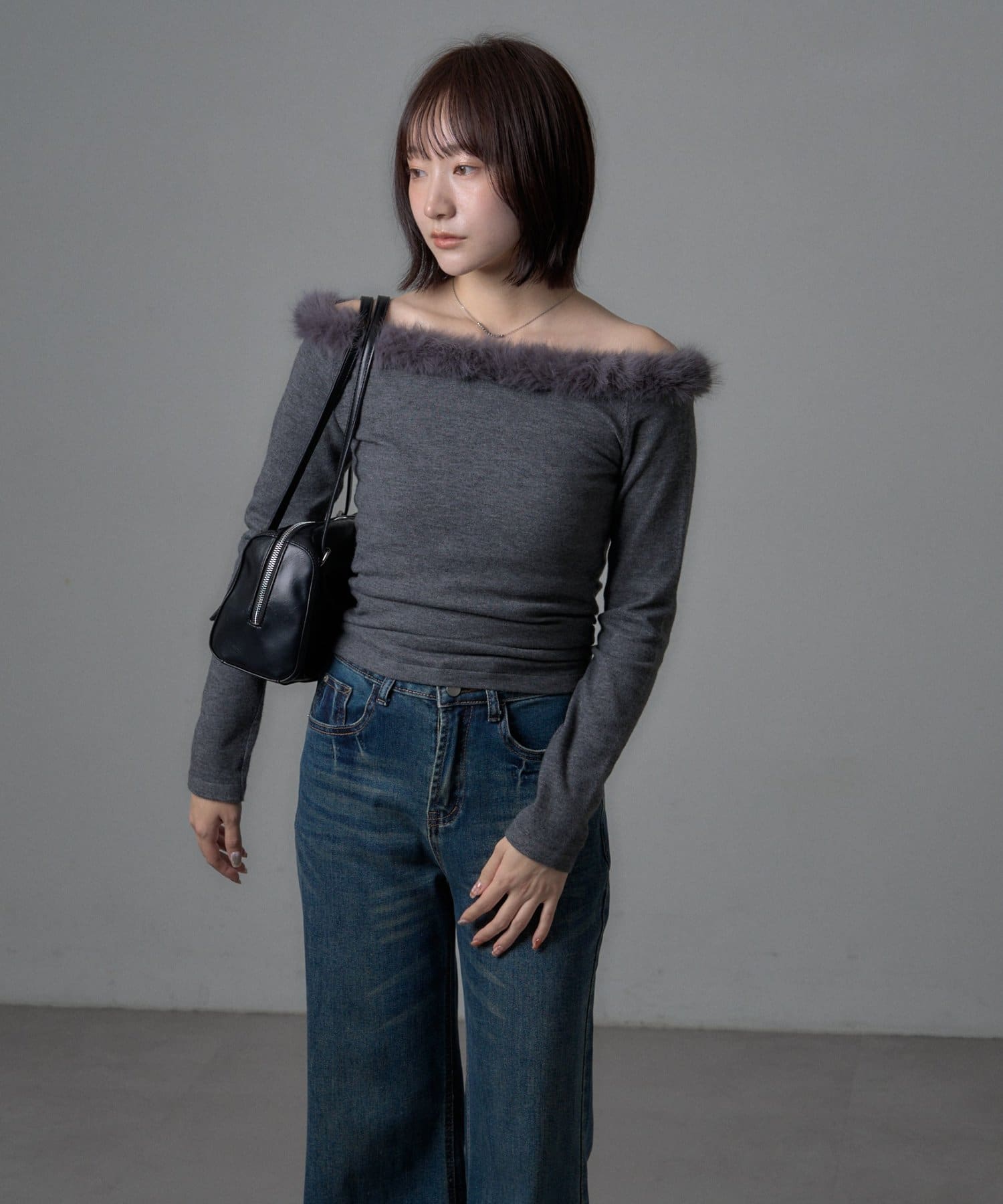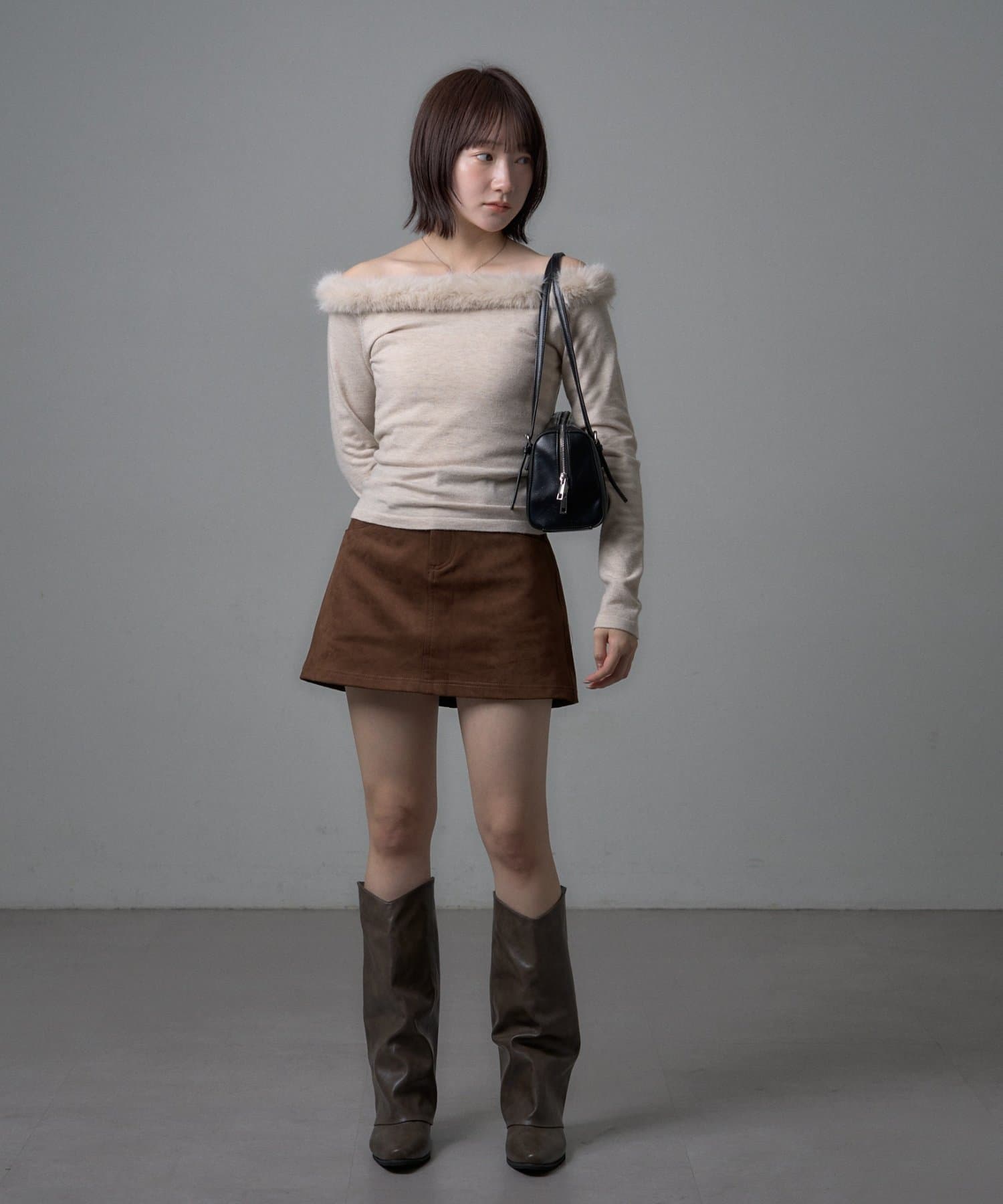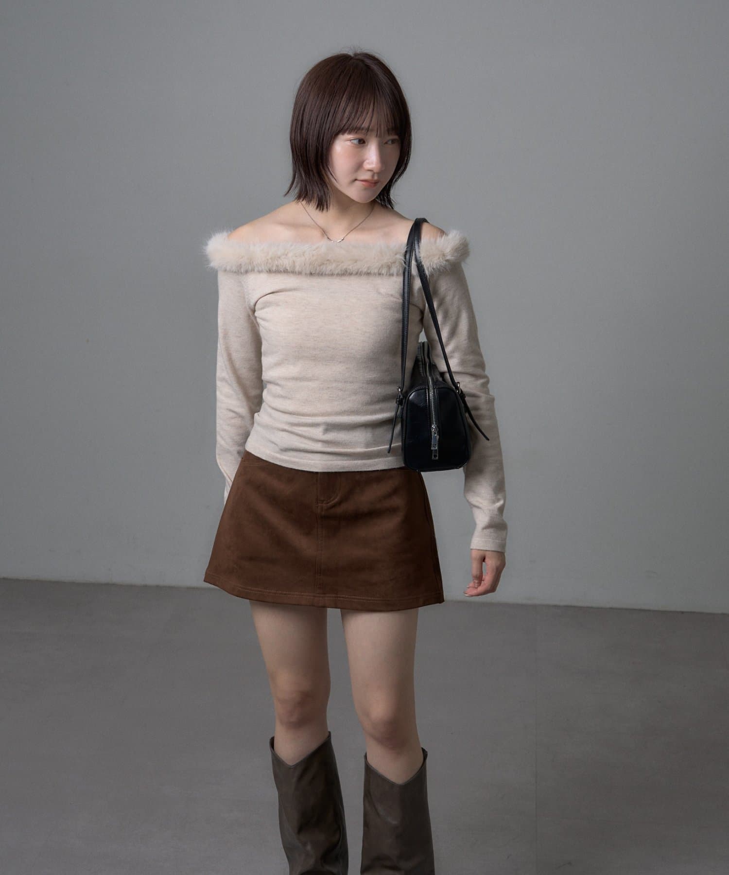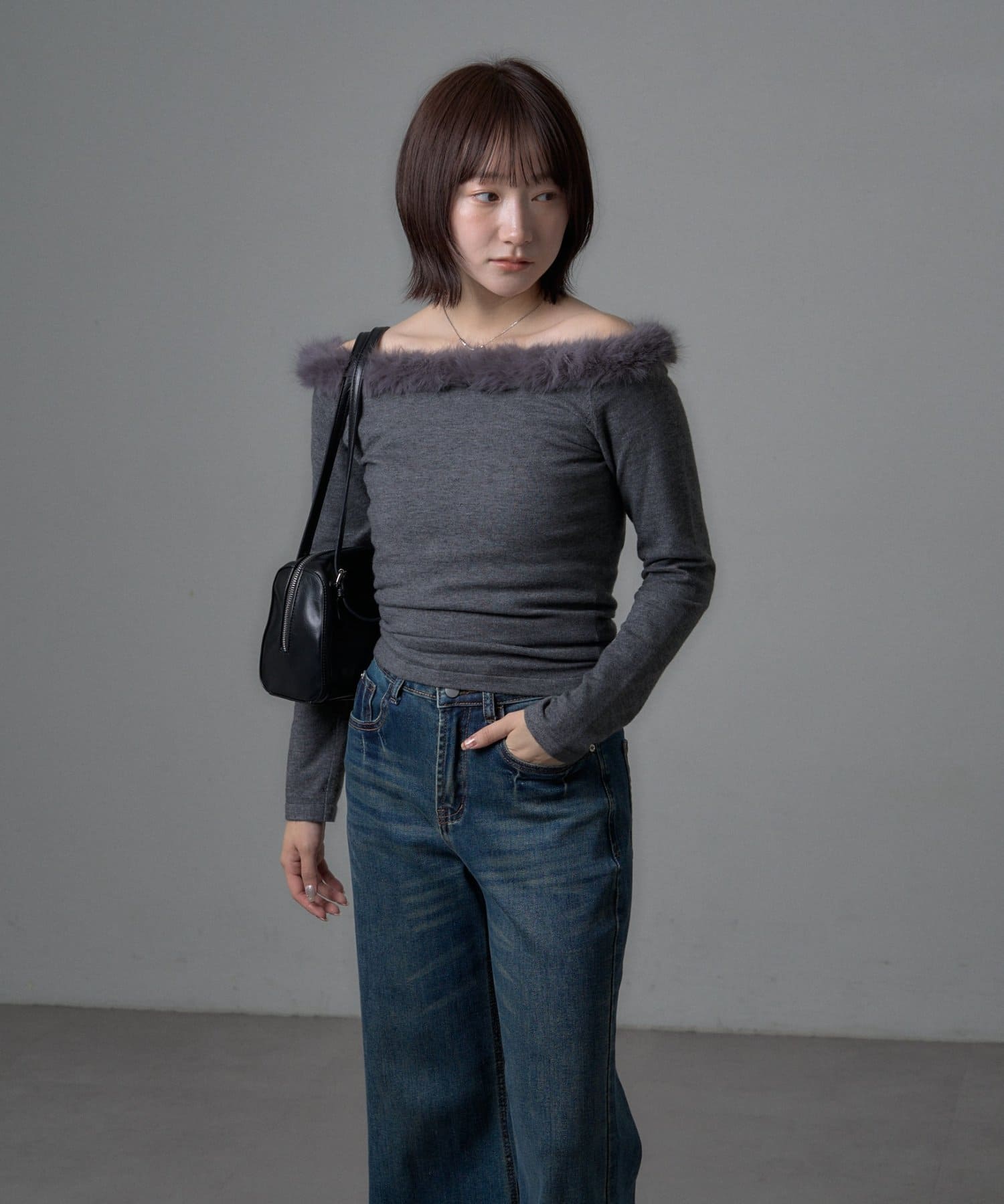 目を引くファーがかわいい♡オフショルニットが登場♡