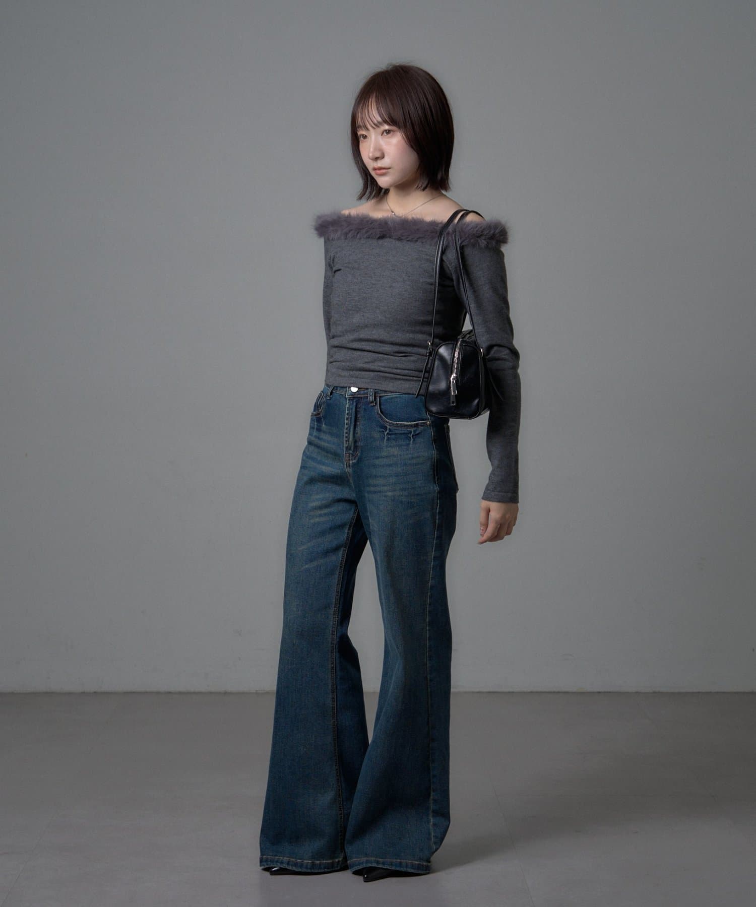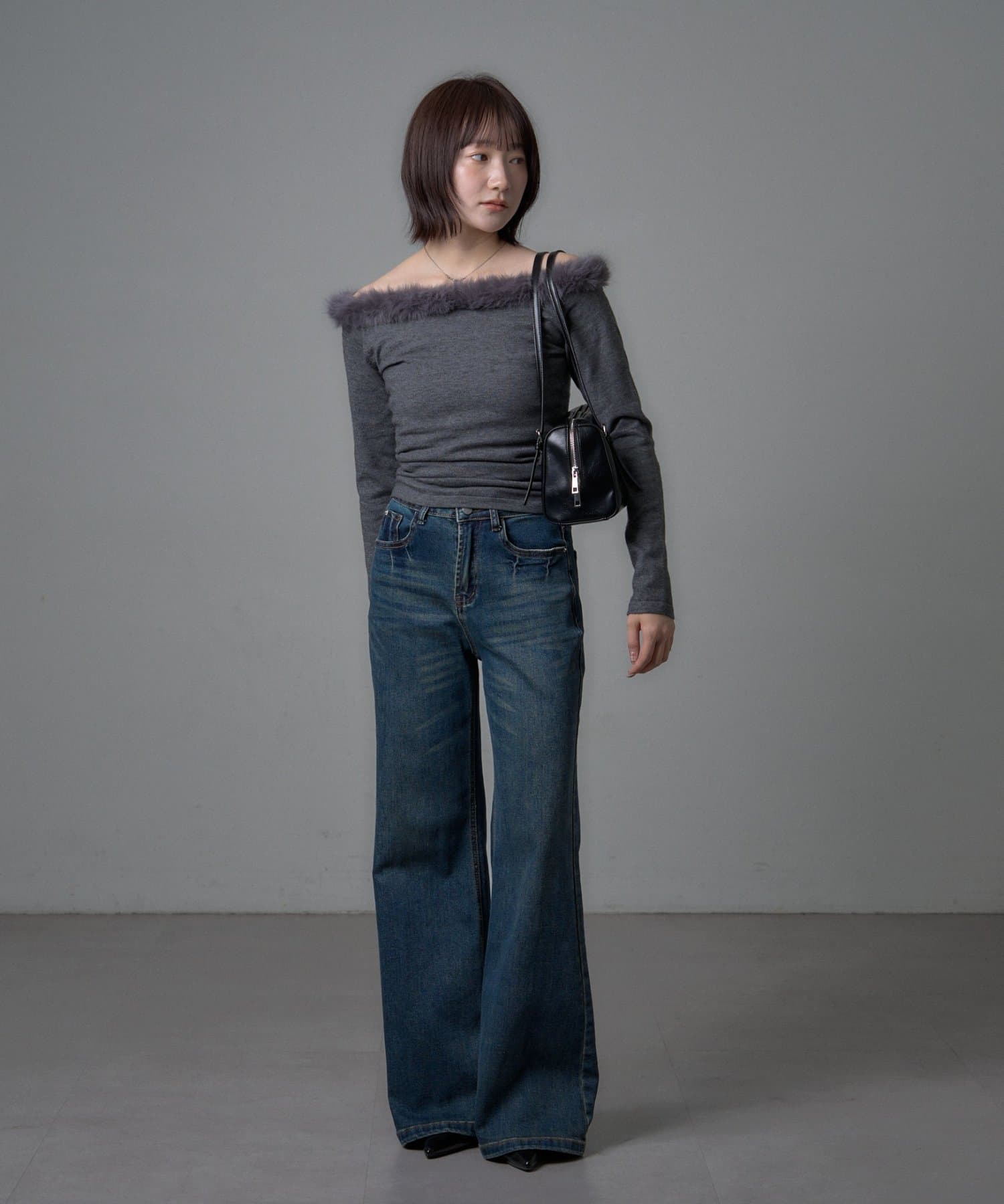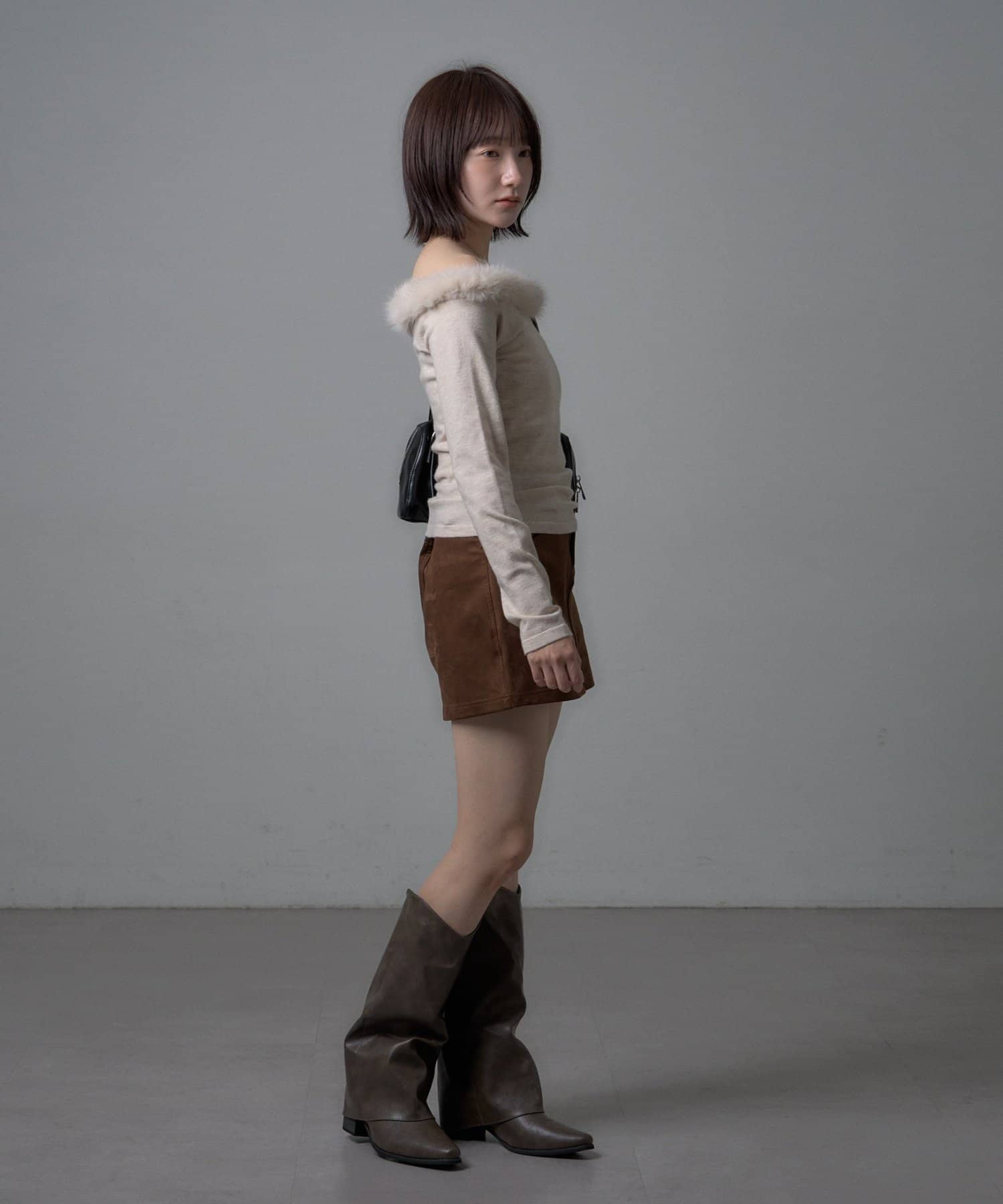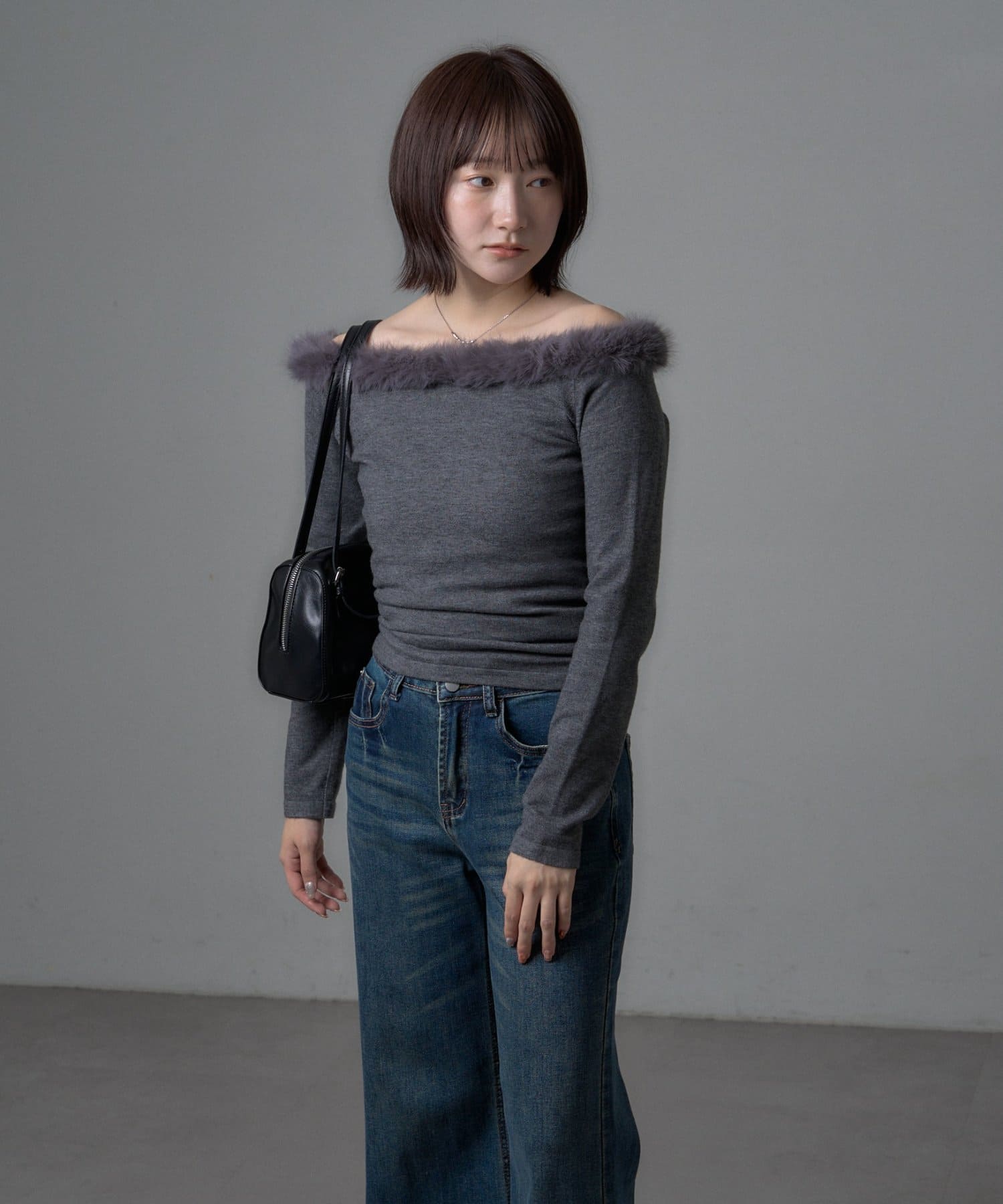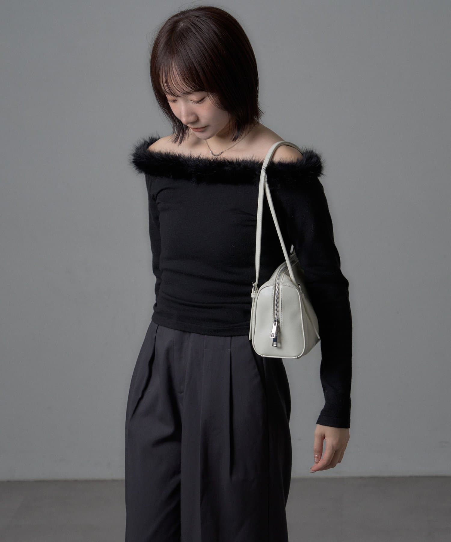 目を引くファーがかわいい♡オフショルニットが登場♡