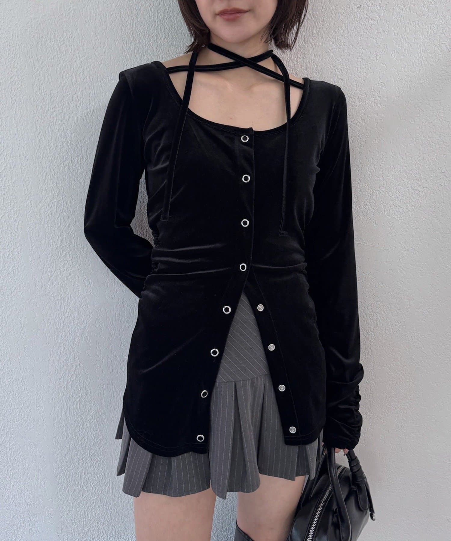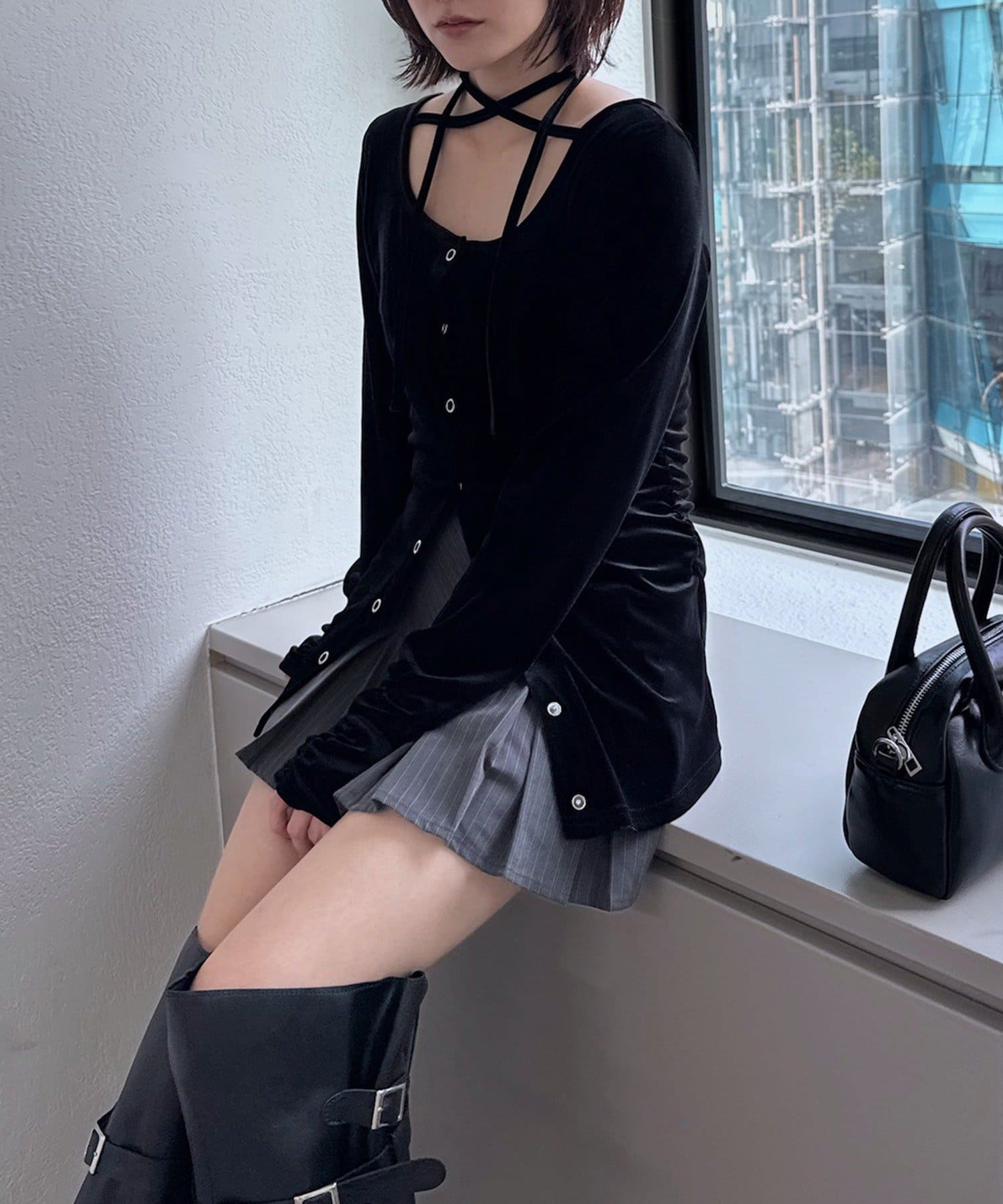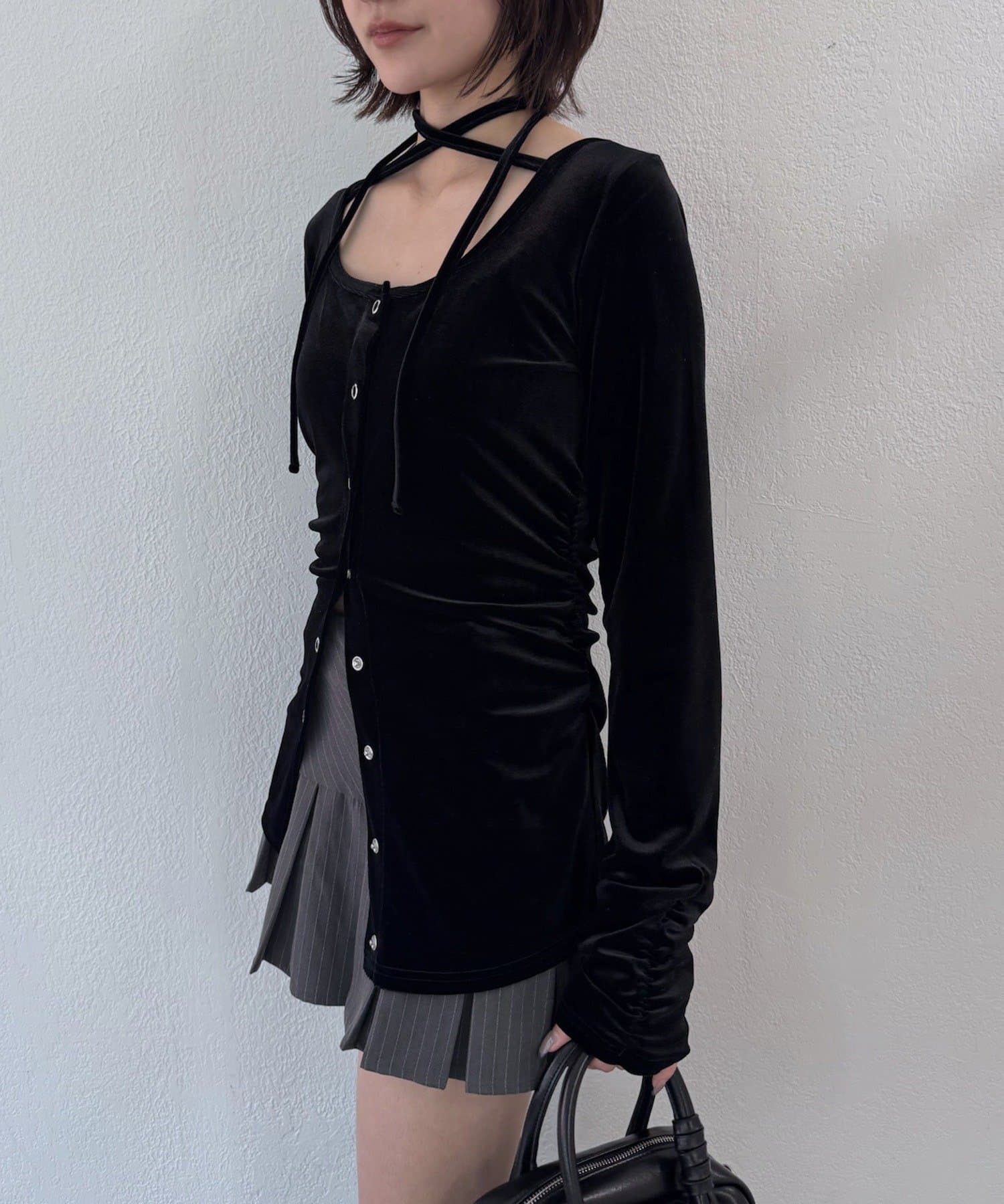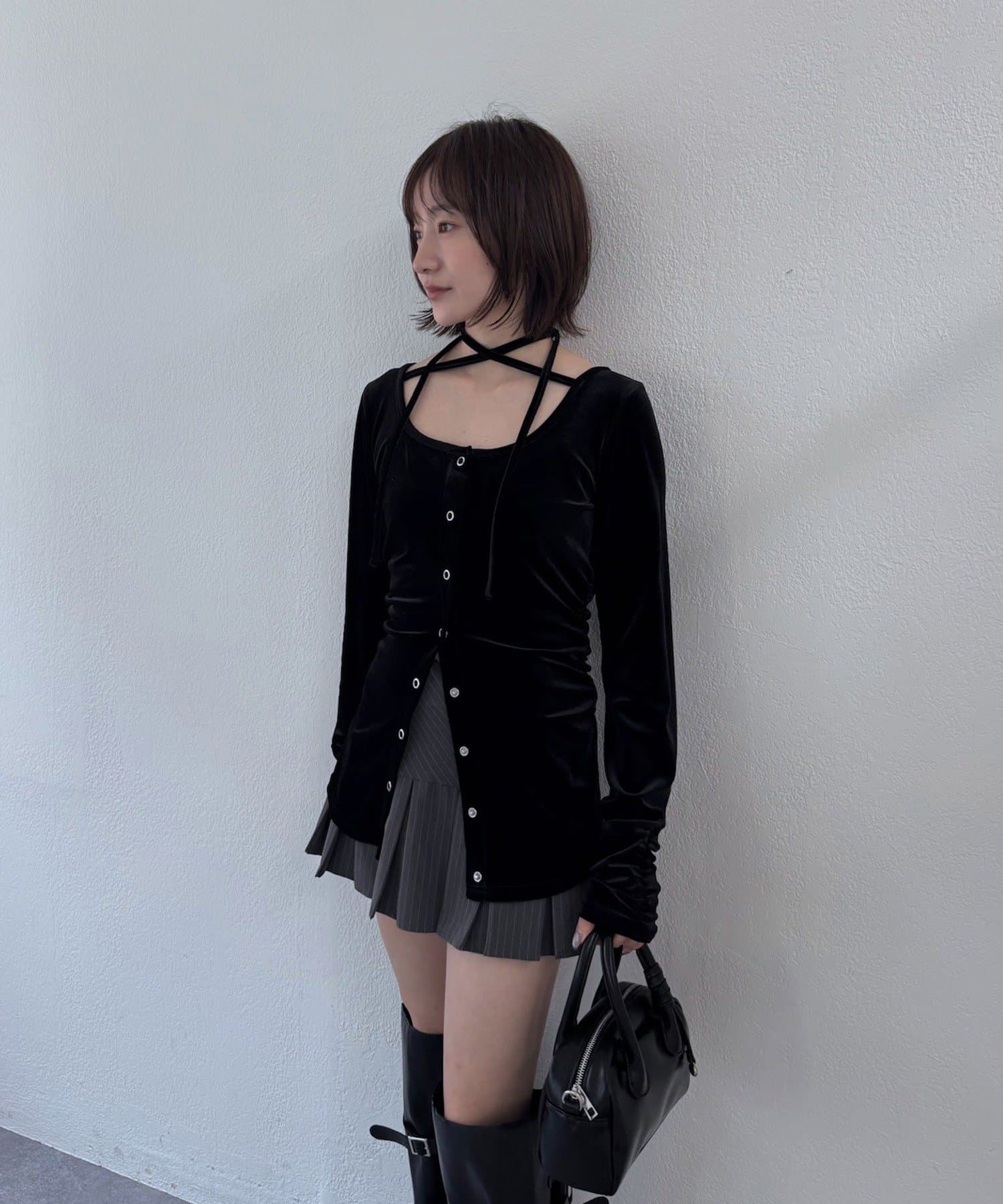 女性らしさ溢れる♡ベロアチョーカーボタンカーディガンが登場♡
