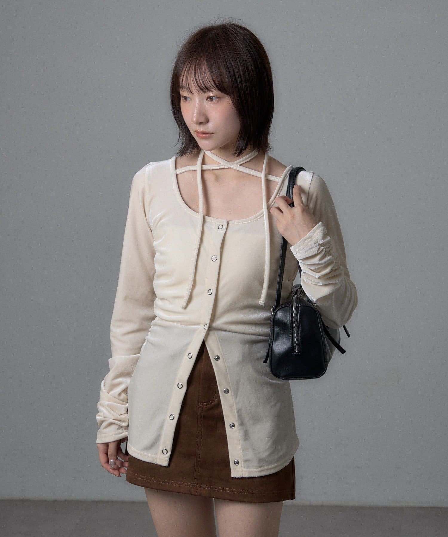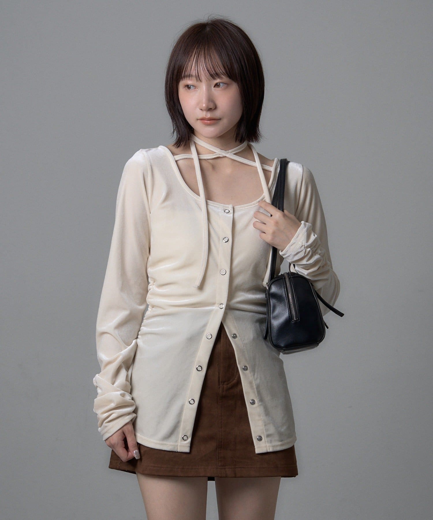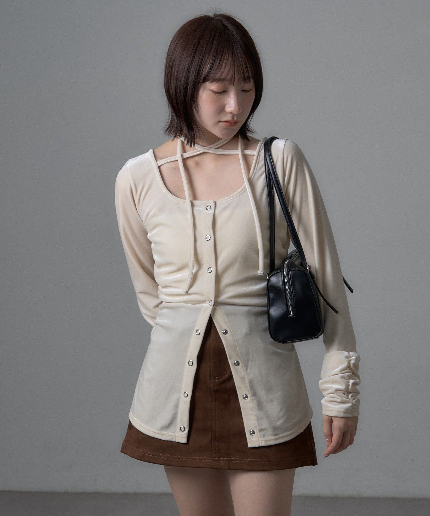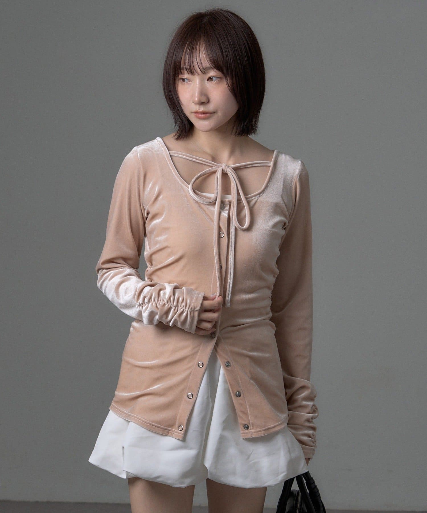 女性らしさ溢れる♡ベロアチョーカーボタンカーディガンが登場♡