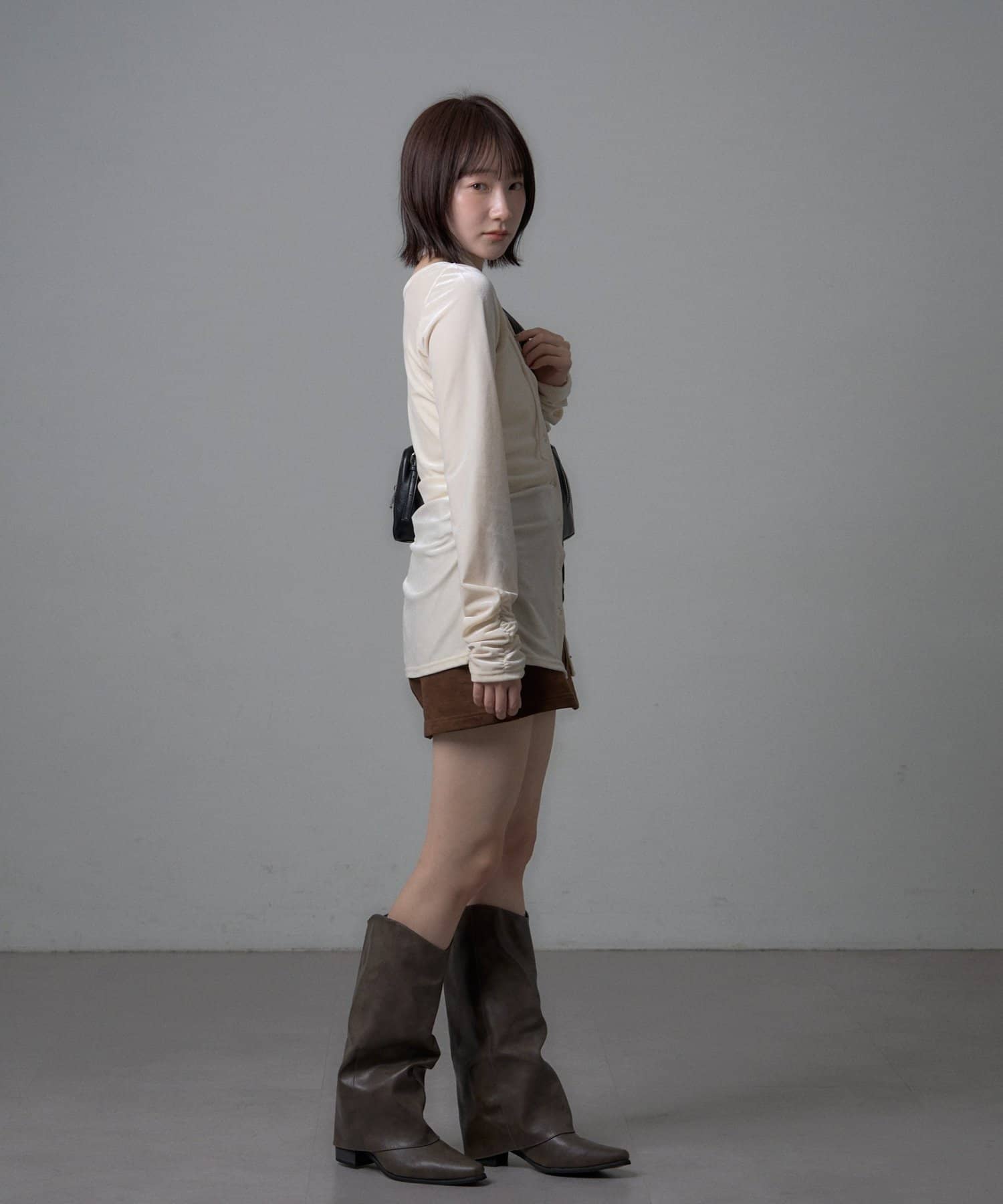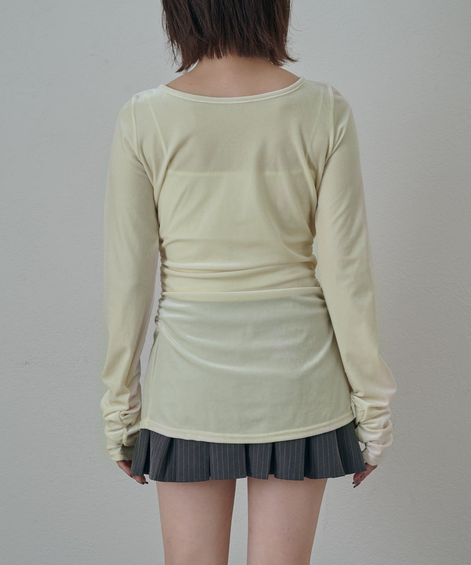 ・袖口と脇にギャザーがあり、フィット感のあるシルエットのため下のボタンを開けるとよりこなれ感アップ◎