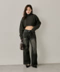 ・ショート丈のため、ハイウエストボトムスとの相性◎デニムでカジュアルな着こなしも。