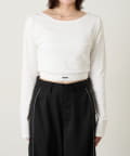 ・ショート丈のためハイウエストボトムス合わせでさらに脚長効果も。