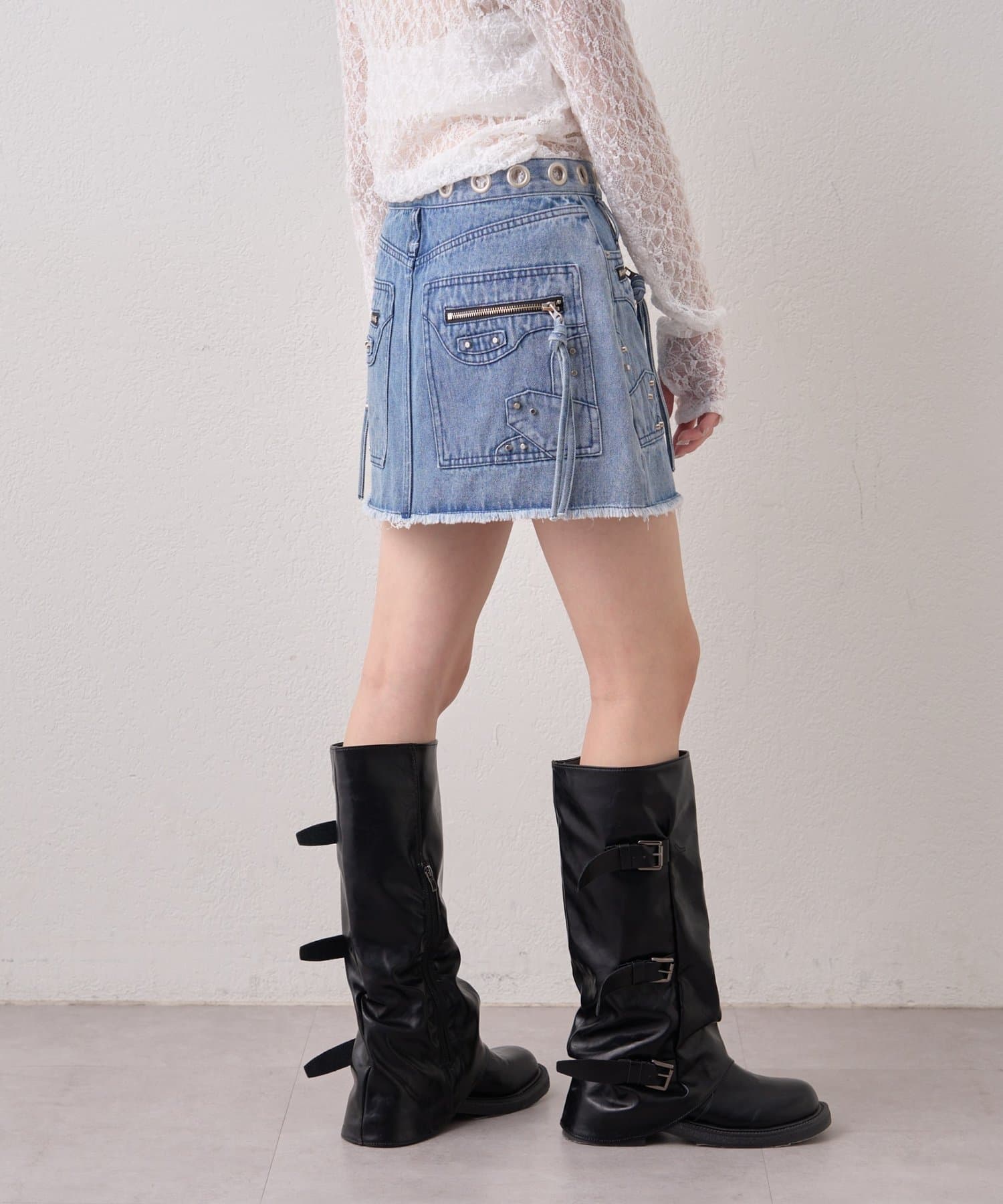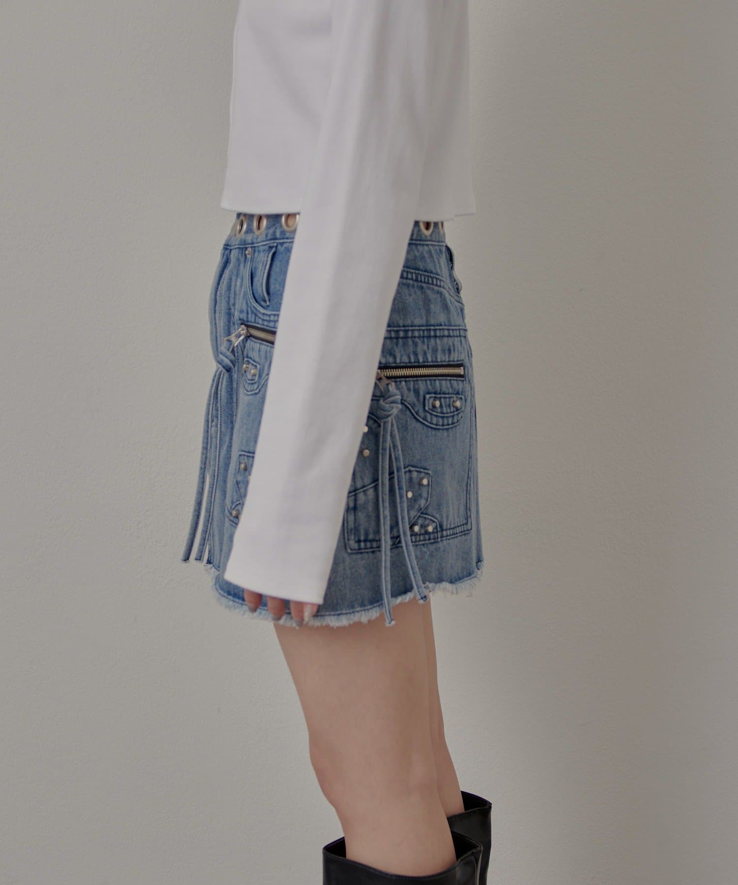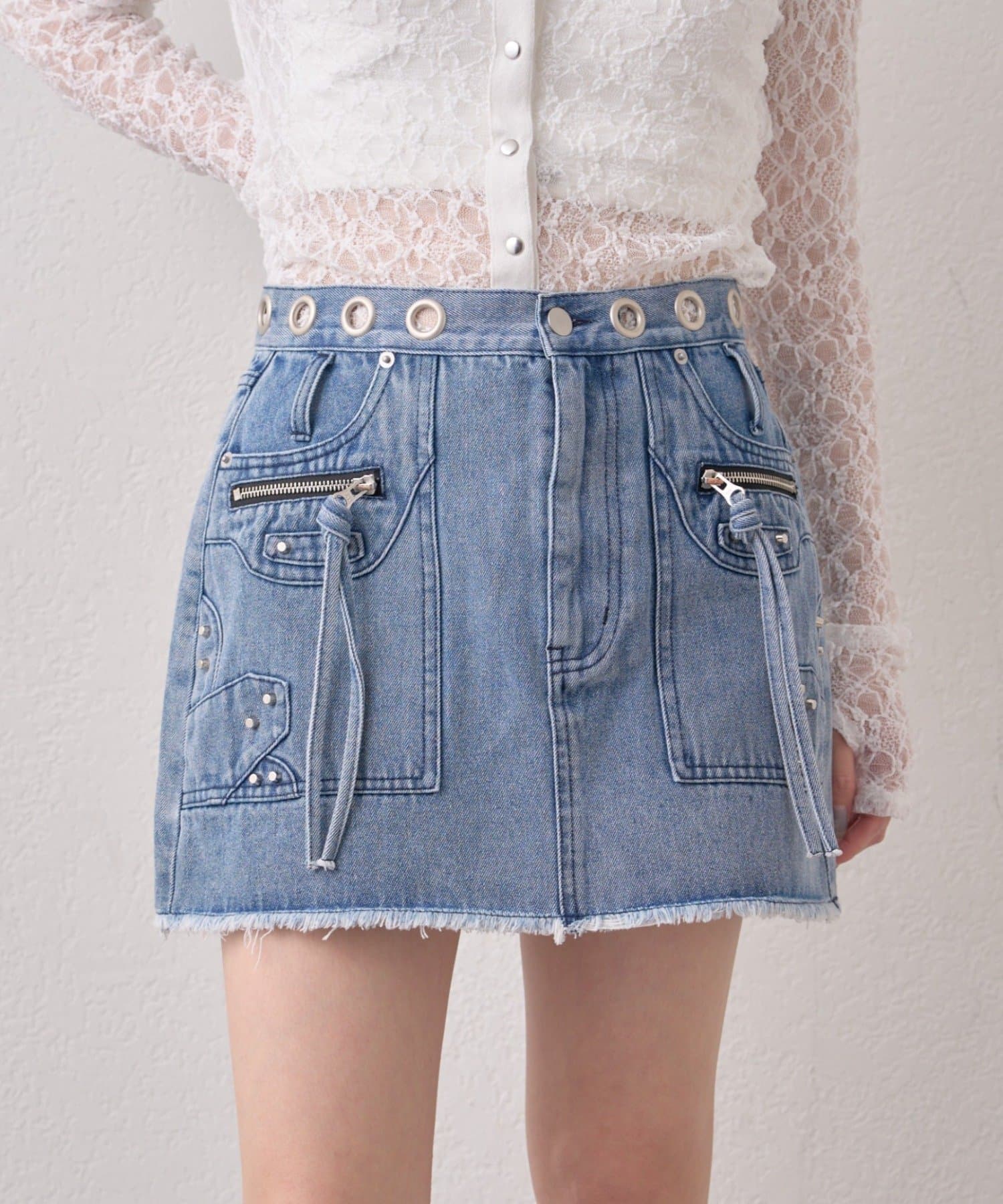 ハトメリングがポイントのエッジの効いたデニムスカートが登場!
