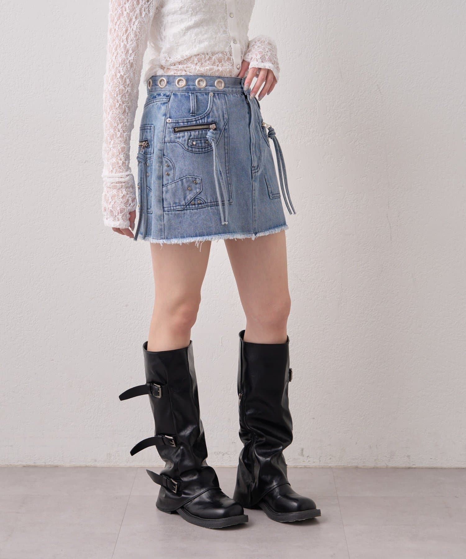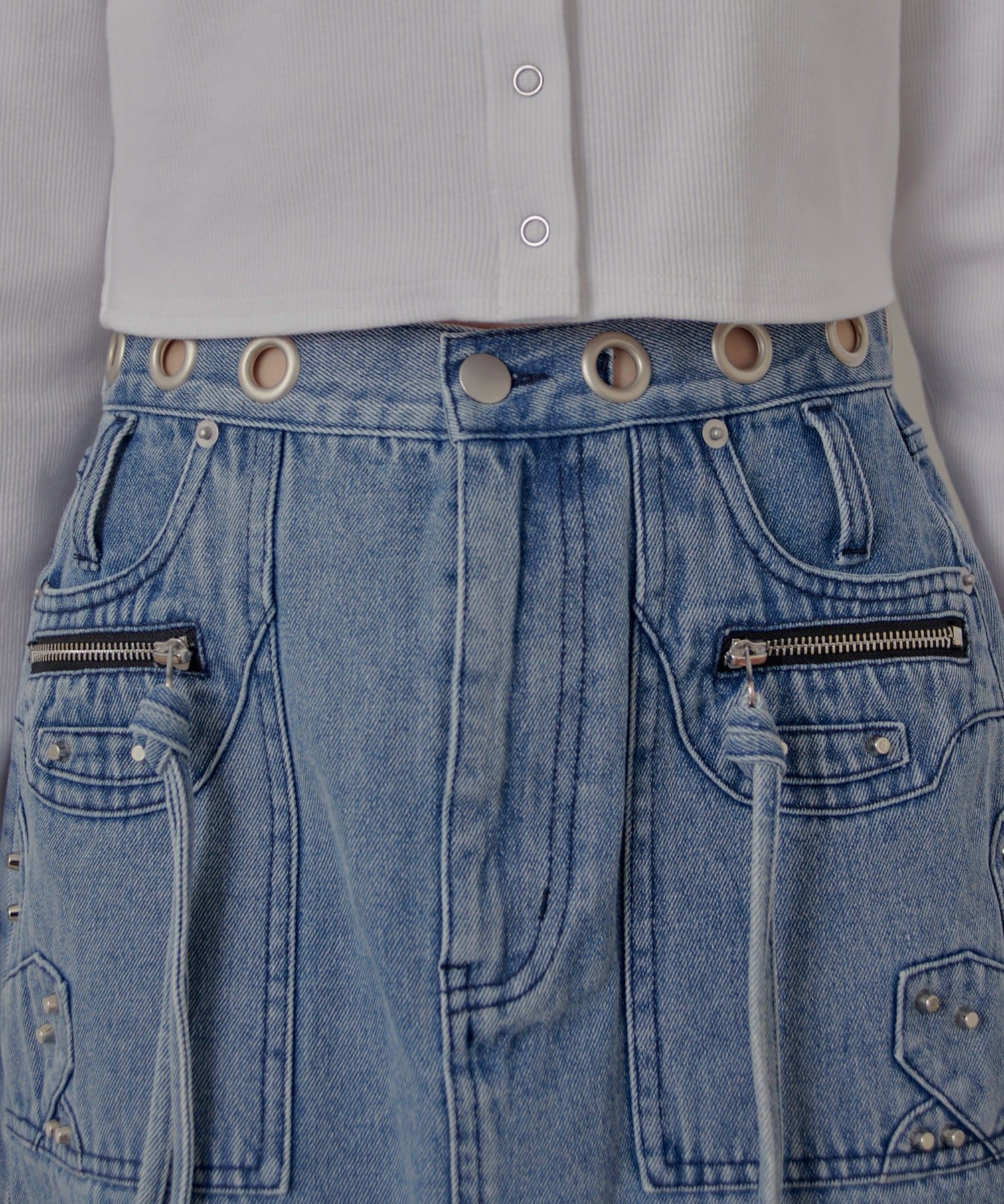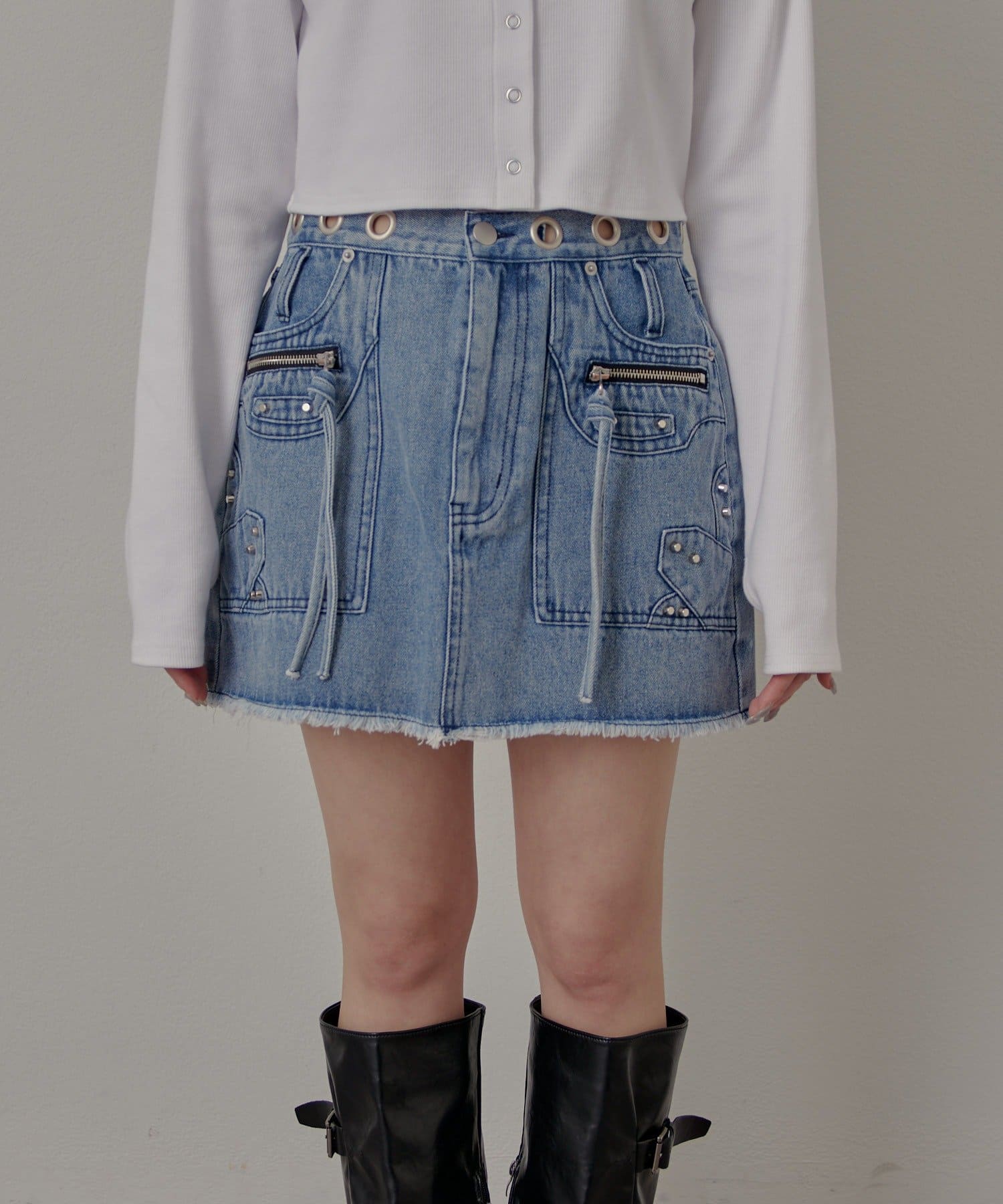 ハトメリングがポイントのエッジの効いたデニムスカートが登場!