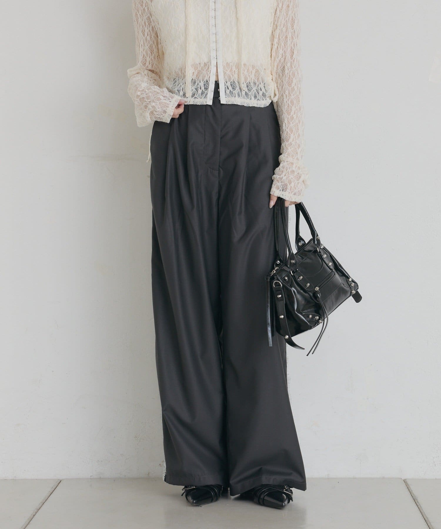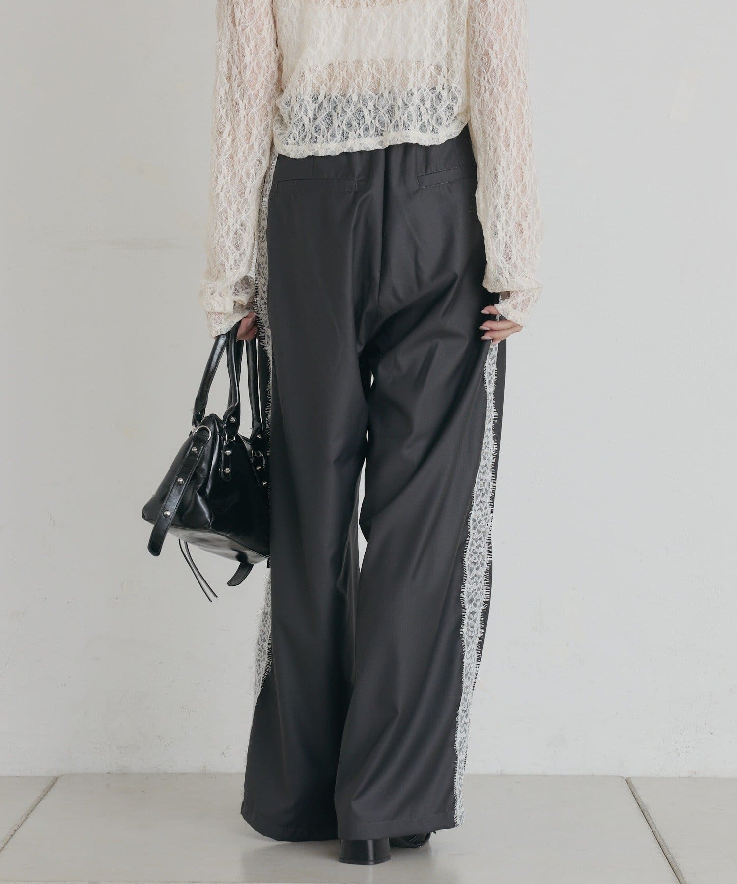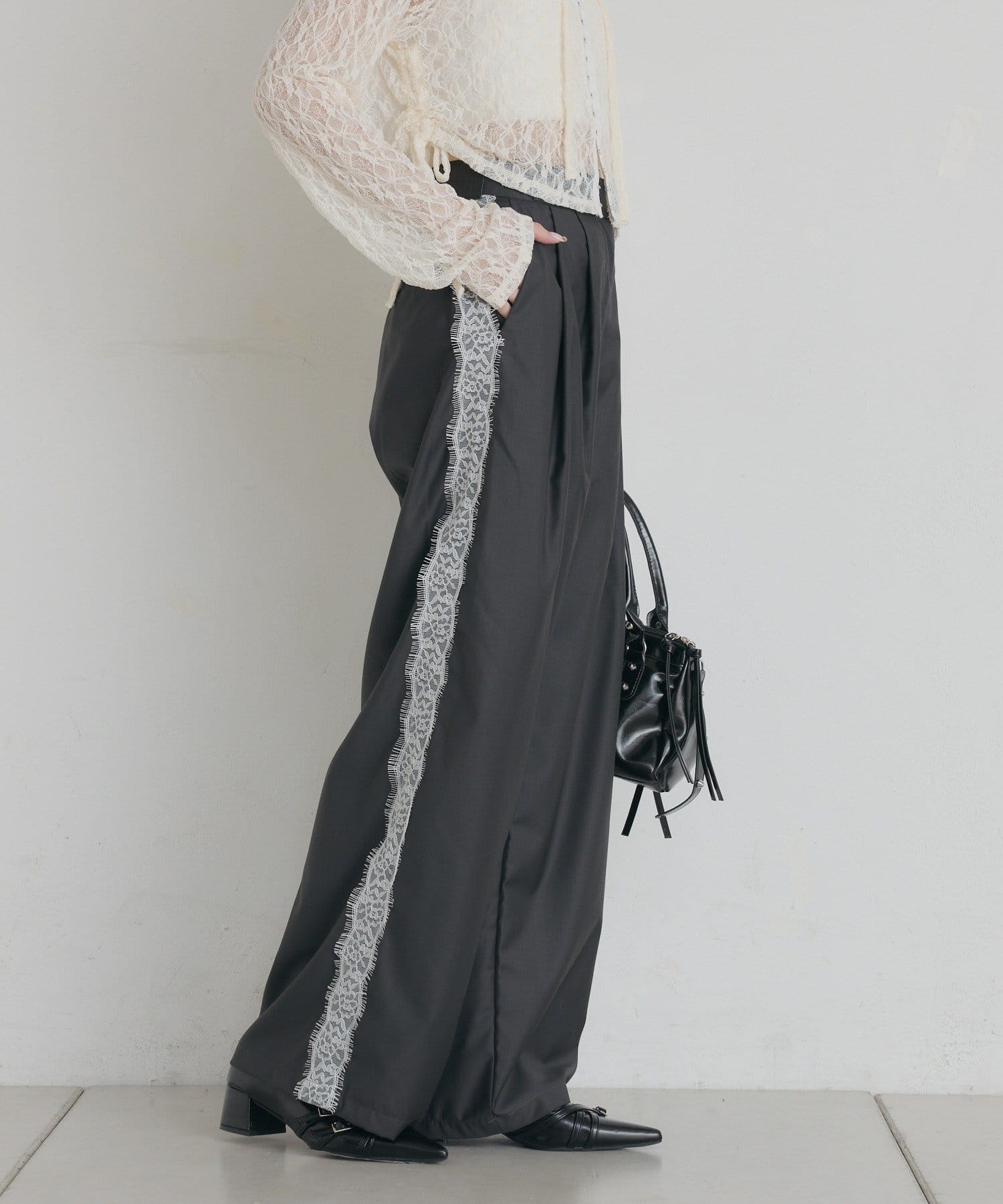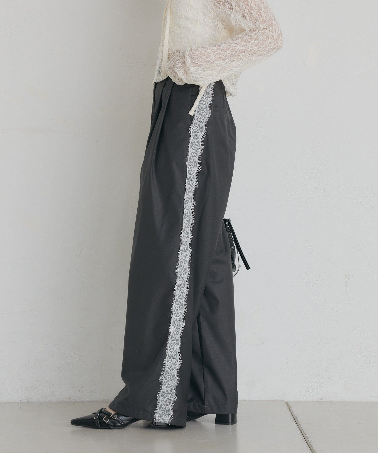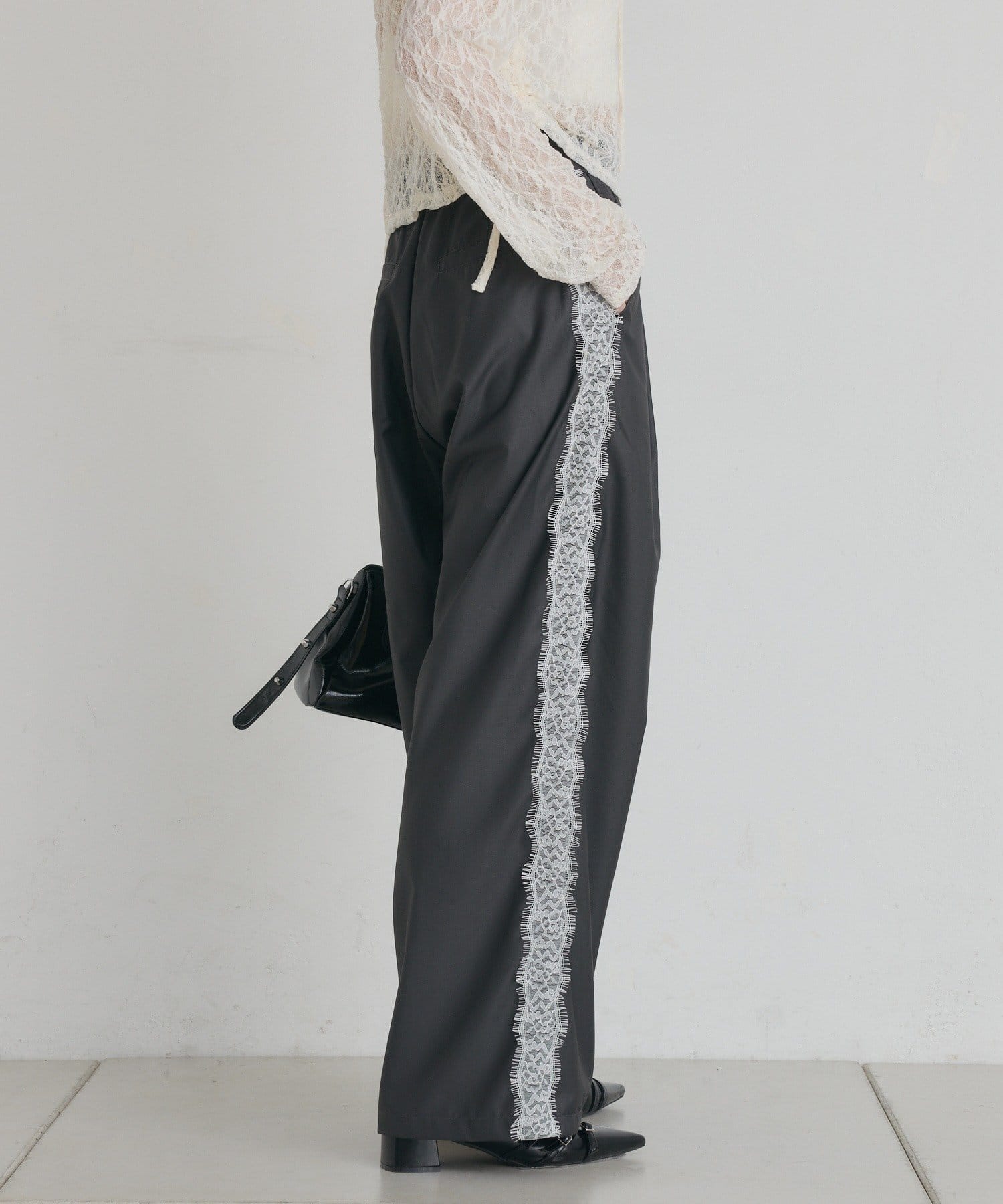 サイドのレースが目を惹く◎レディ見えな着回し抜群のスラックスが登場!
