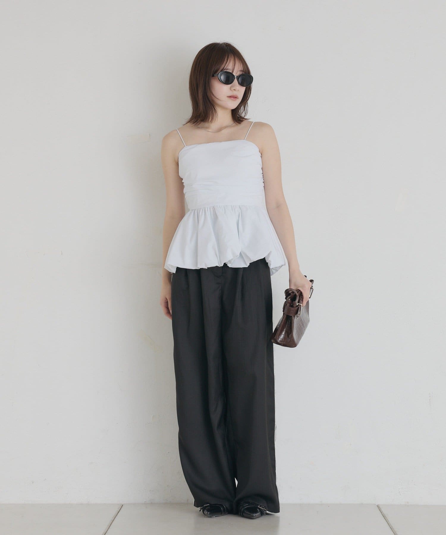 ・シアー素材のトップスや、クロップド丈のトップスと合わせてトレンド感のあるスタイルに◎