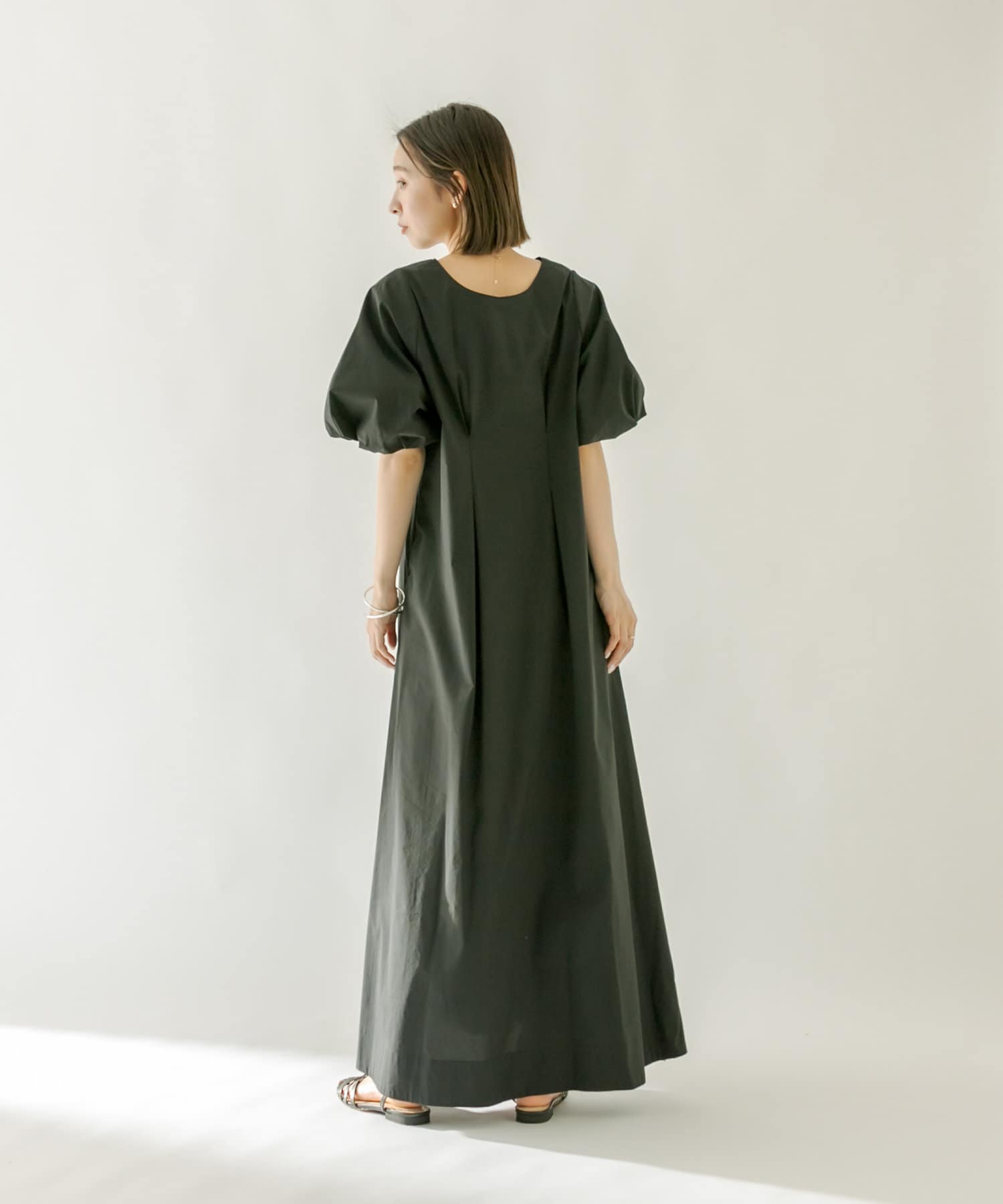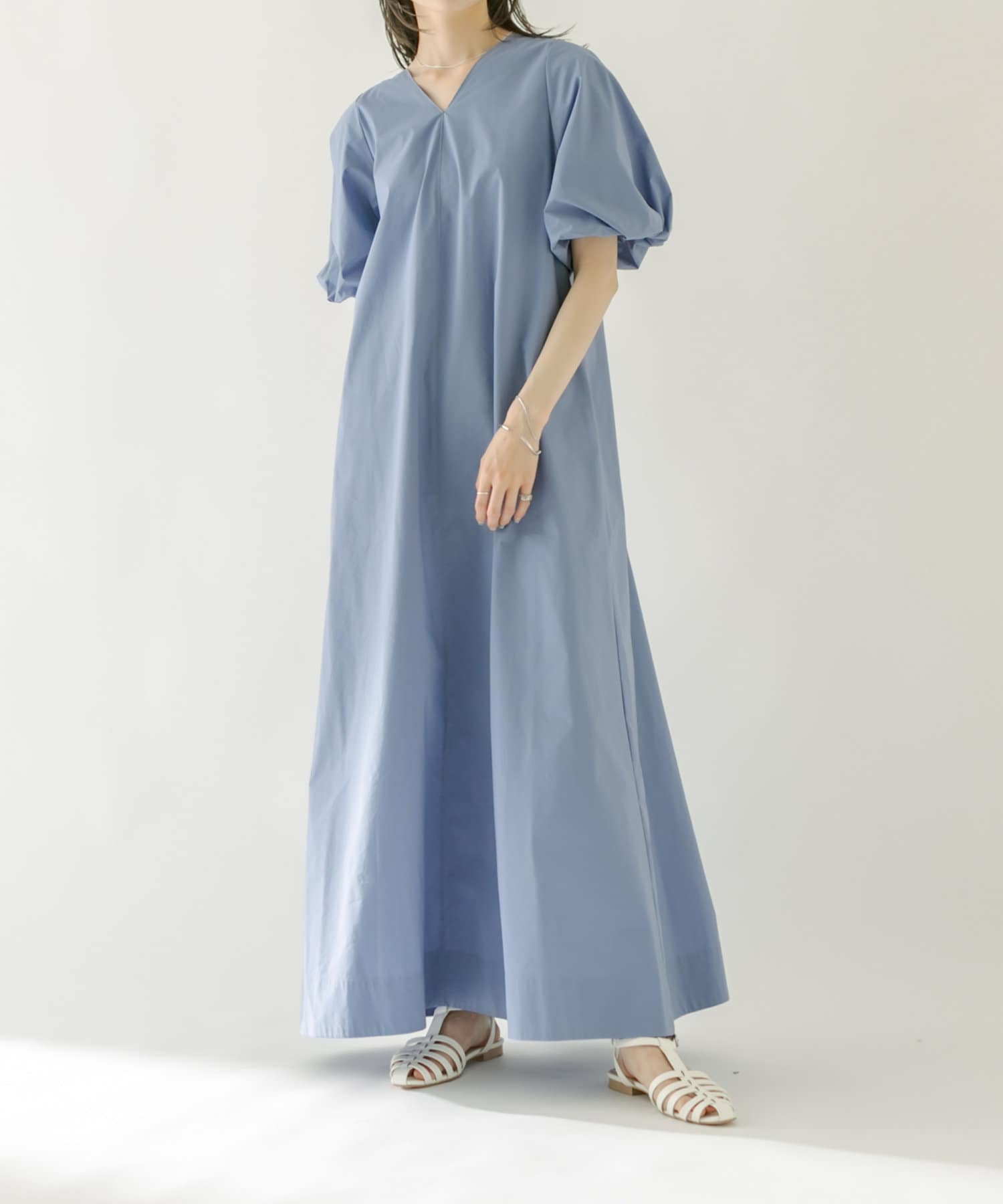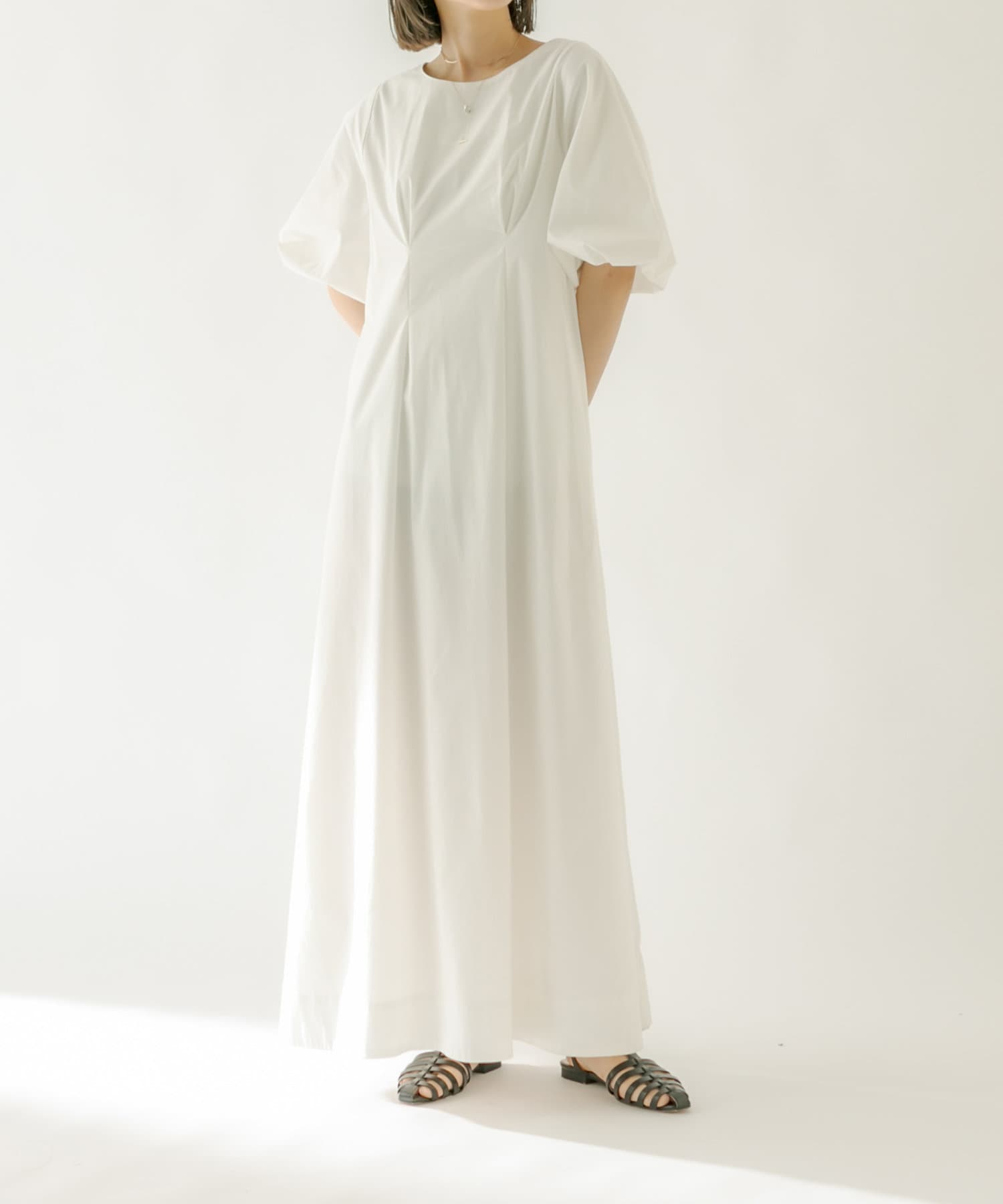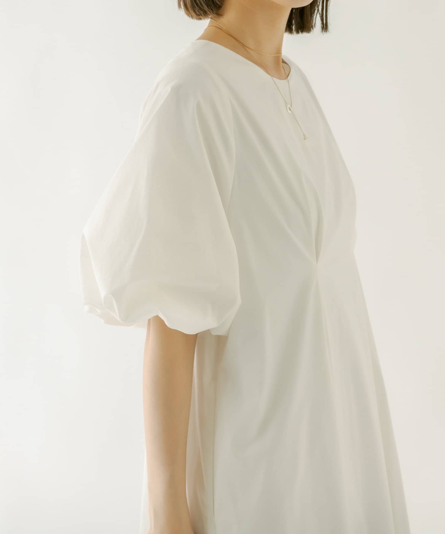 ・袖のバルーンデザインとAラインのシルエットが1枚で女性らしく決まるワンピース。