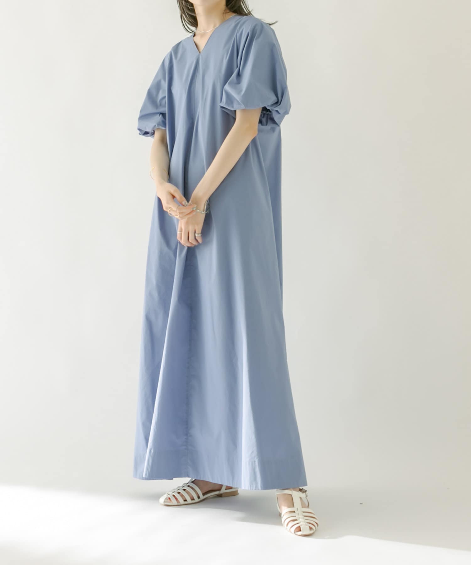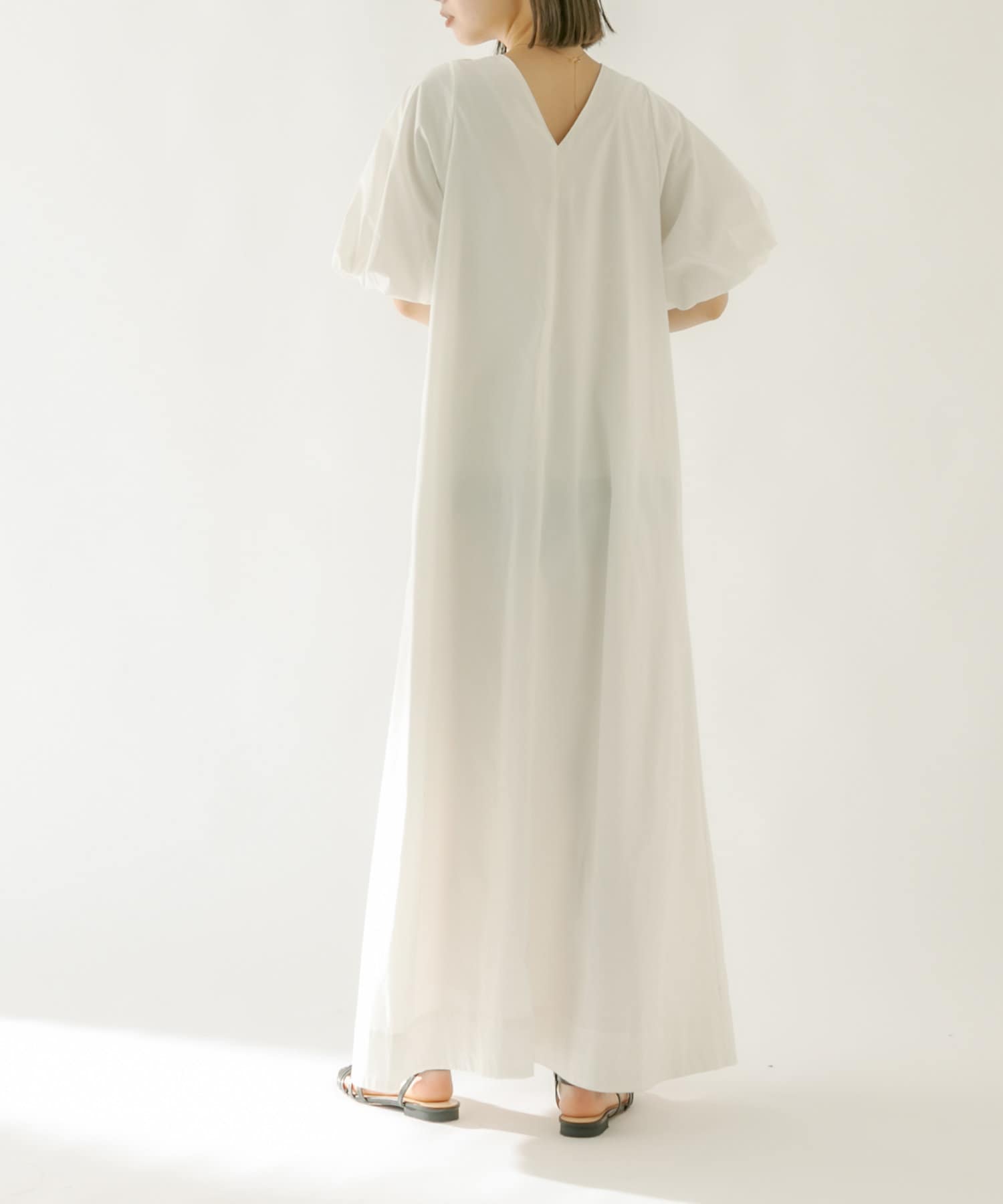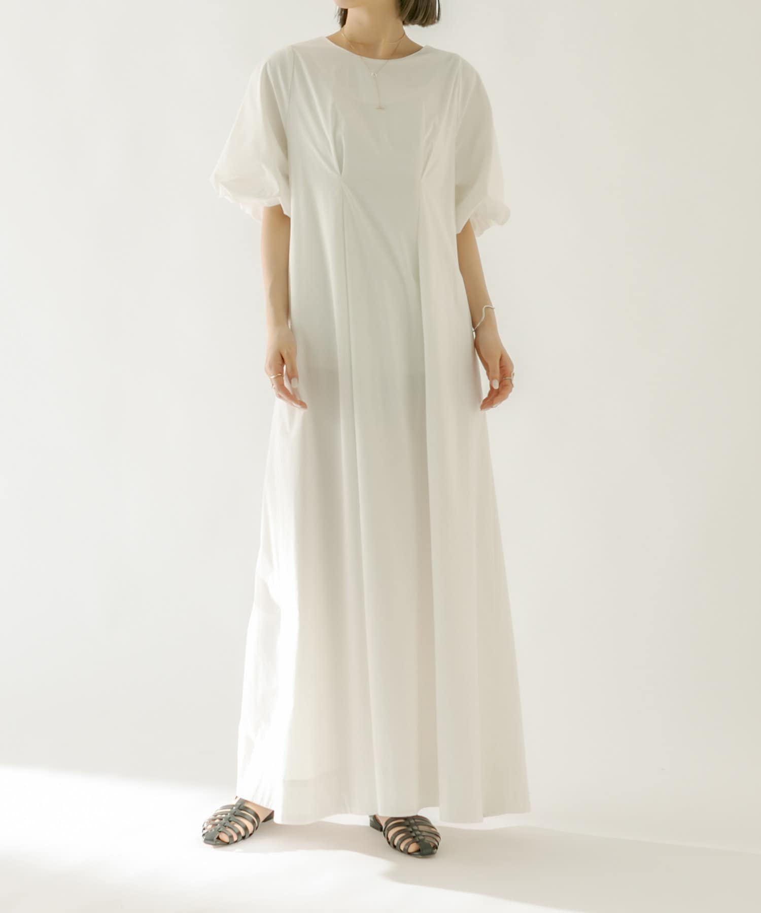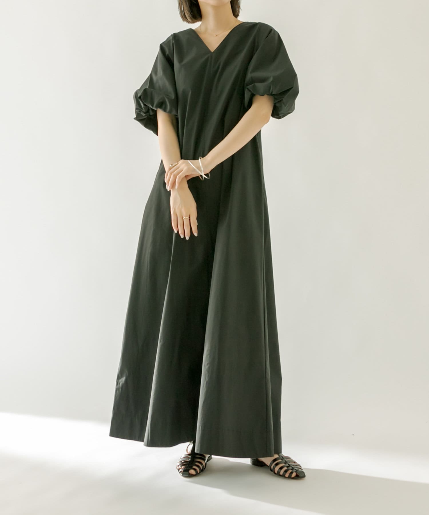 ・袖のバルーンデザインとAラインのシルエットが1枚で女性らしく決まるワンピース。