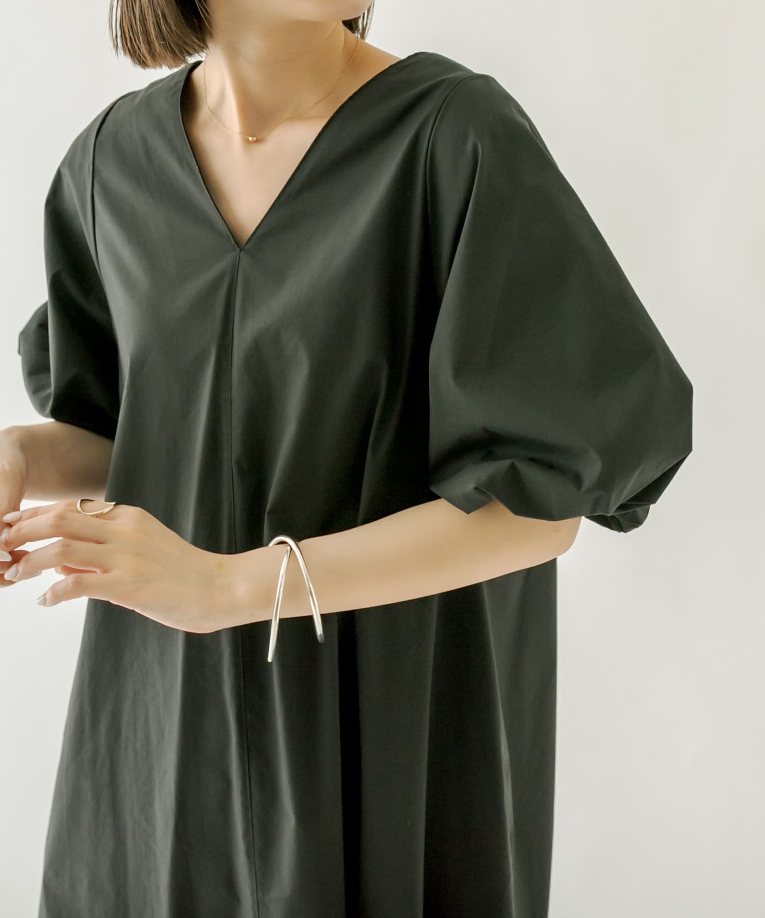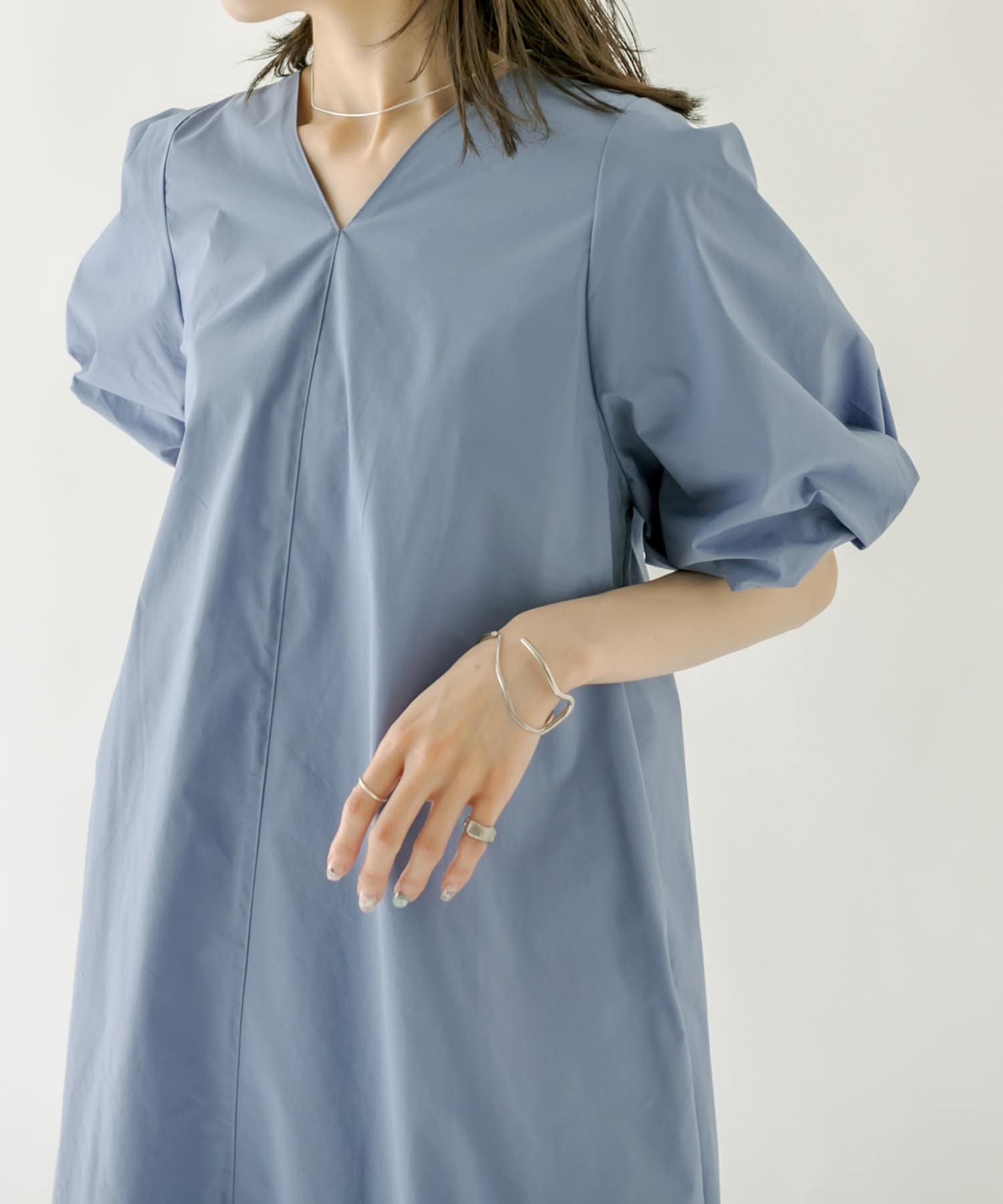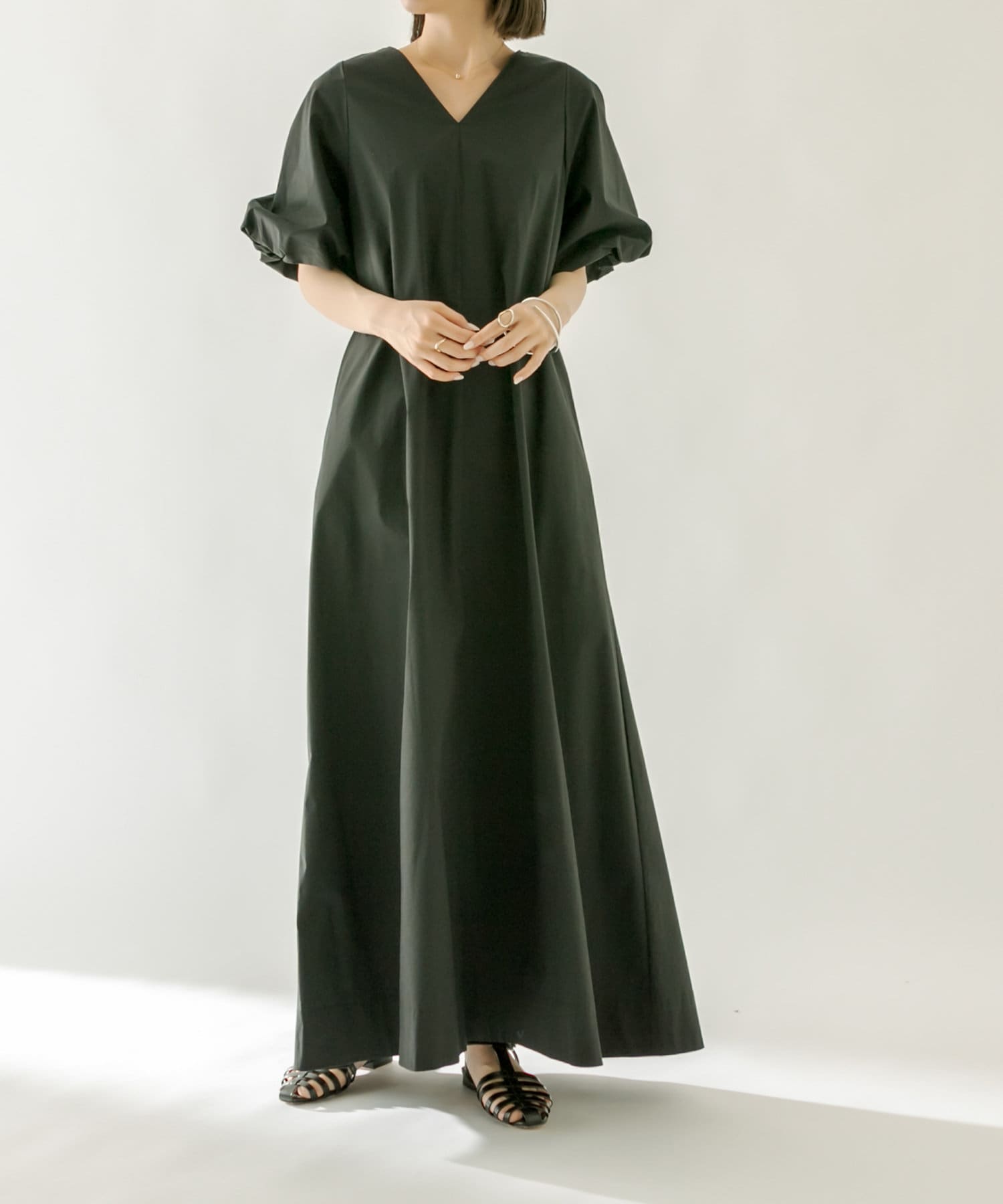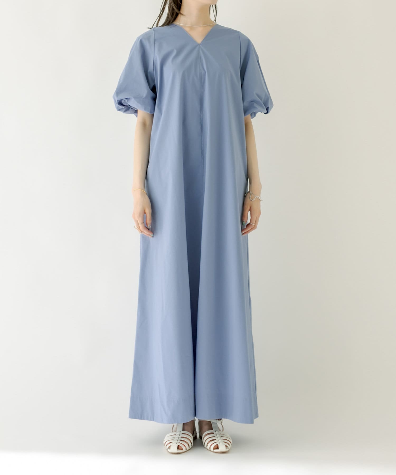 ・袖のバルーンデザインとAラインのシルエットが1枚で女性らしく決まるワンピース。