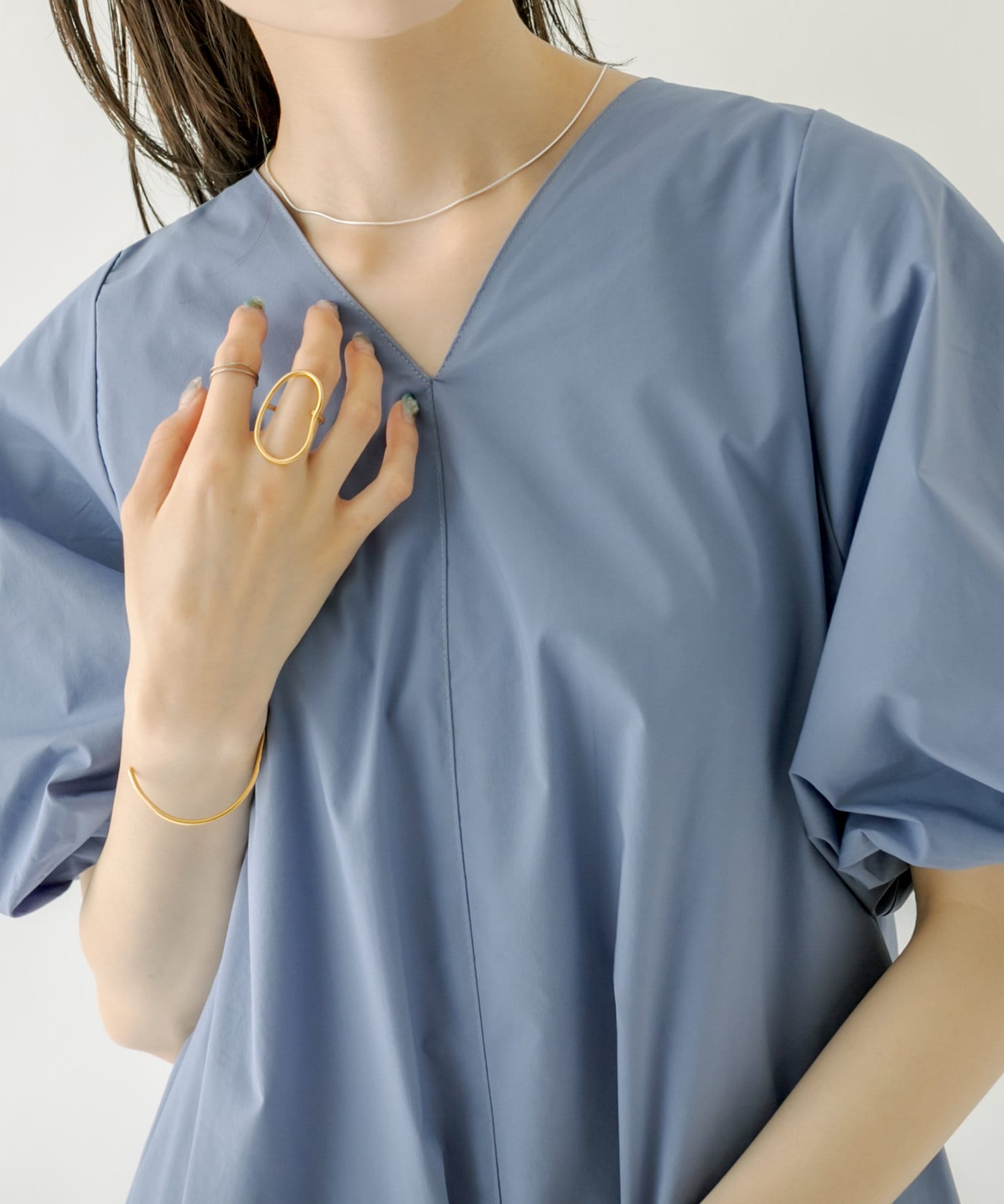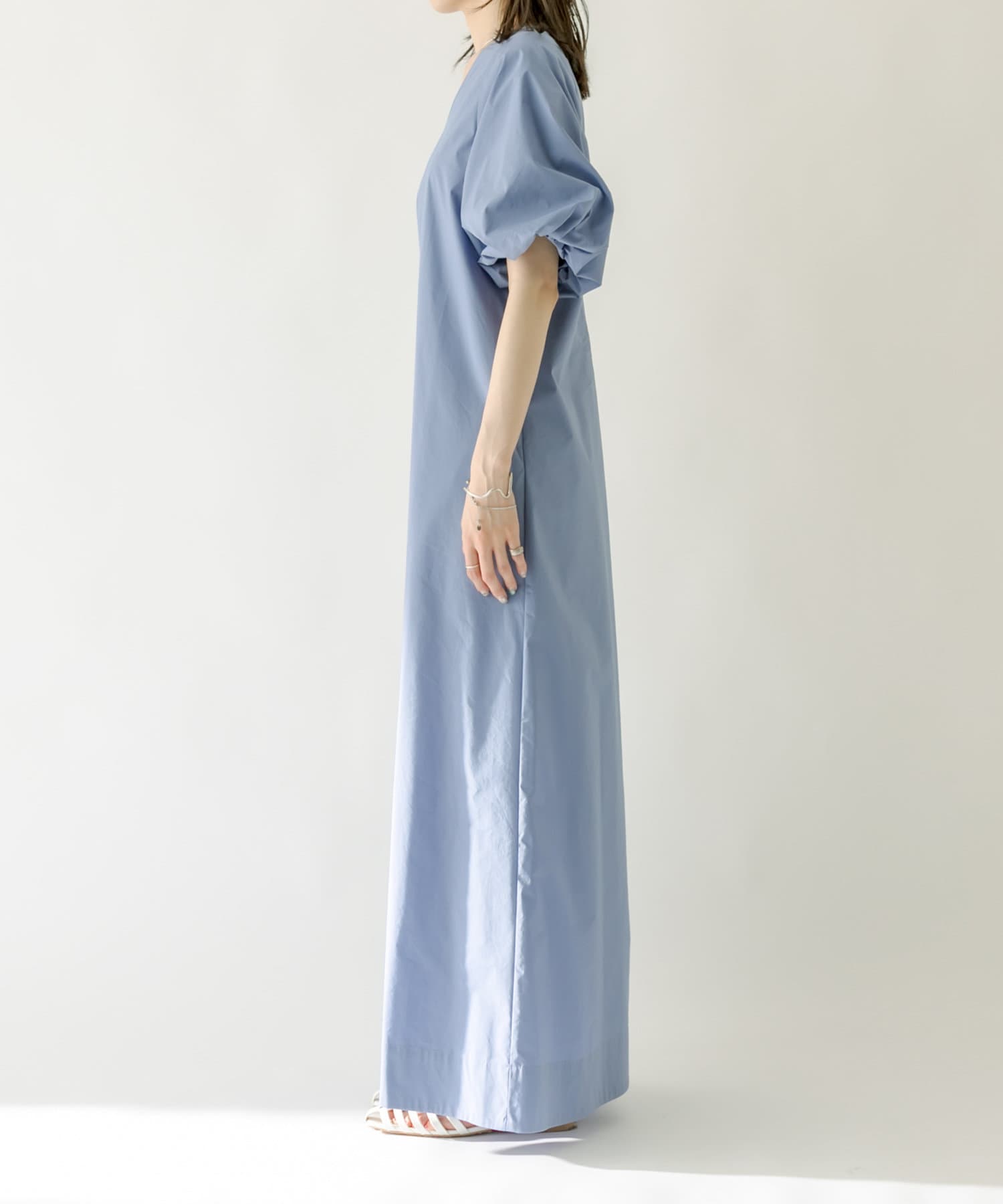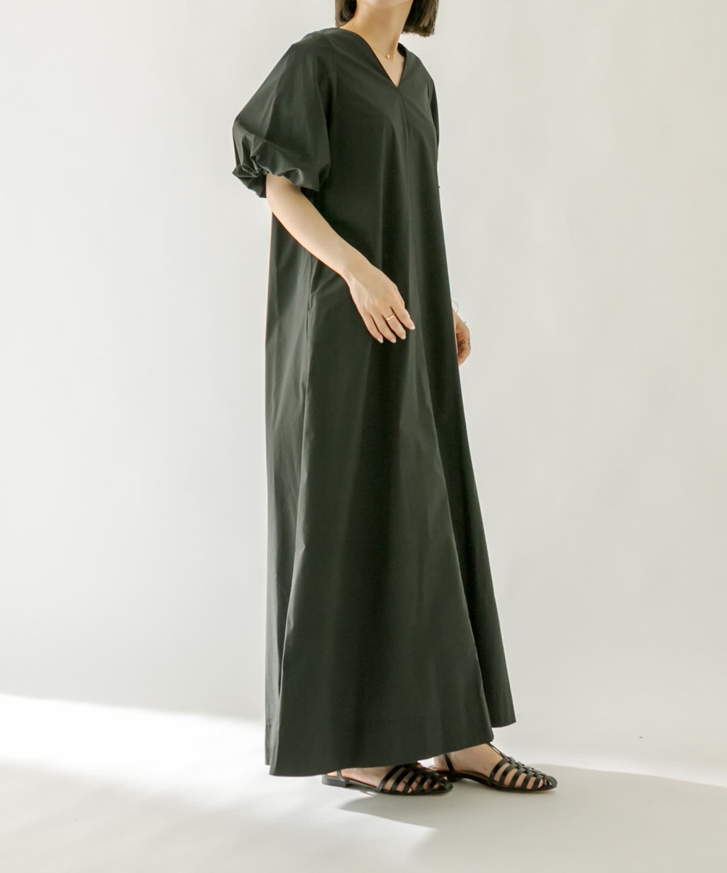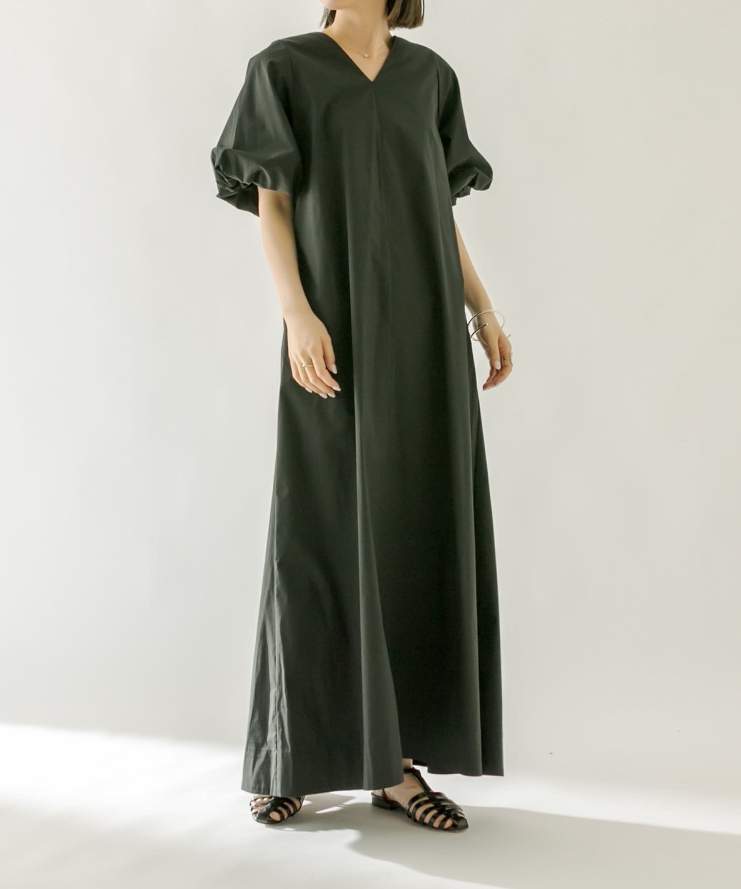 ・袖のバルーンデザインとAラインのシルエットが1枚で女性らしく決まるワンピース。