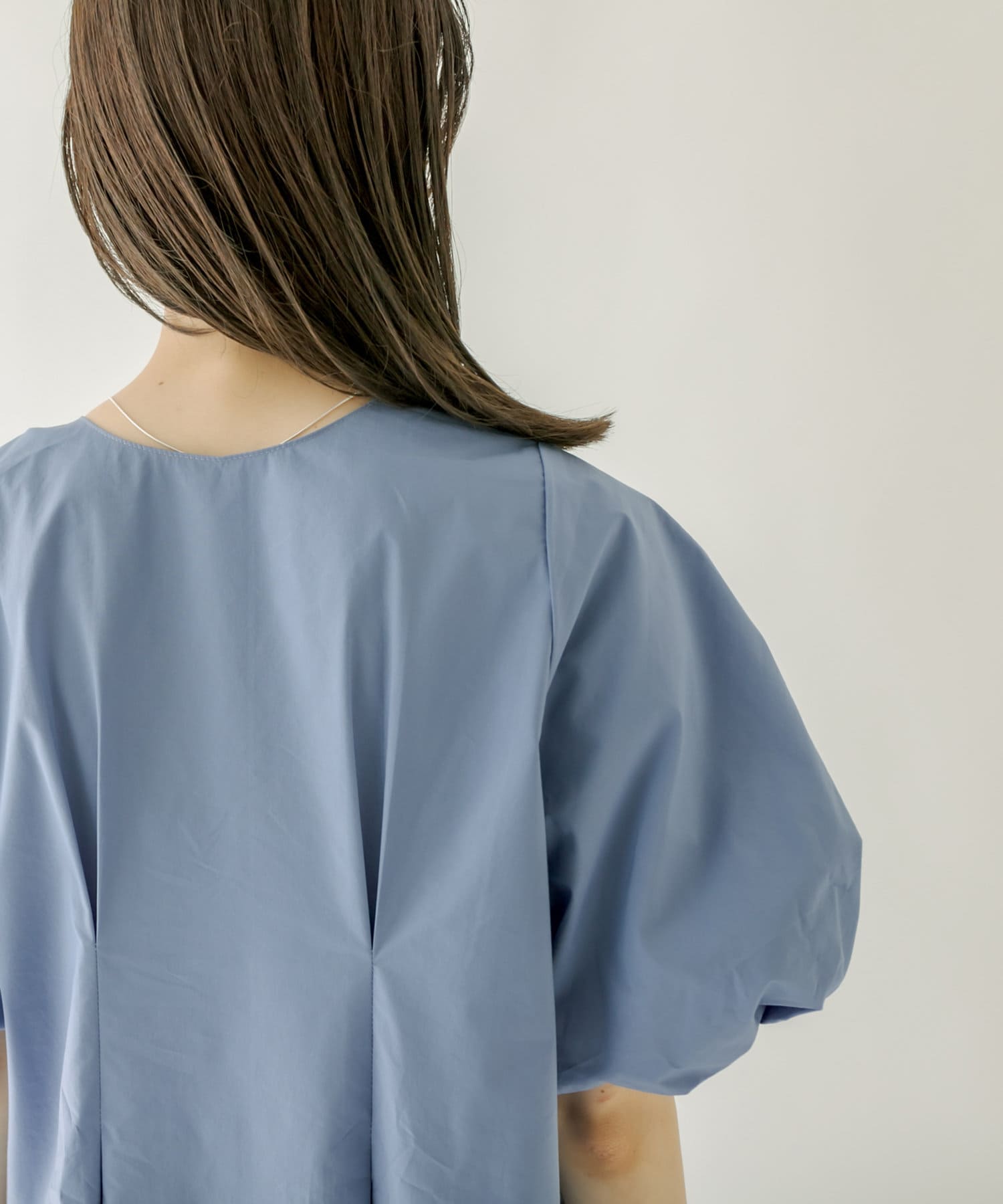 ・バックのタックデザインがボディラインを華奢に見せてくれます。