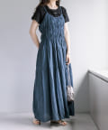 ・たっぷりのシャーリング素材が女性らしい夏の定番ワンピ。