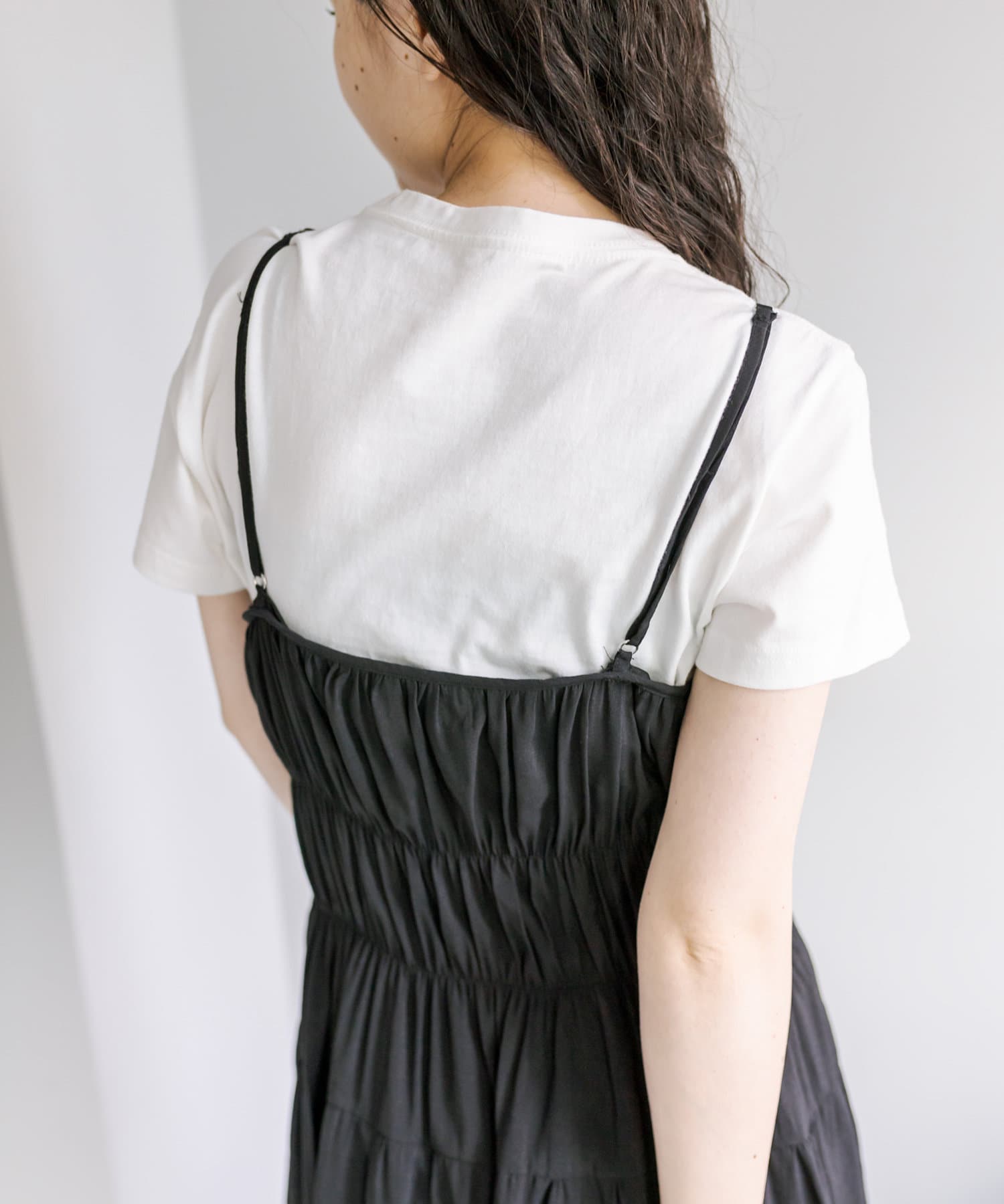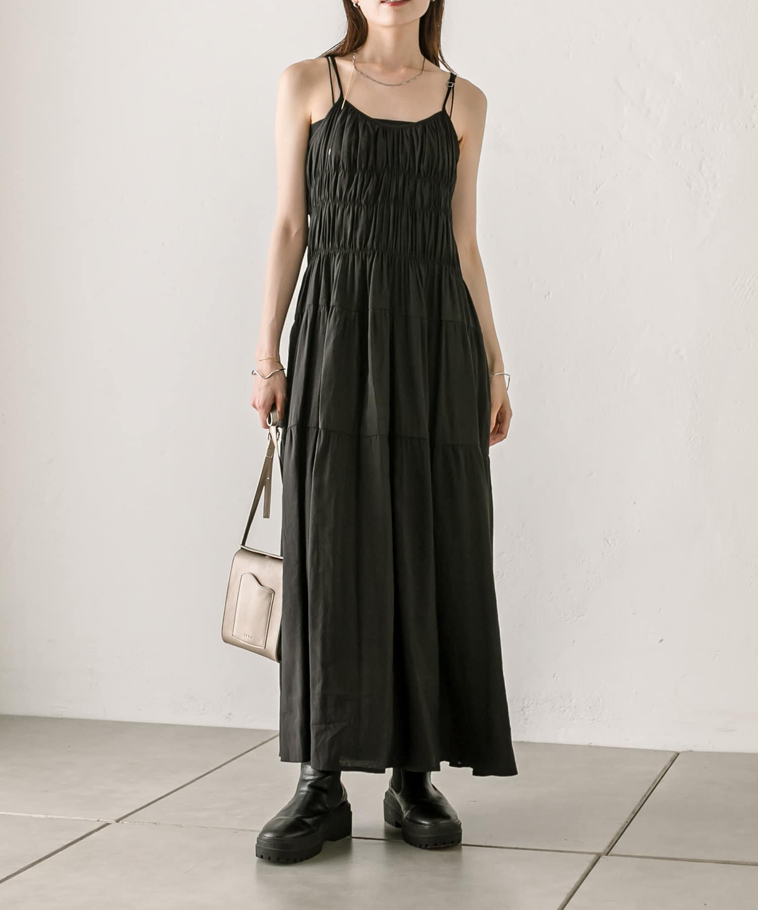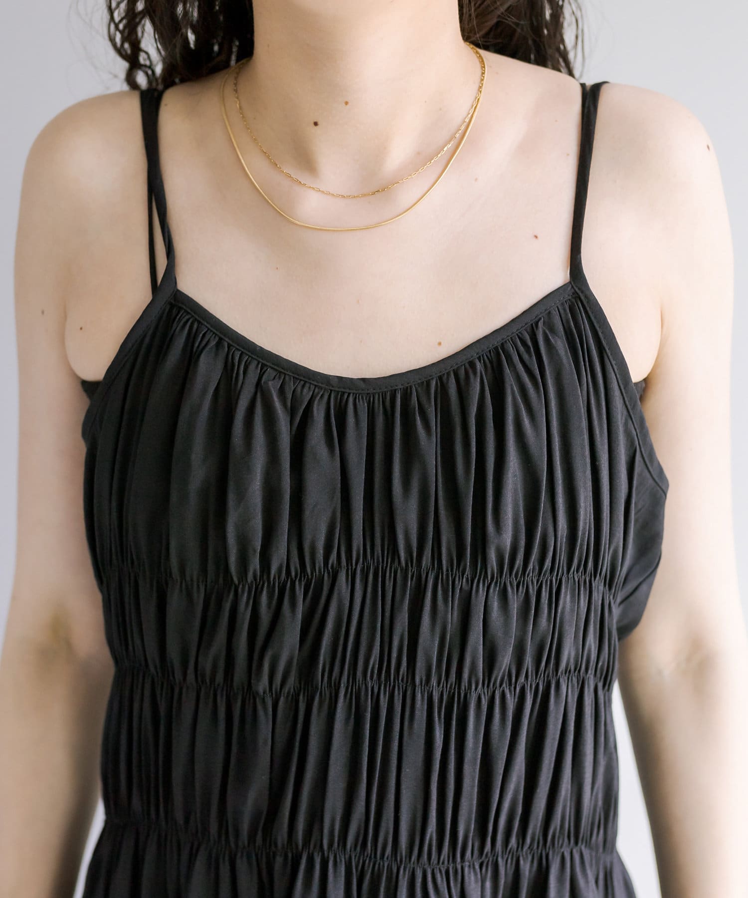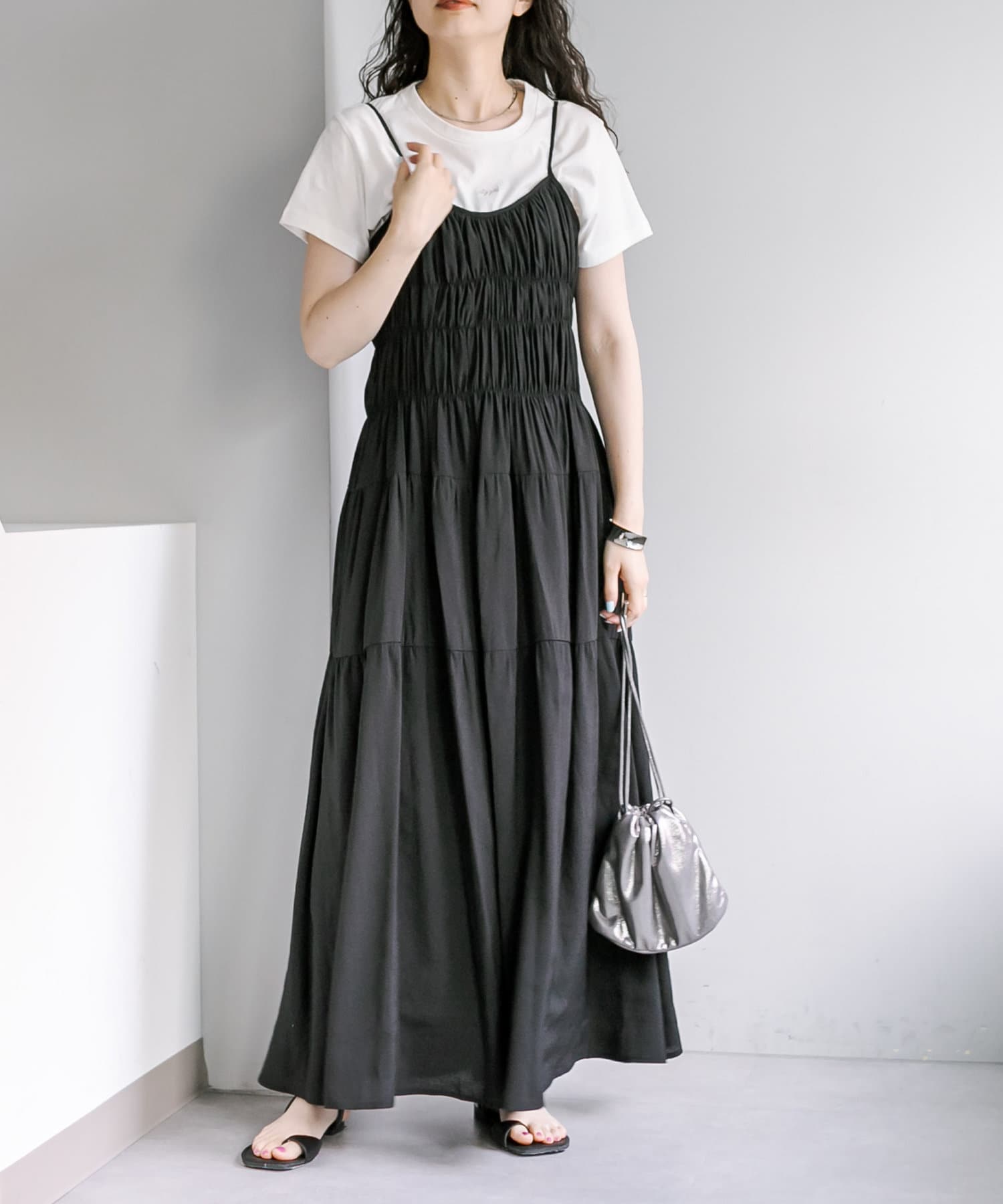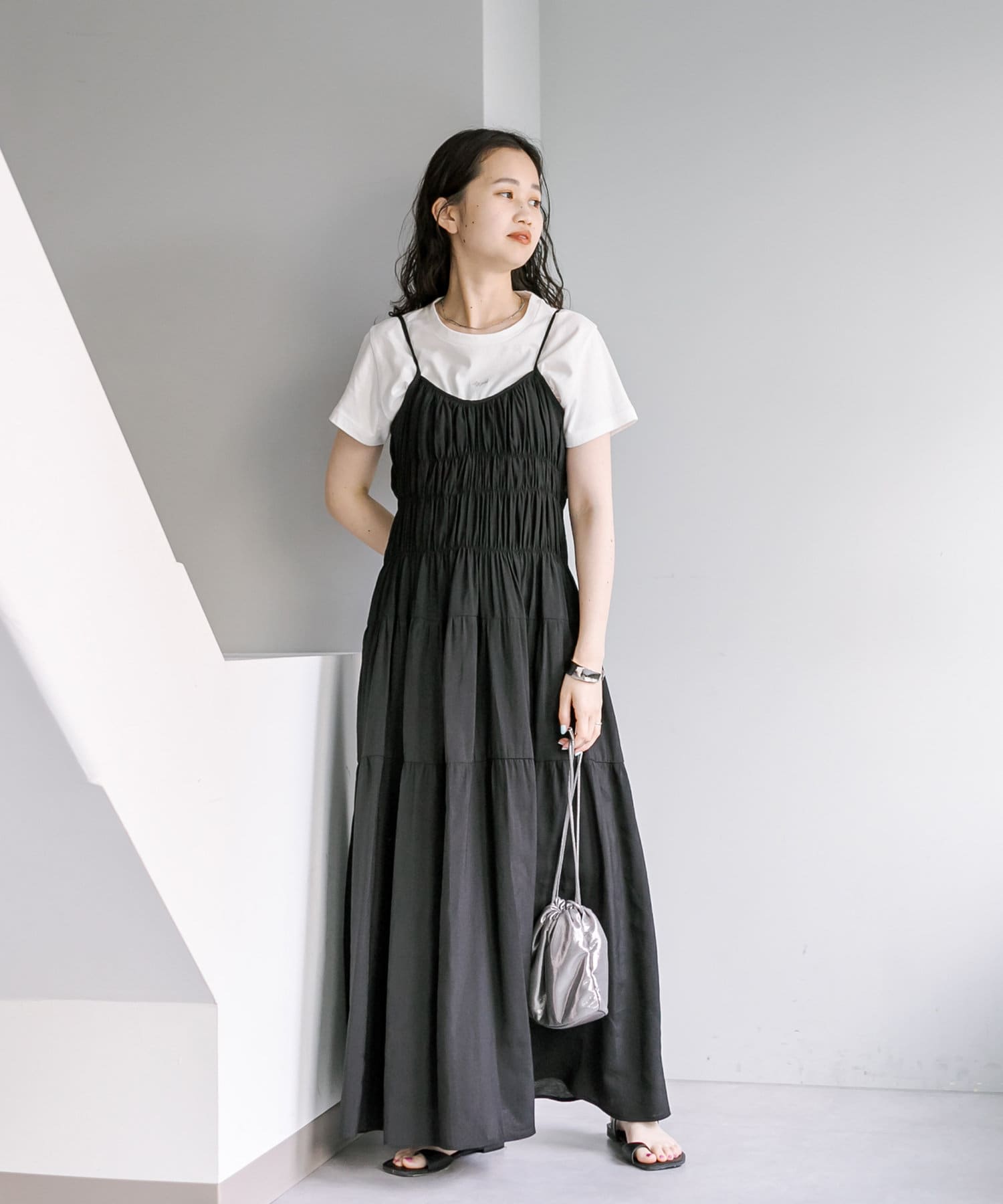 シャーリング素材が女性らしいキャミワンピースが登場。