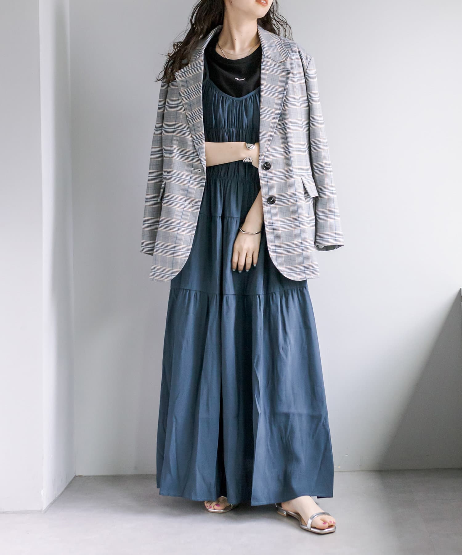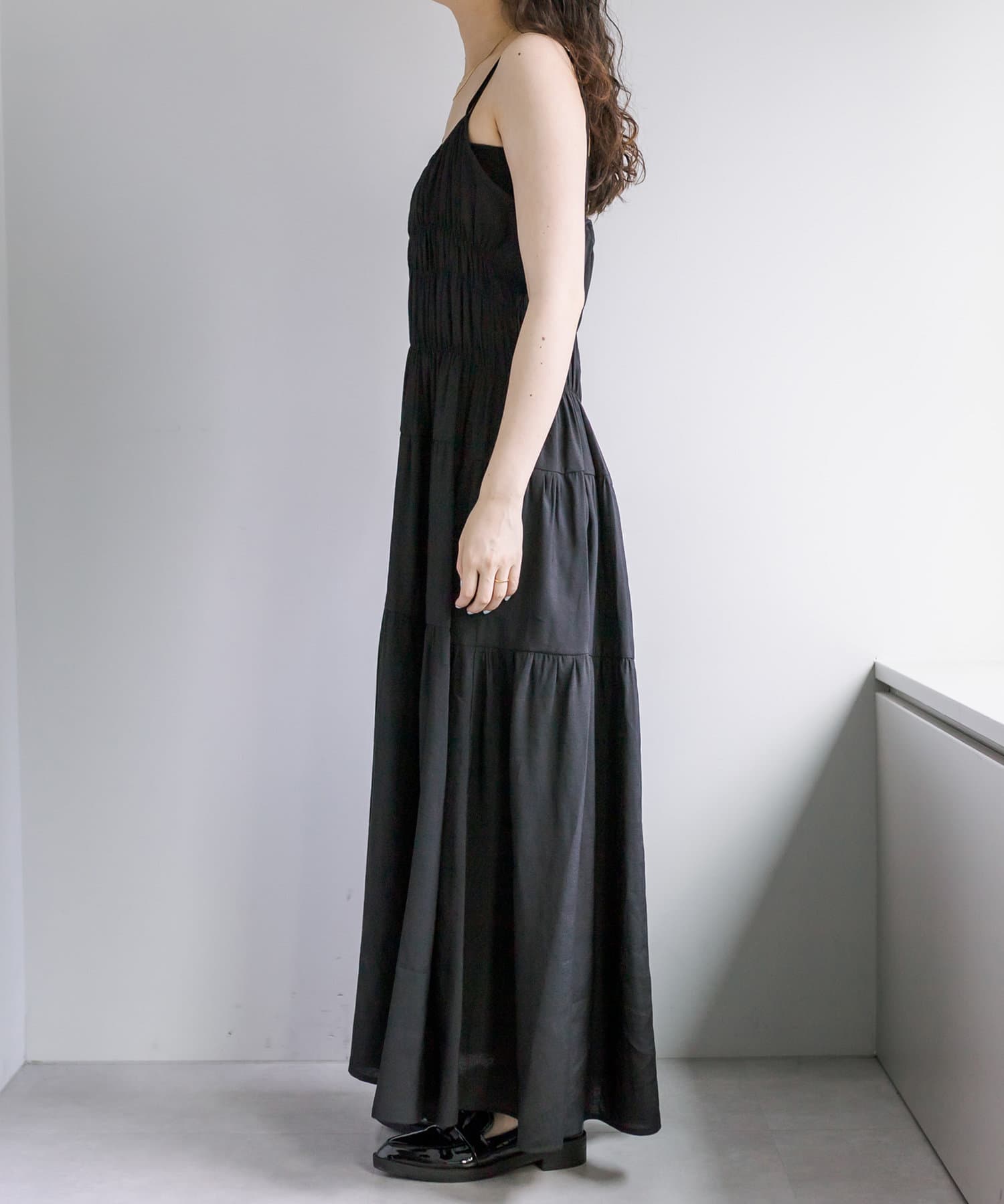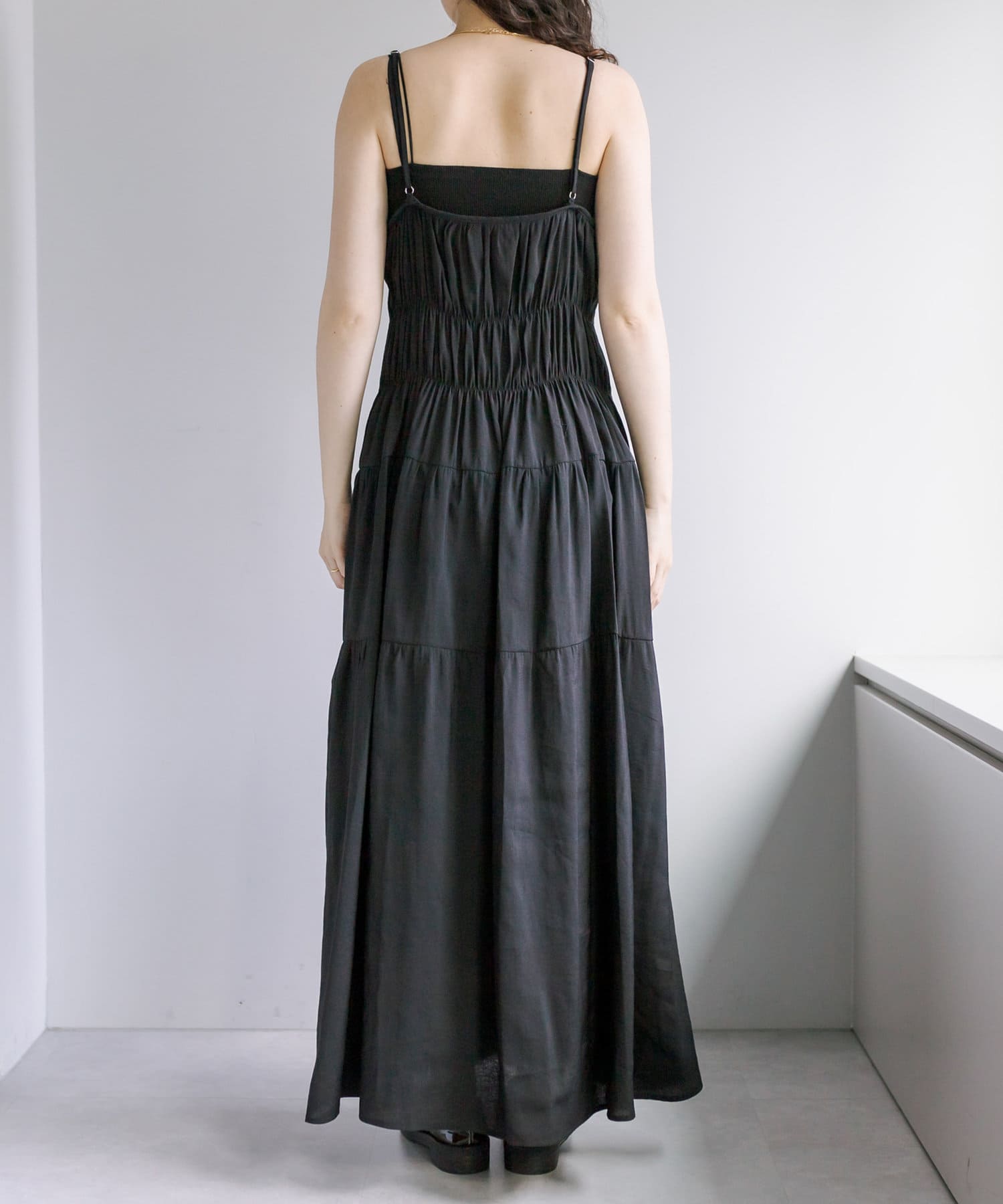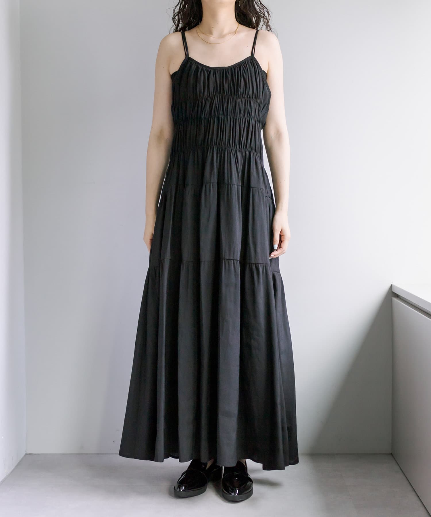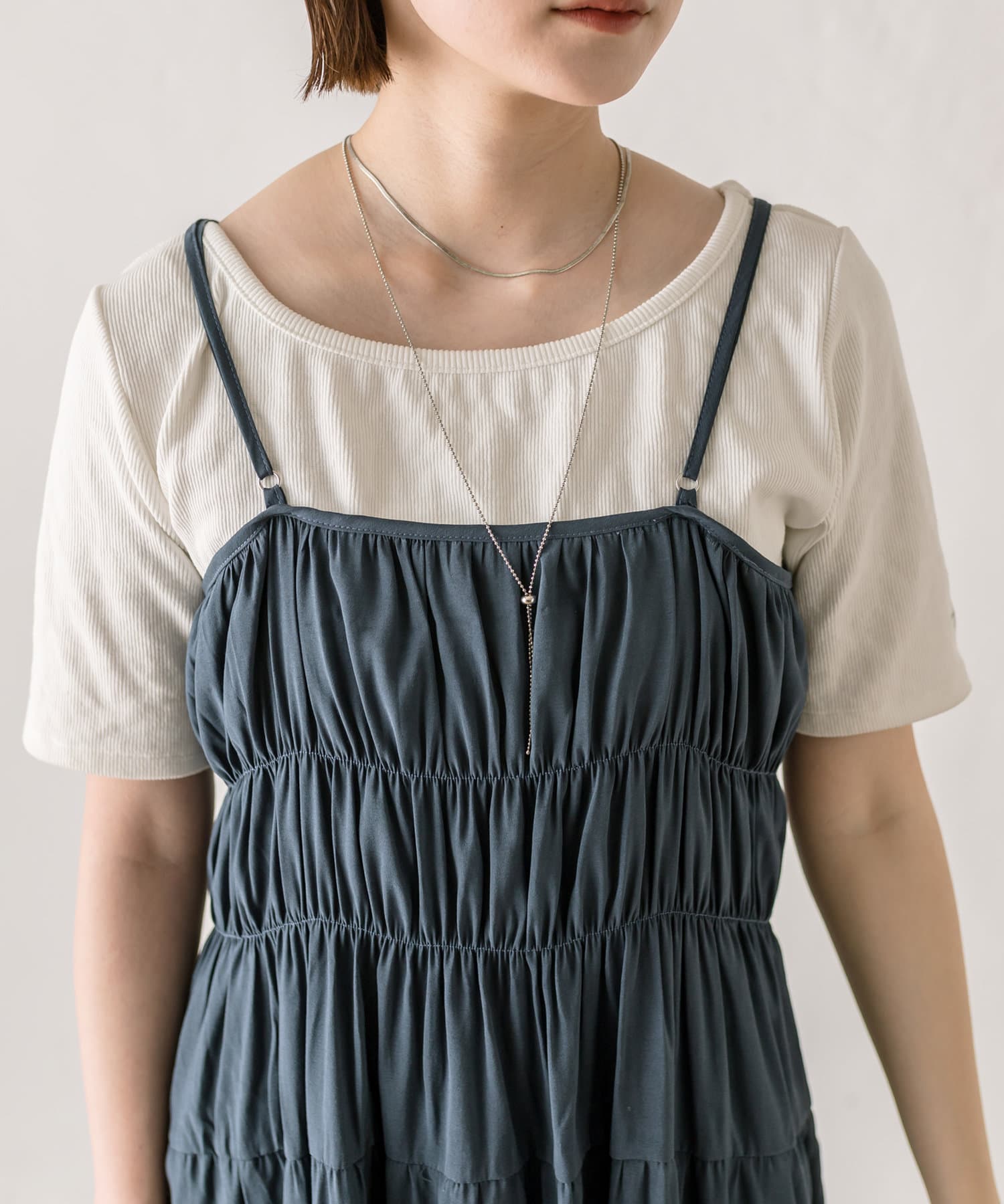 シャーリング素材が女性らしいキャミワンピースが登場。