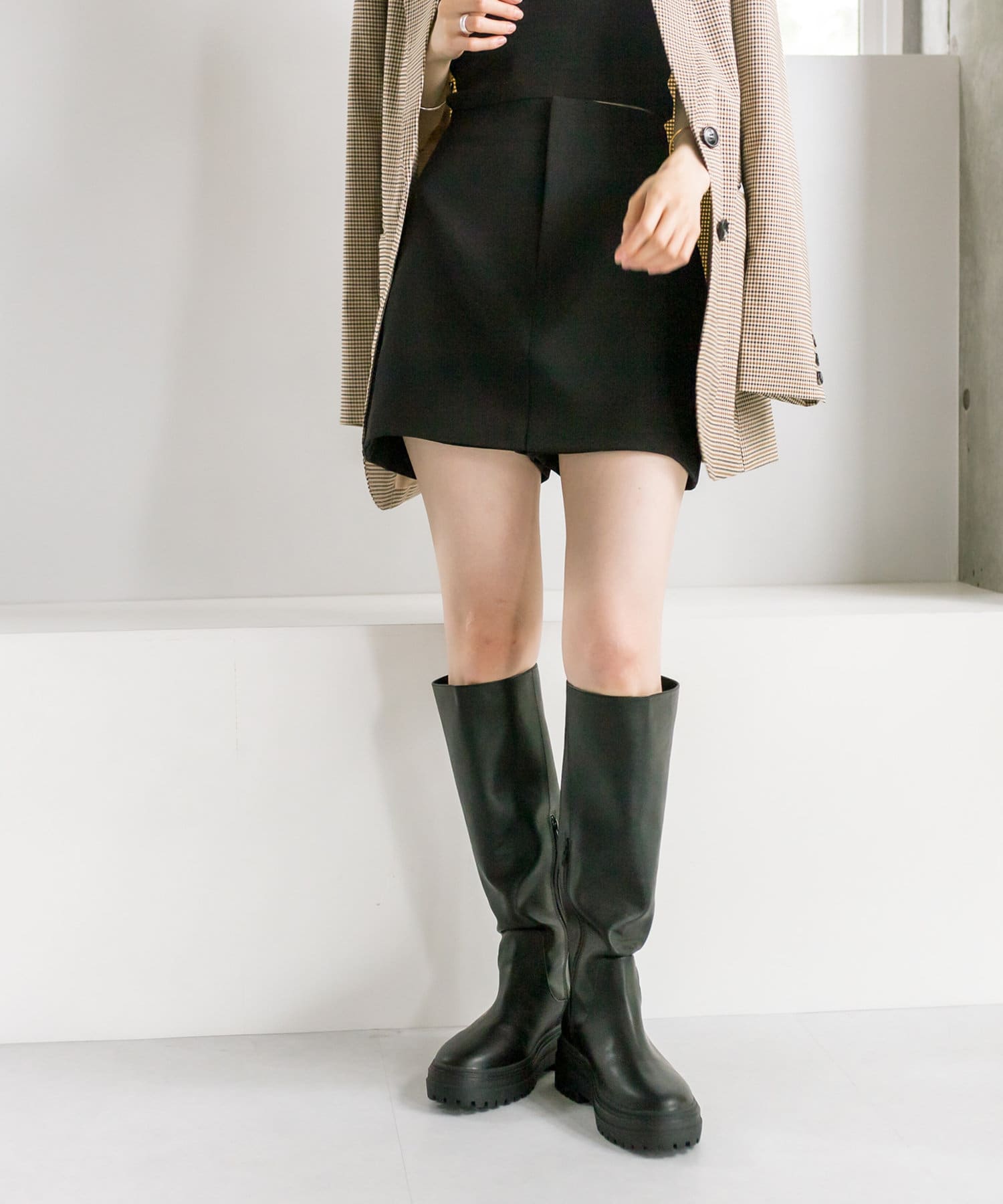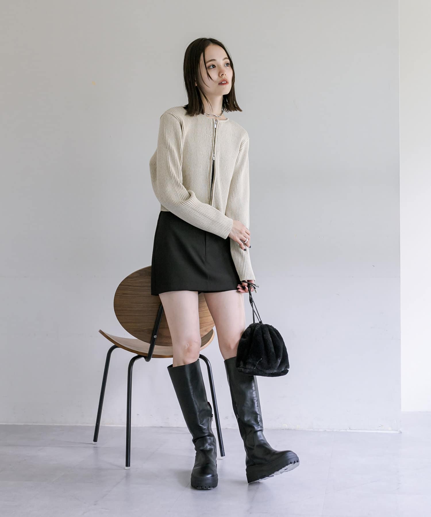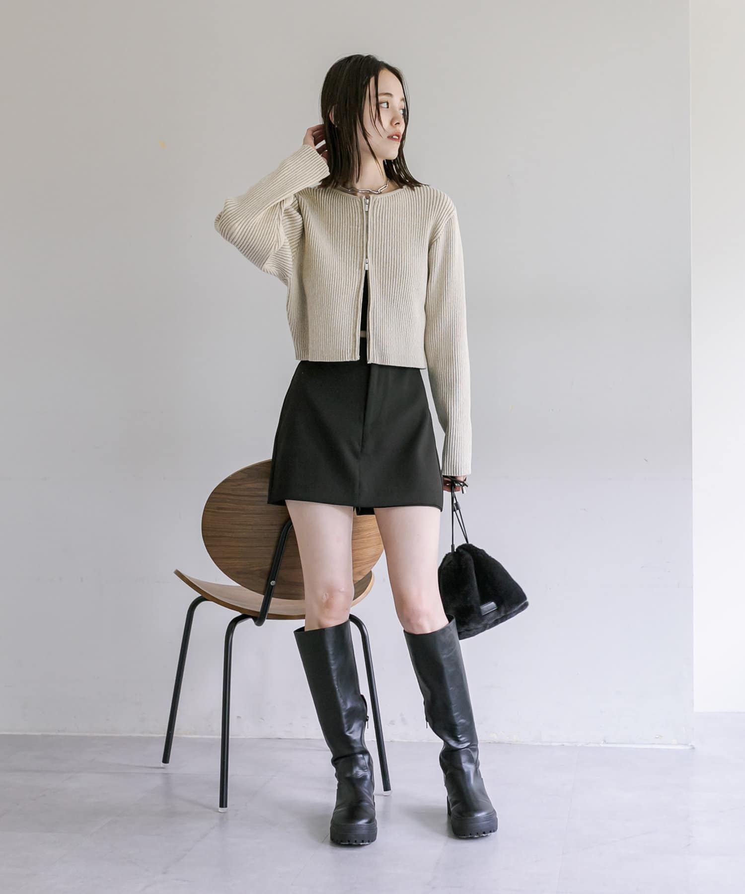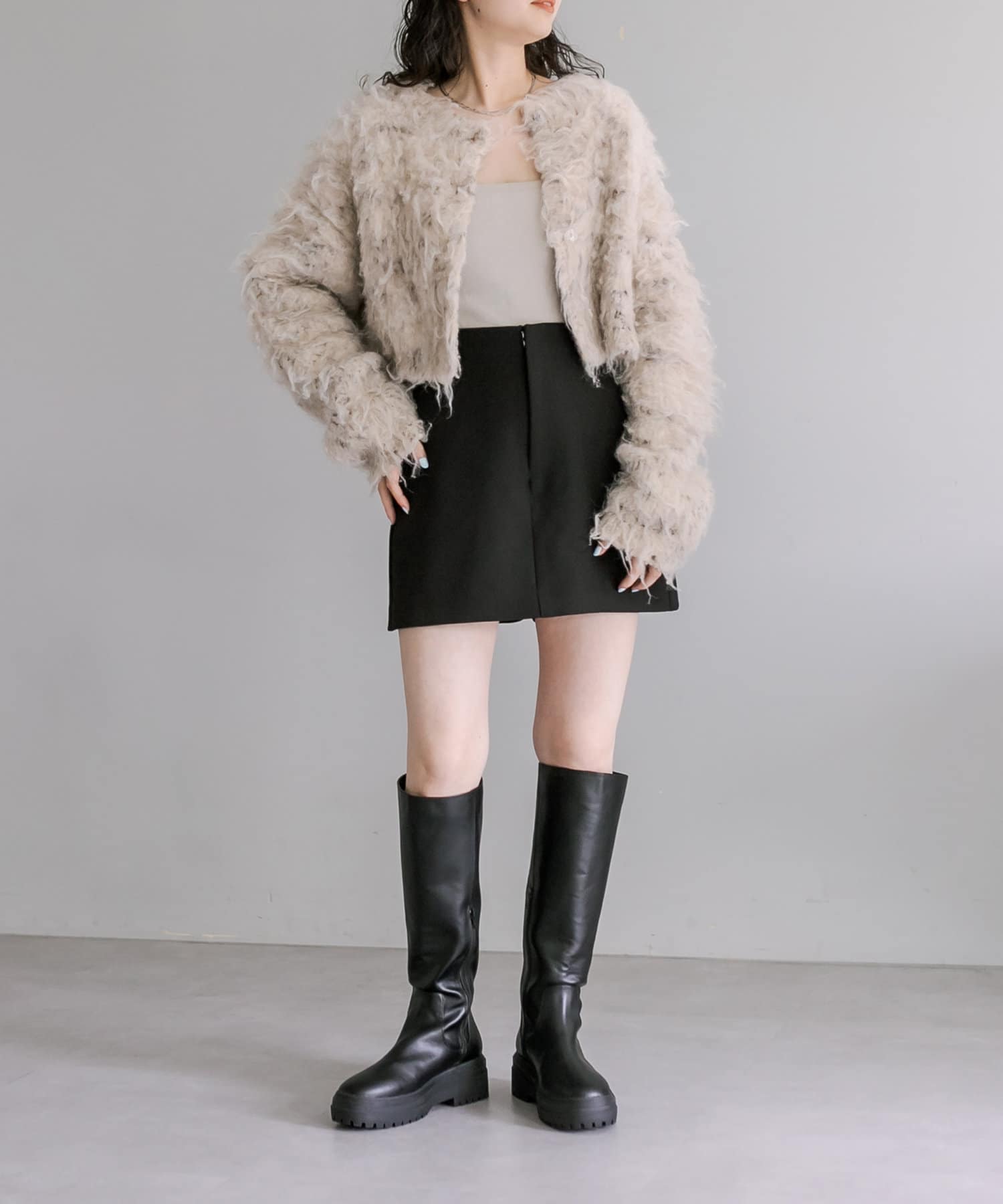 ・今年らしいロングブーツ合わせで程よく肌見せするのがおすすめ。